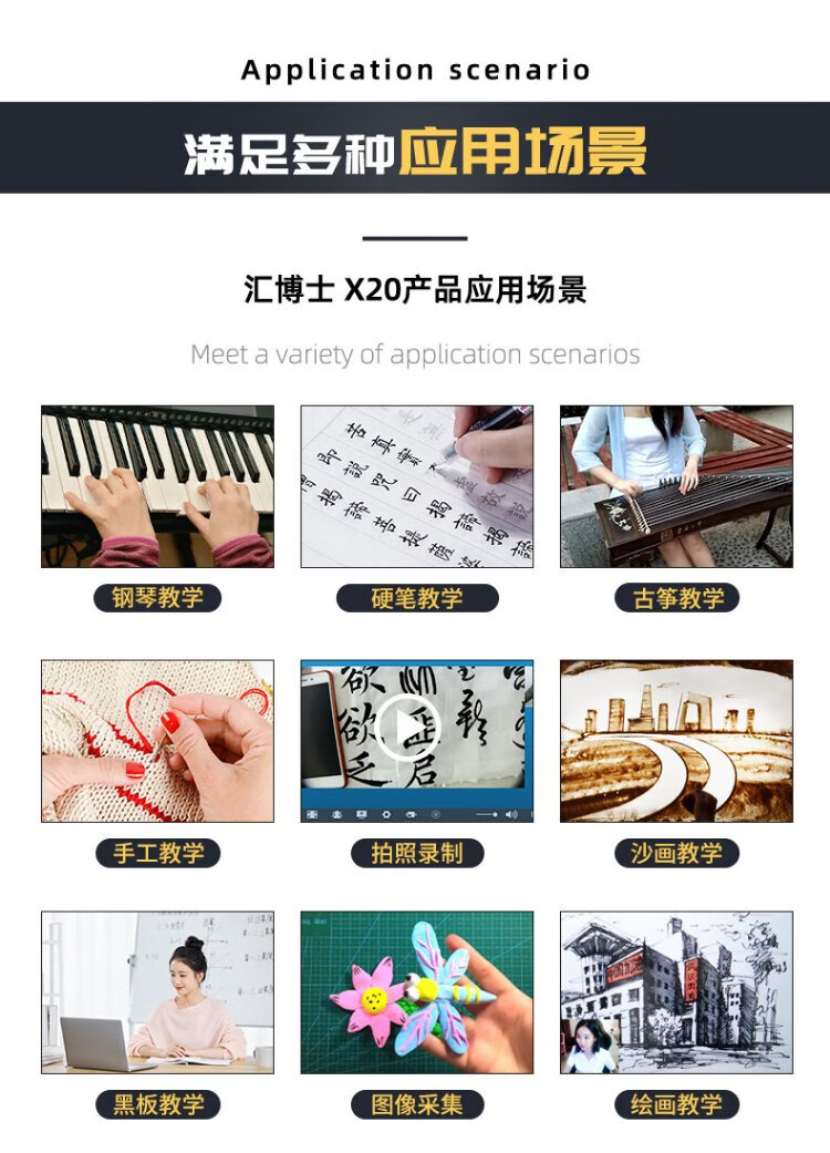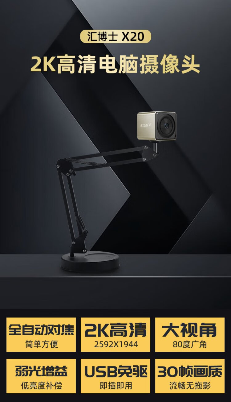 汇博士 自动对焦摄像头 远程教学直播微课录制课堂演示 高清笔记本台式电脑摄像机高拍仪 X20落地支架款