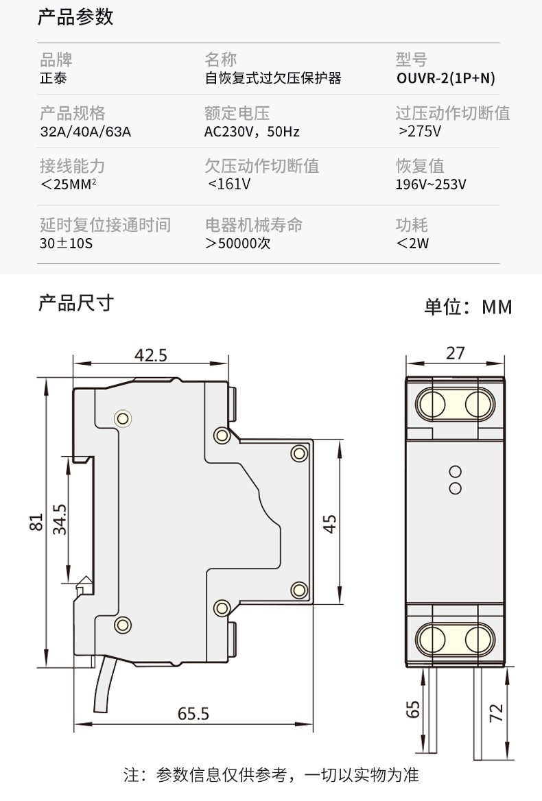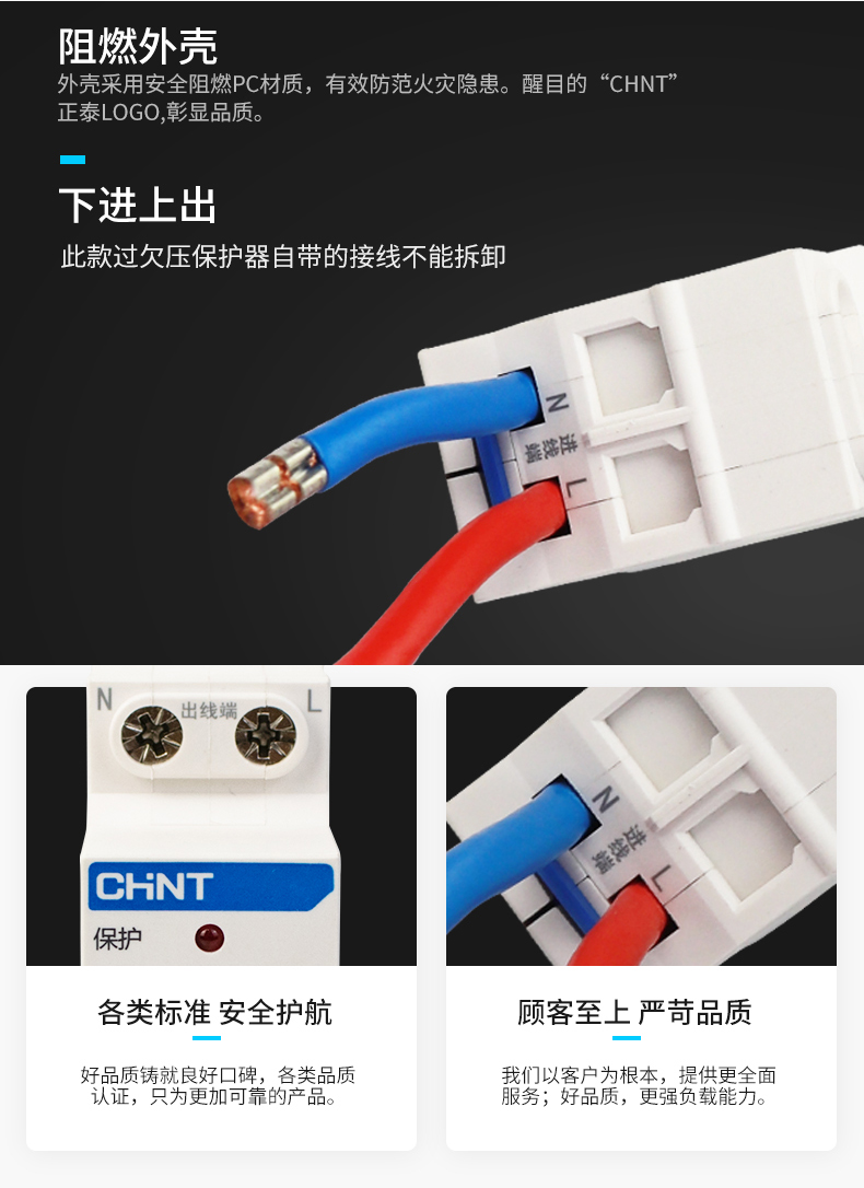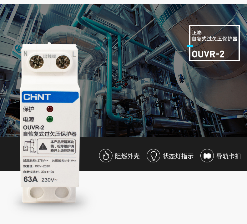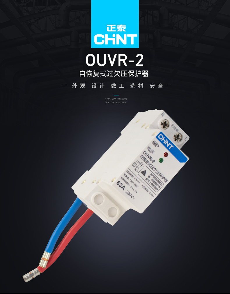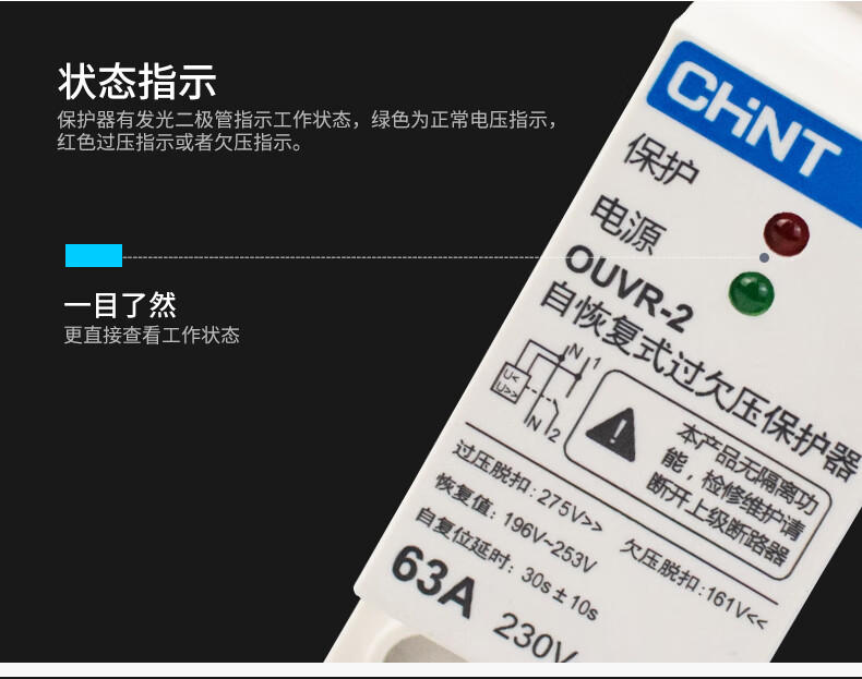Chint (CHNT) self-restorable over-voltage and under-voltage protector bottom in and top out 1P+N self-restorable over and under-voltage protector household OUVR-2 40A 1P+N bottom in and top out