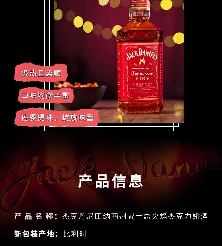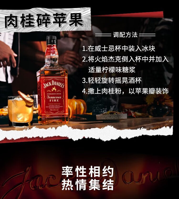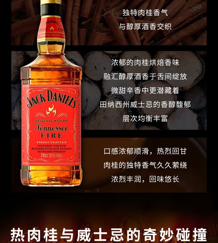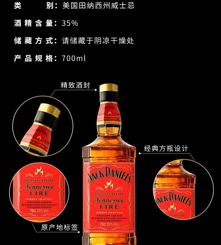 杰克丹尼(Jack Daniels)火焰700ml 美国田纳西州 调和型 威士忌 力娇酒