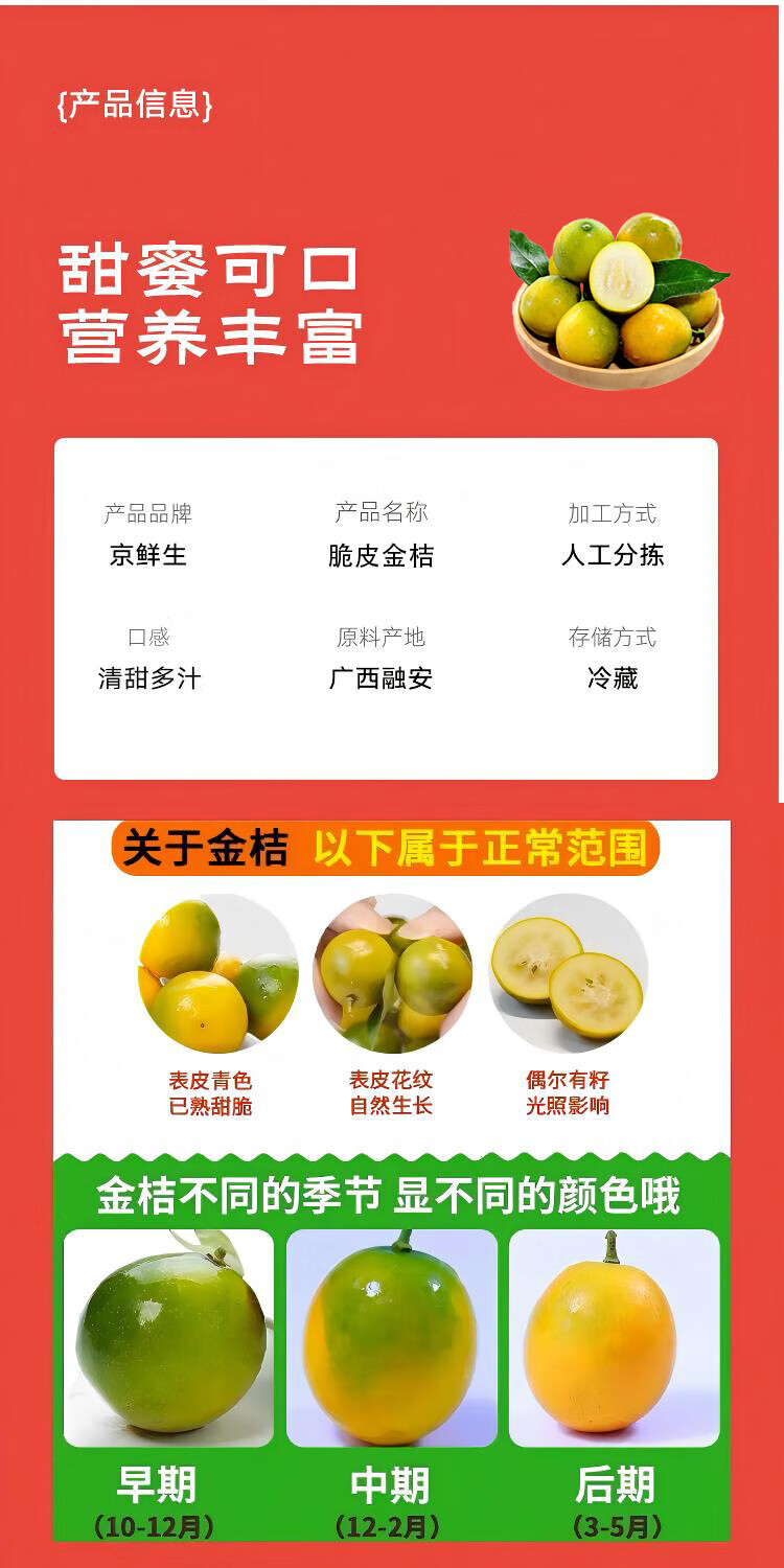 Jingxiansheng Guangxi Crispy Kumquat/Kumquat Net weight 2Jin Jin equals 0.5kg Single fruit starting from 12g Fresh fruit