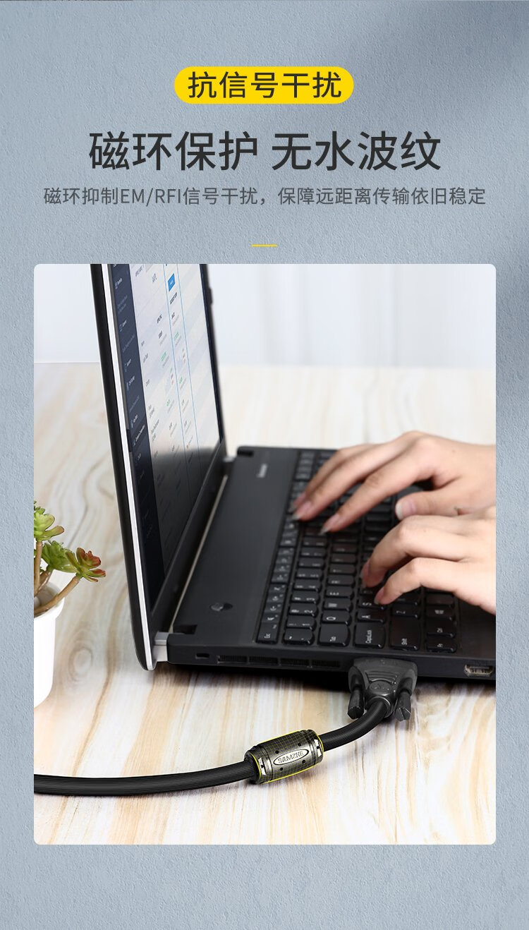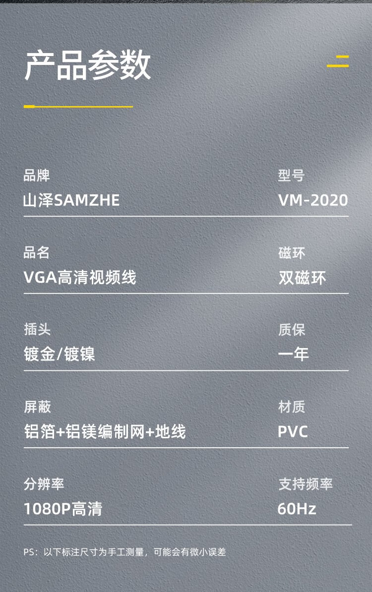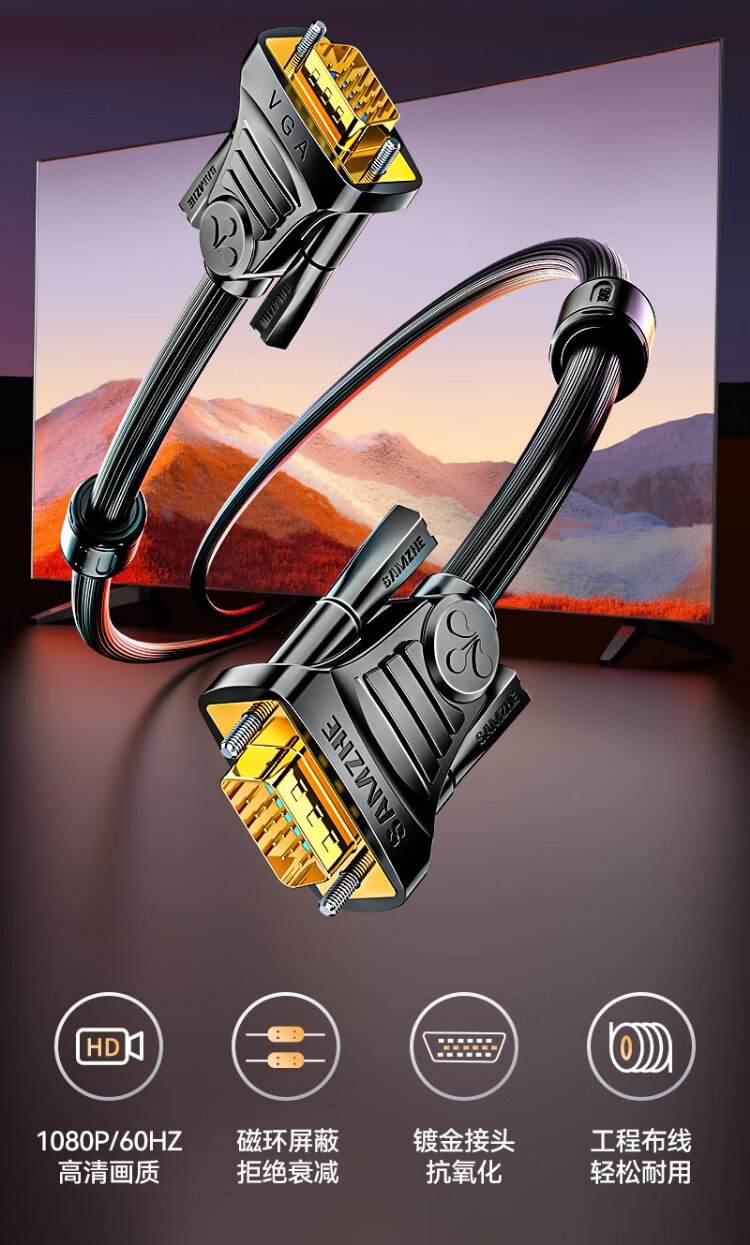Shanze engineering grade VGA cable pure copper core male to male double magnetic ring video adapter cable 3+6 computer host notebook connected to monitor TV projector 1.5 meters VM-2015