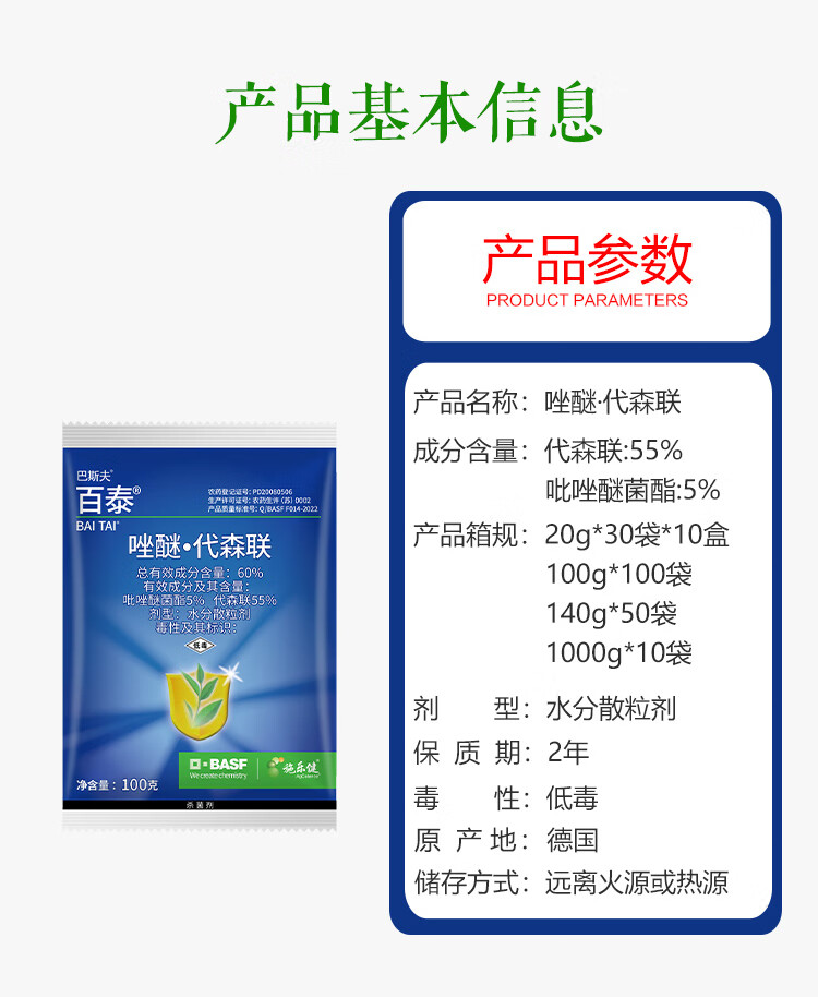 巴斯夫百泰60%吡唑醚菌酯代森联霜霉病疫病叶斑病炭疽立枯病农药杀菌剂 1000g*1袋