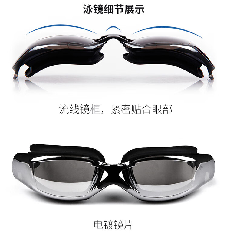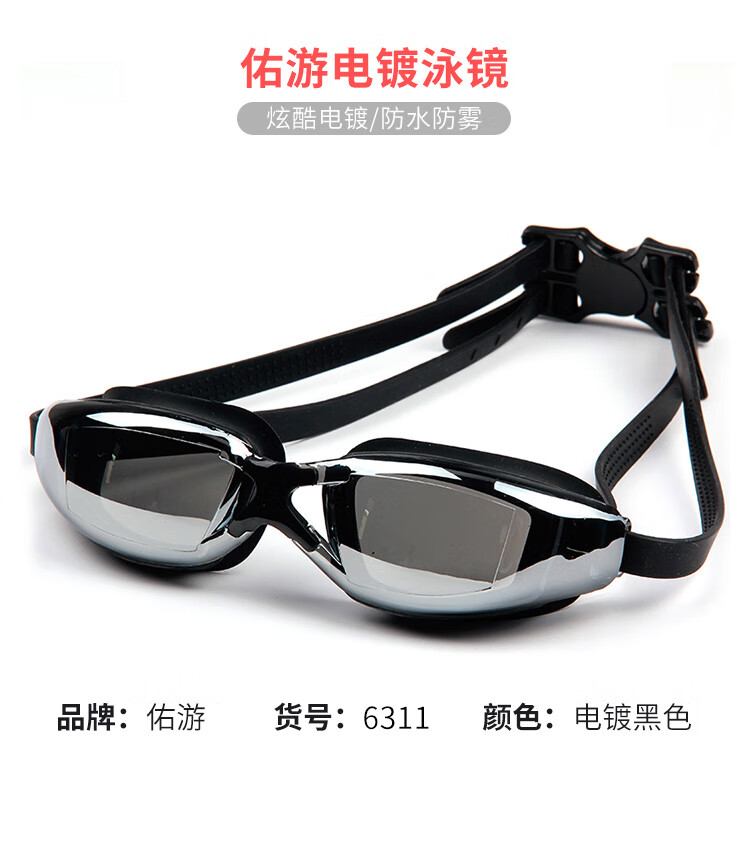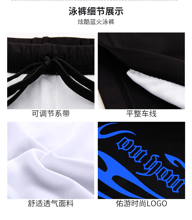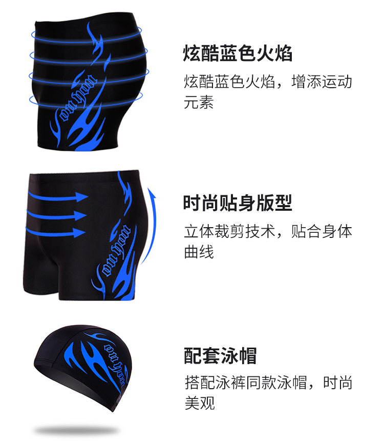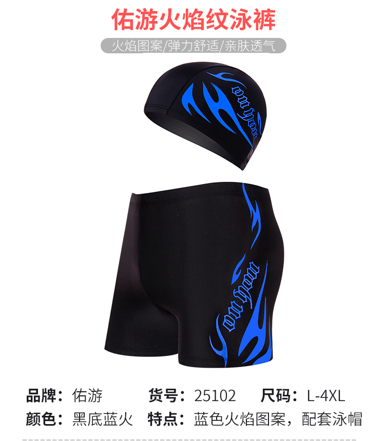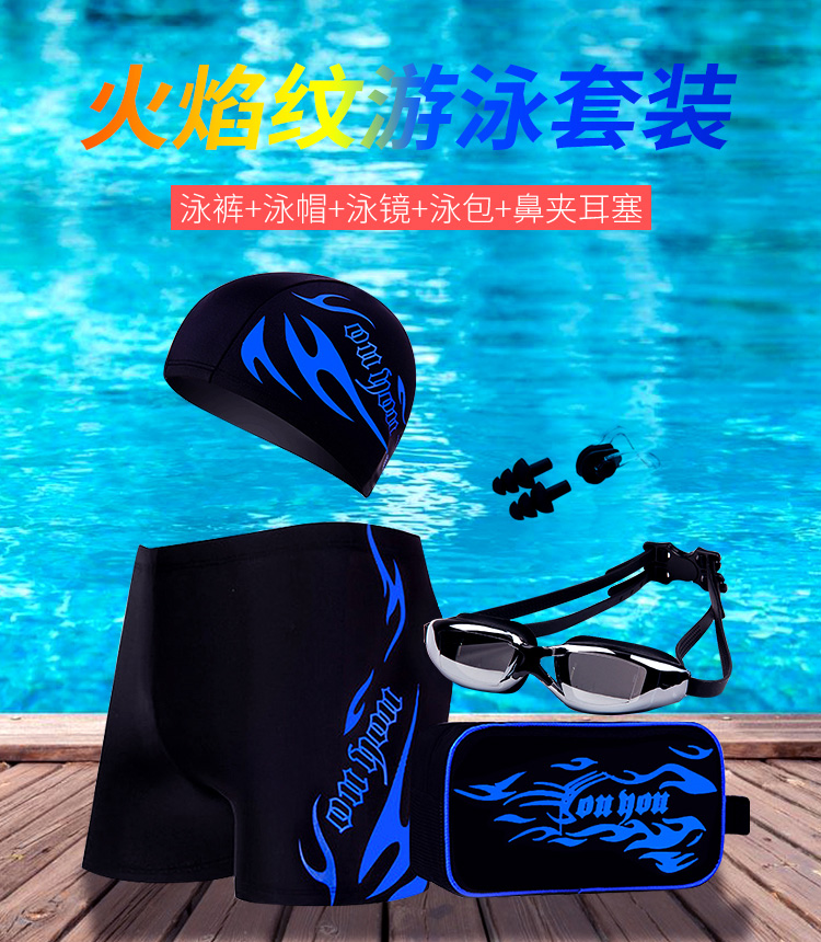 佑游泳裤泳镜男士套装泳裤泳镜泳帽五件火焰套装Z25101黑底蓝火2XL码