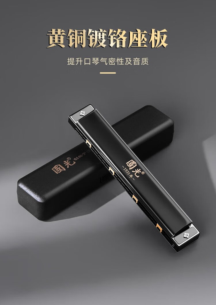 Guoguang 24-hole beginner entry-level polyphonic harmonica with scale commemorative edition in C key (Athens black) gift box