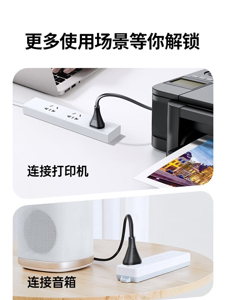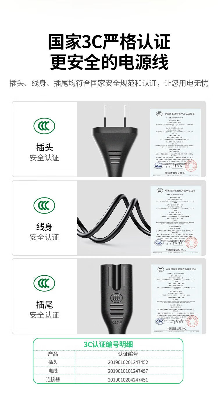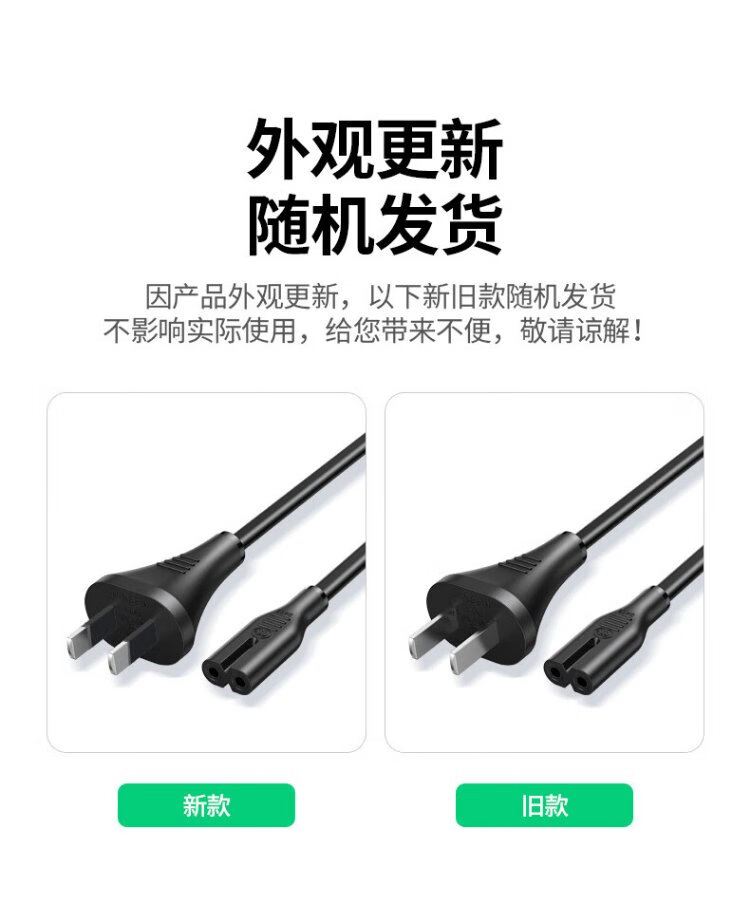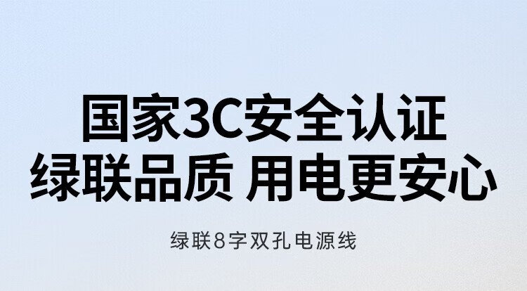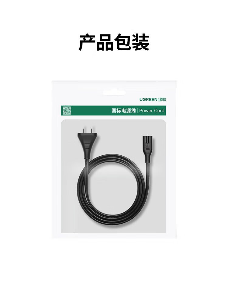 绿联 国标两插八字尾连接线双孔 适用Apple TV/P4/5/Mac Mini/打印机/数码相机/音响电源线0.5米40311