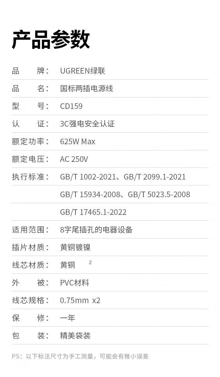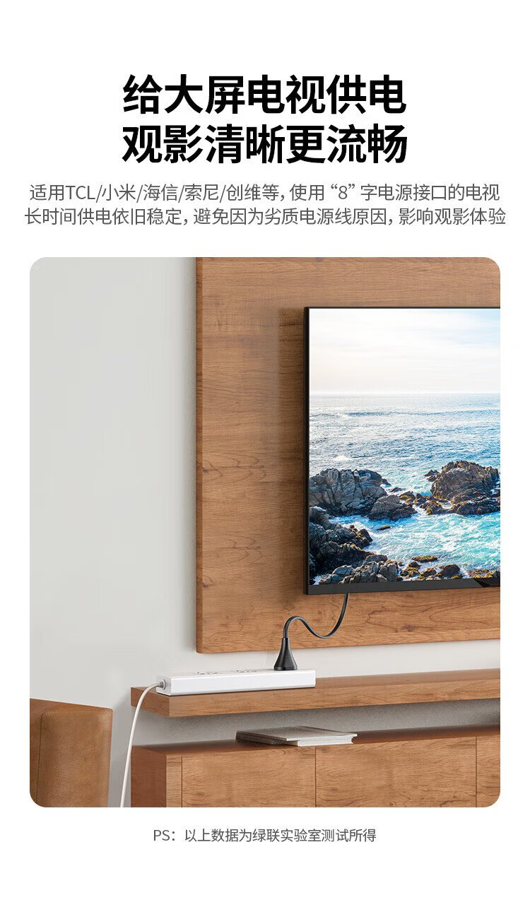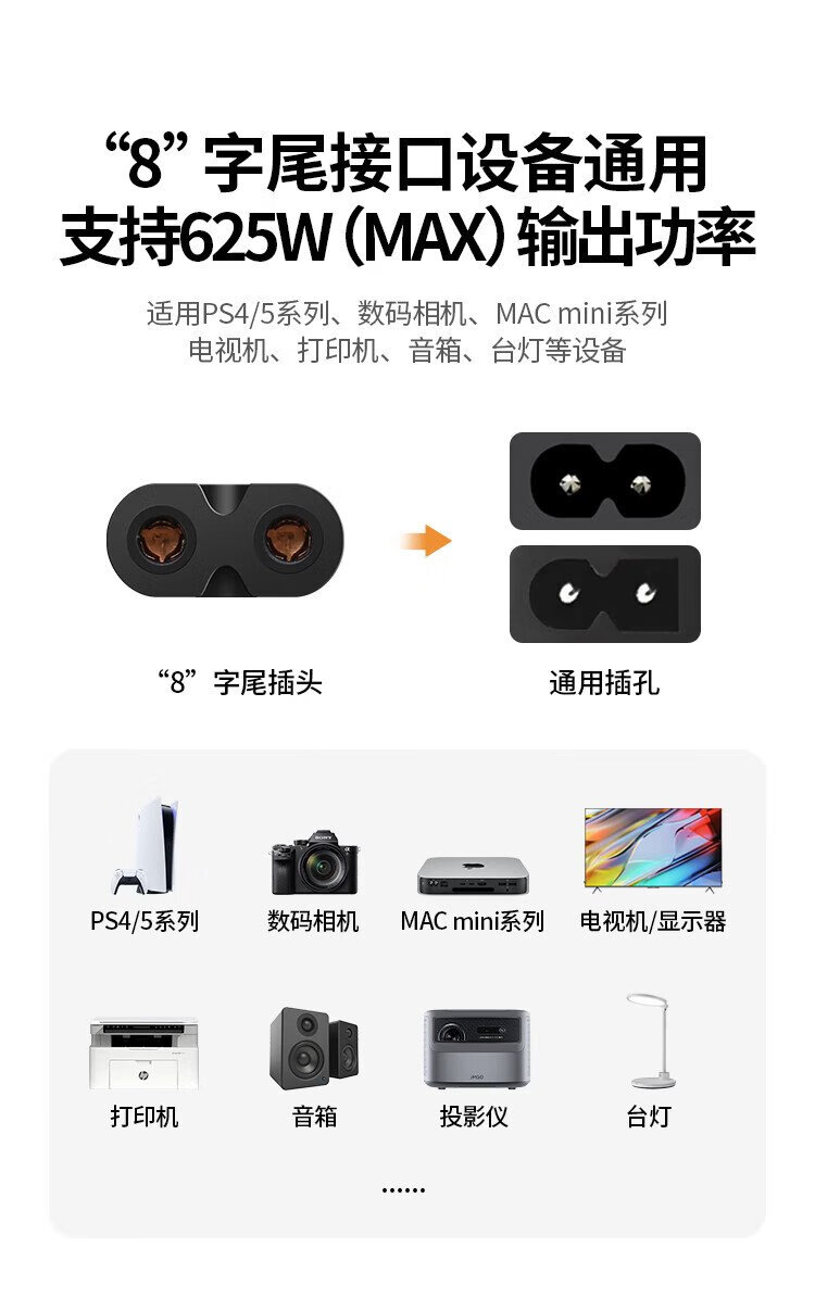 绿联 国标两插八字尾连接线双孔 适用Apple TV/P4/5/Mac Mini/打印机/数码相机/音响电源线0.5米40311