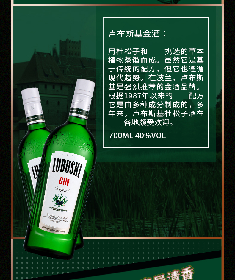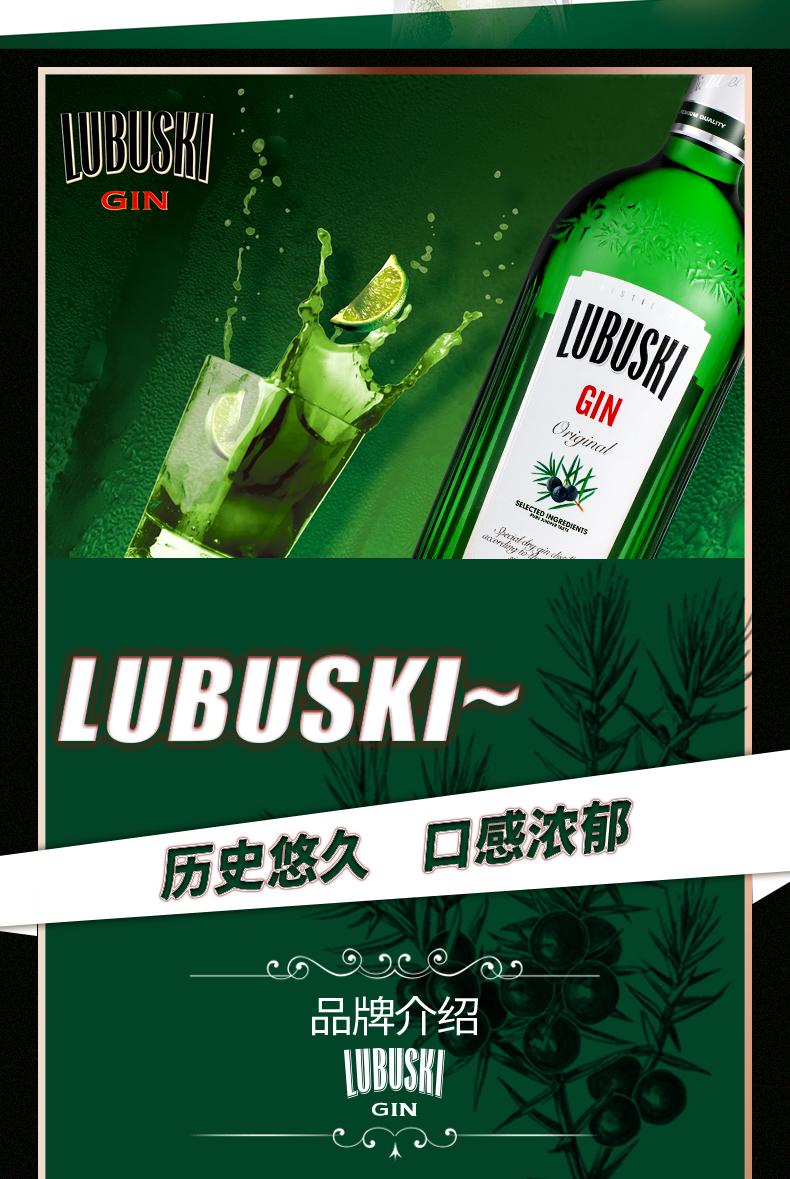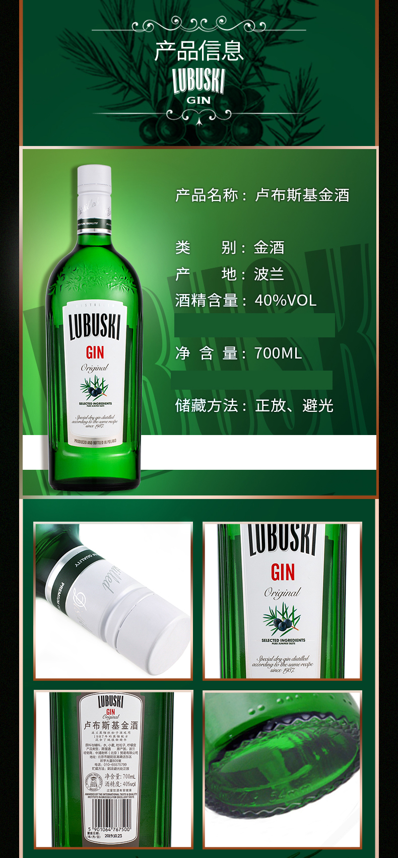 卢布斯基金酒700ml  波兰原装进口洋酒  琴酒杜松子酒干金酒 调酒基酒