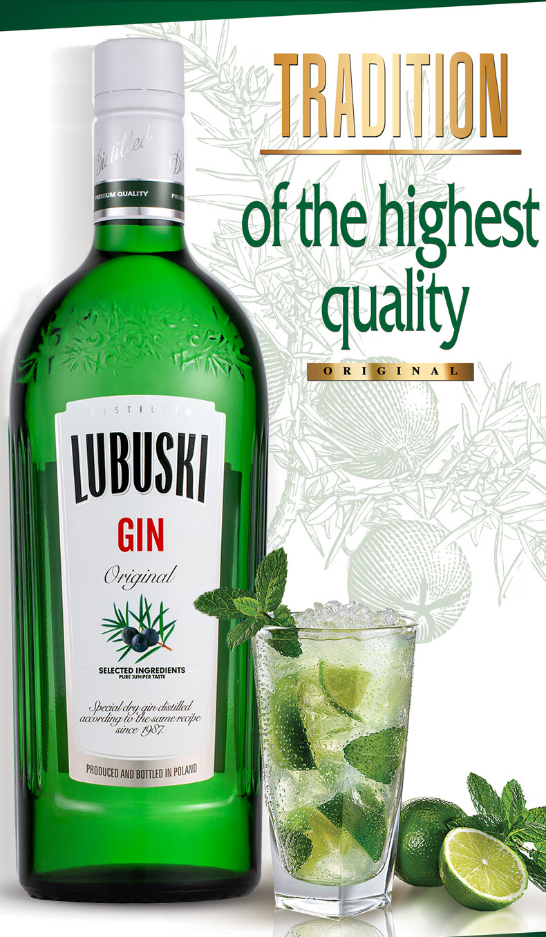 卢布斯基金酒700ml 波兰原装进口洋酒 琴酒杜松子酒干金酒 调酒基酒