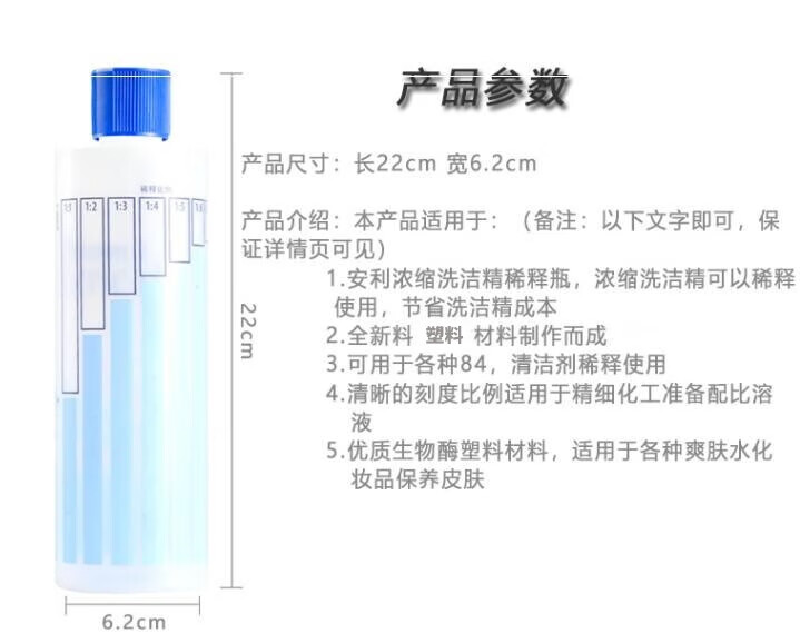 蓒鹬洗洁精稀释瓶500ml小分装瓶配比瓶刻度瓶挤压瓶塑料空瓶宠物洗澡 蓝色