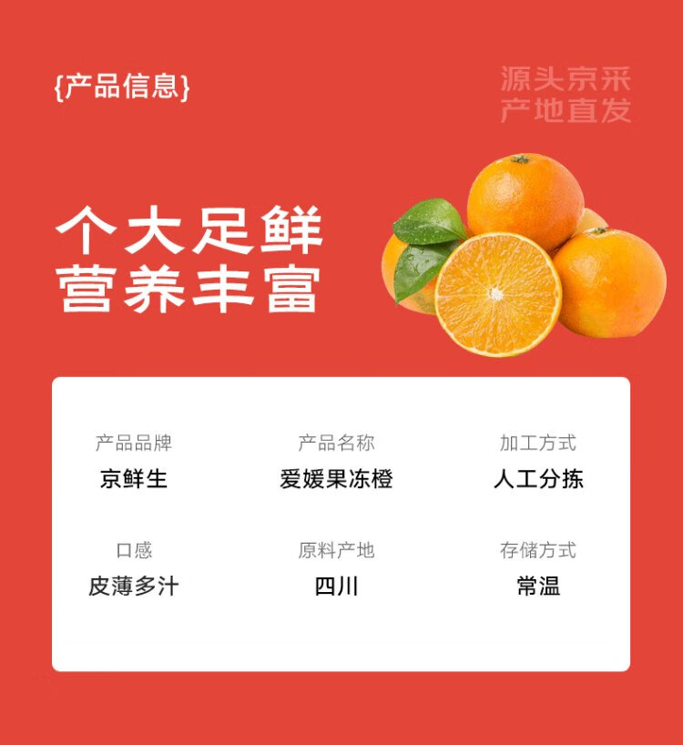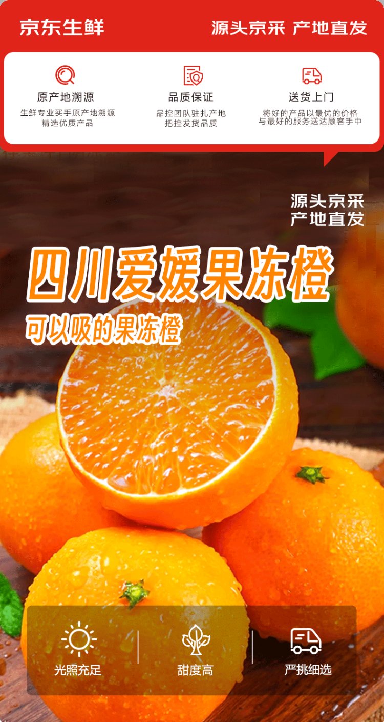 京鲜生 四川爱媛38号果冻橙 净重4.5-5斤 单果140g+ 源头直发包邮