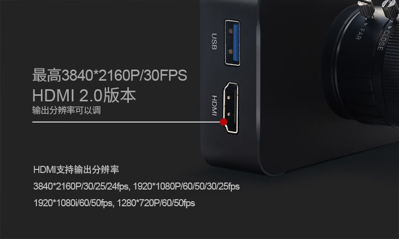 魔客仕4K高清HDMI直播摄像头USB专业舞台活动书画教学相机会议带音频视频录制支持延时摄影回放 3.2MM无畸变大广角定焦