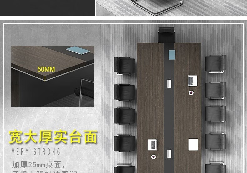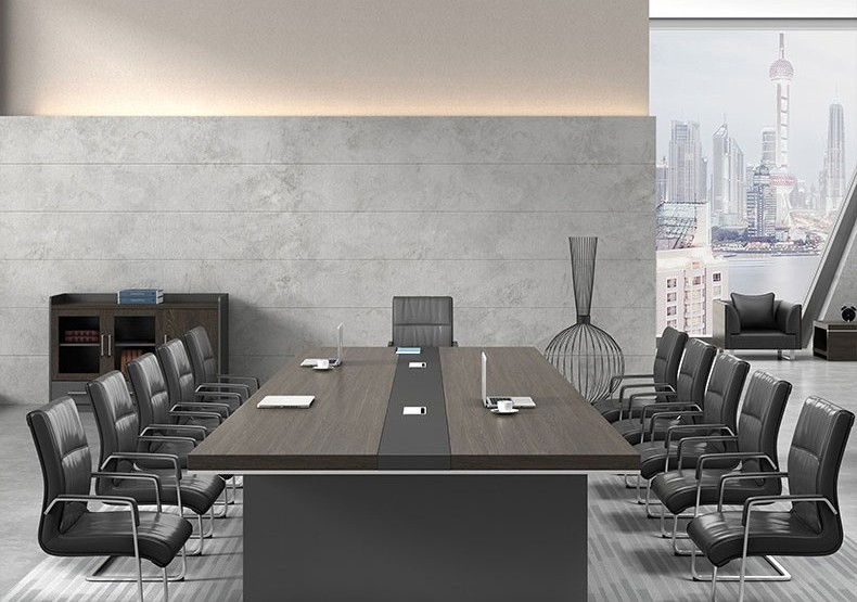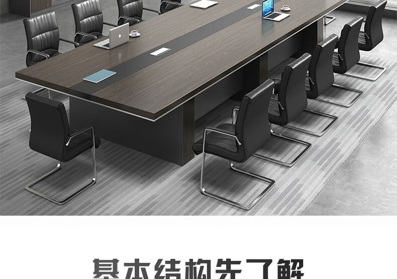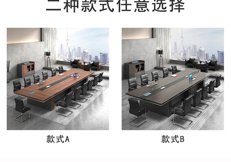 OUYIN conference table and chair office desk conference room long large and small rectangular negotiation conference table/16/20 people Daye Walnut 5.5m*1.5m+20 chairs