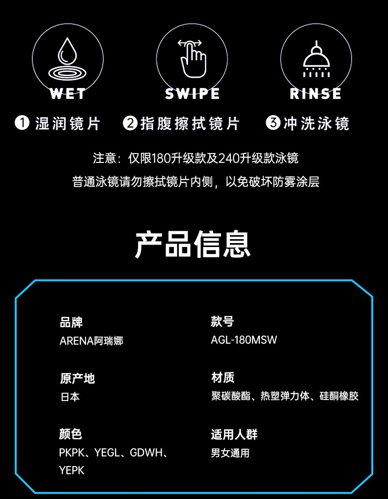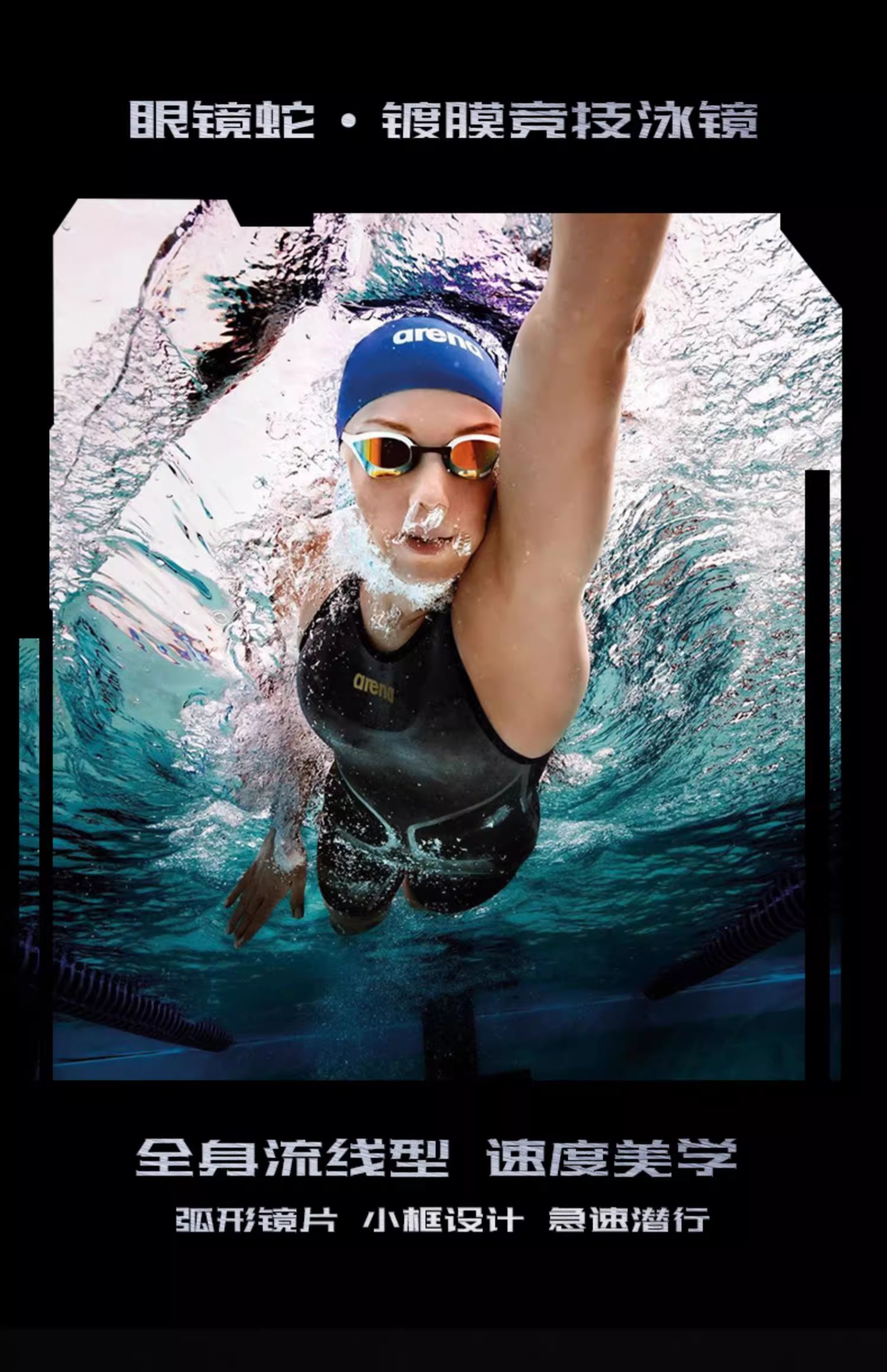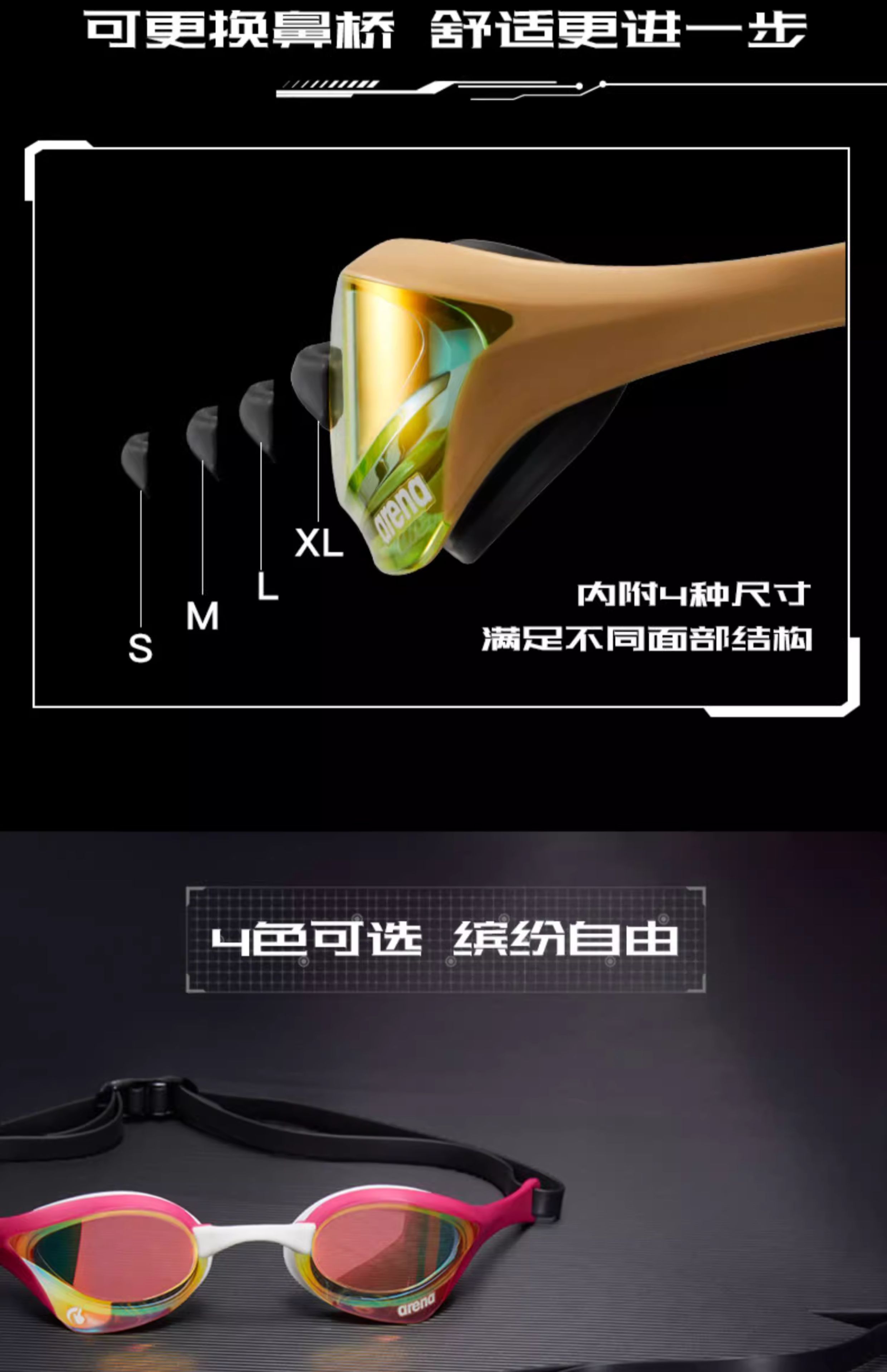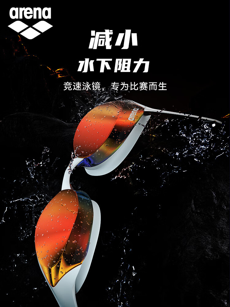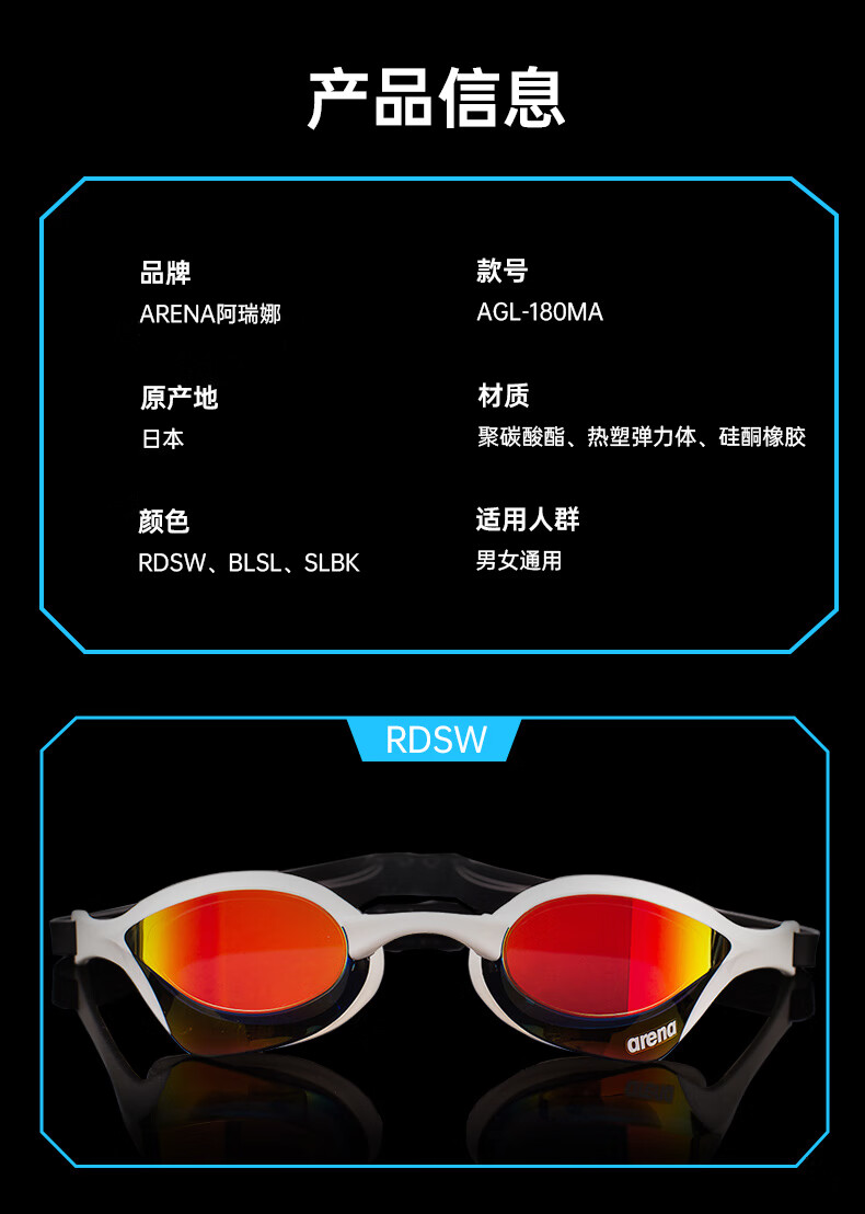 阿瑞娜(arena)泳镜男专业竞技进口高清防雾眼镜蛇女训练比赛镀膜游泳镜 RDSW-180M【孙杨同款同款阻力小】