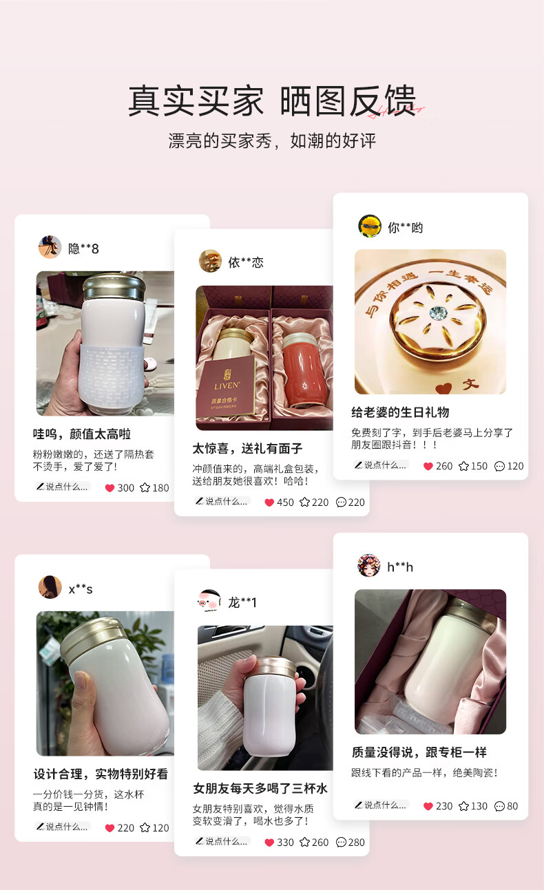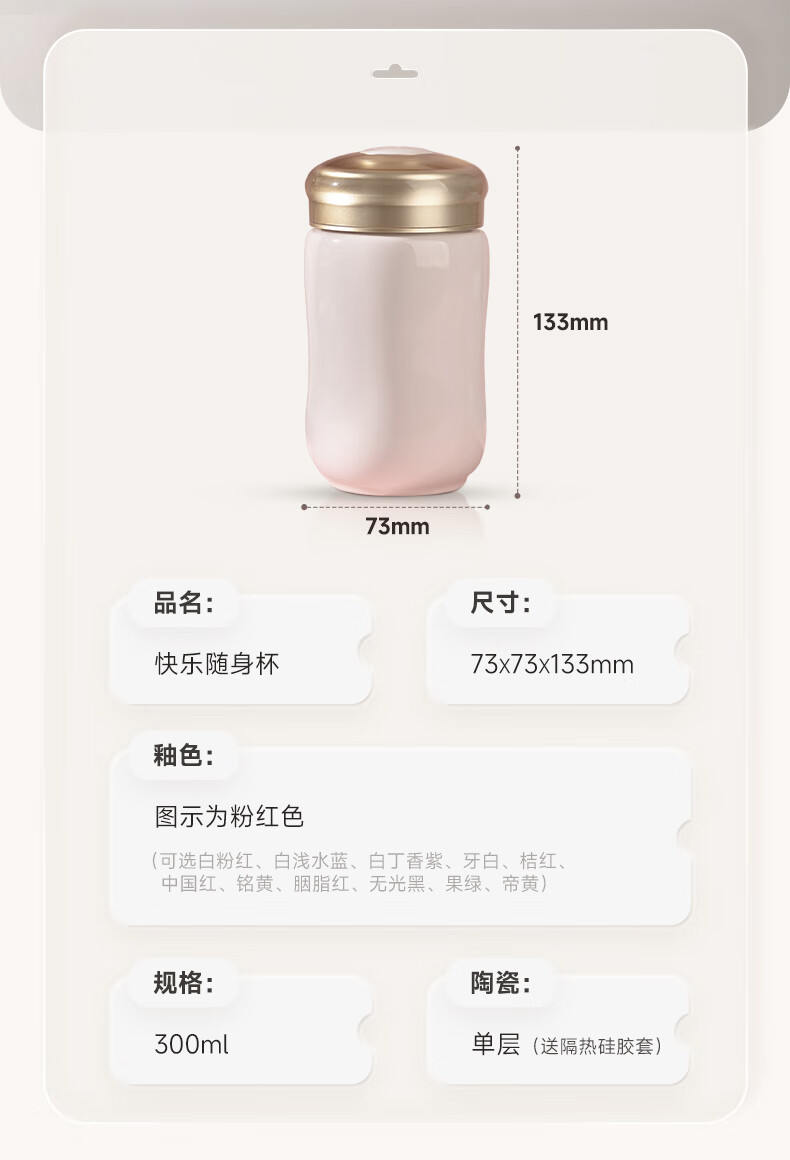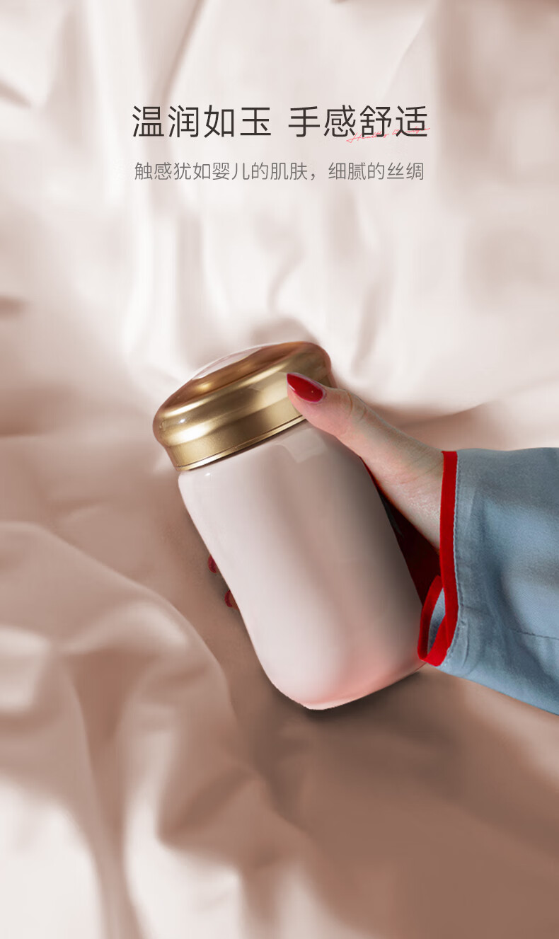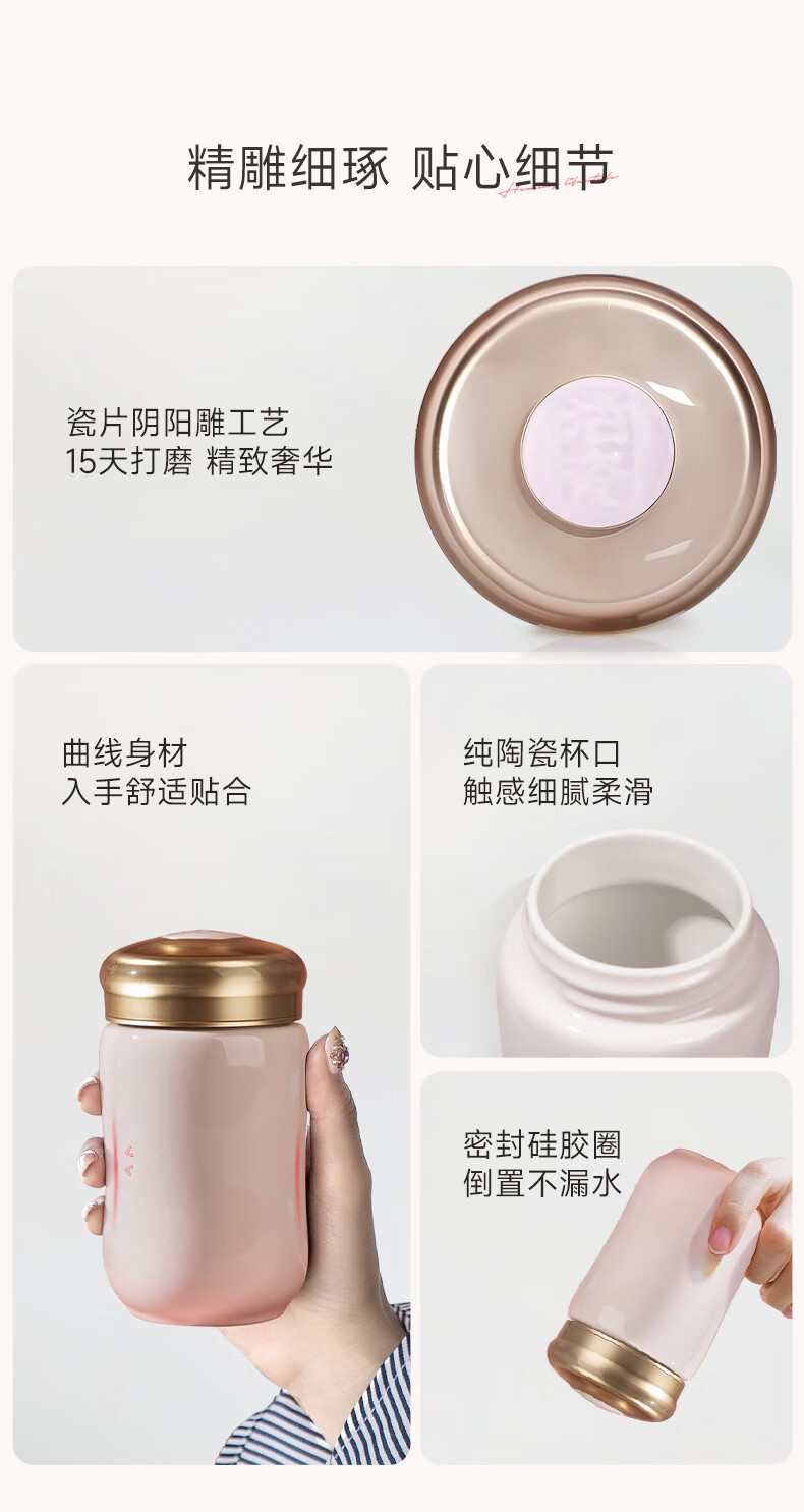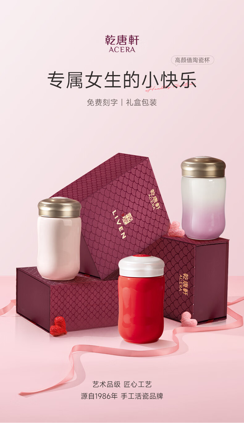 Qiantangxuan Live-Porzellan, kleine fröhliche Keramiktasse mit Deckel, Wassertasse, Keramikeinsatz, hochwertiges Damengeschenk, weiß, rosa, 300 ml