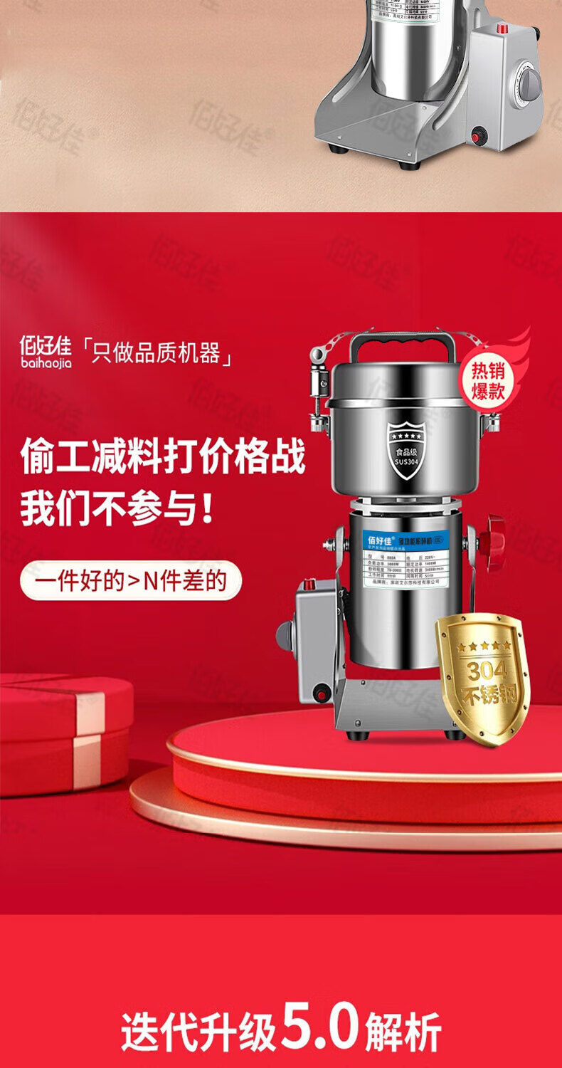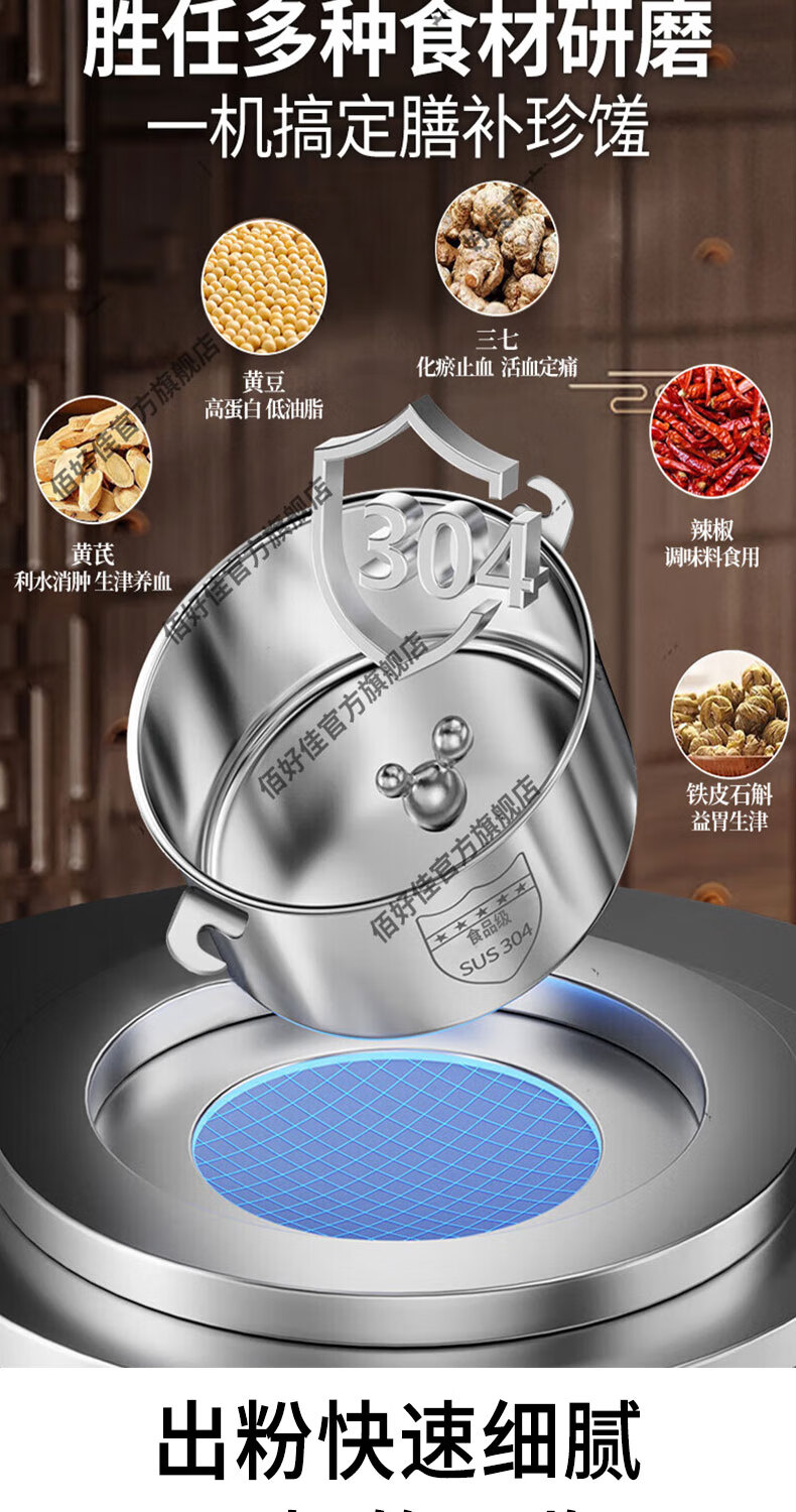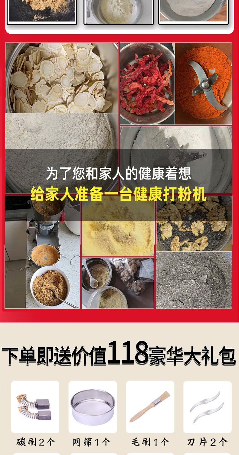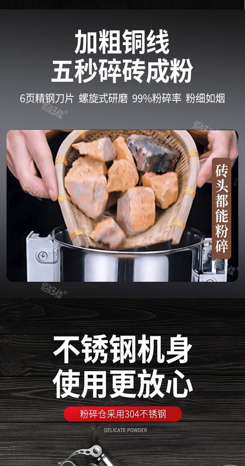 佰好佳研磨机商用中药材磨粉机三七超细打粉机多功能家用五谷杂粮粉碎机 摇摆1000A【10秒出粉】加粗铜线