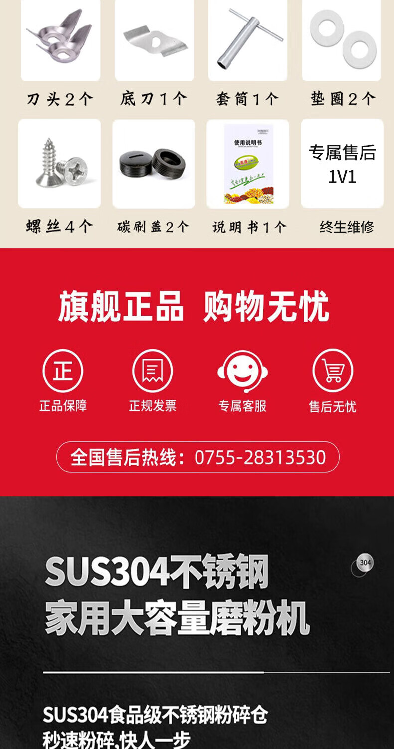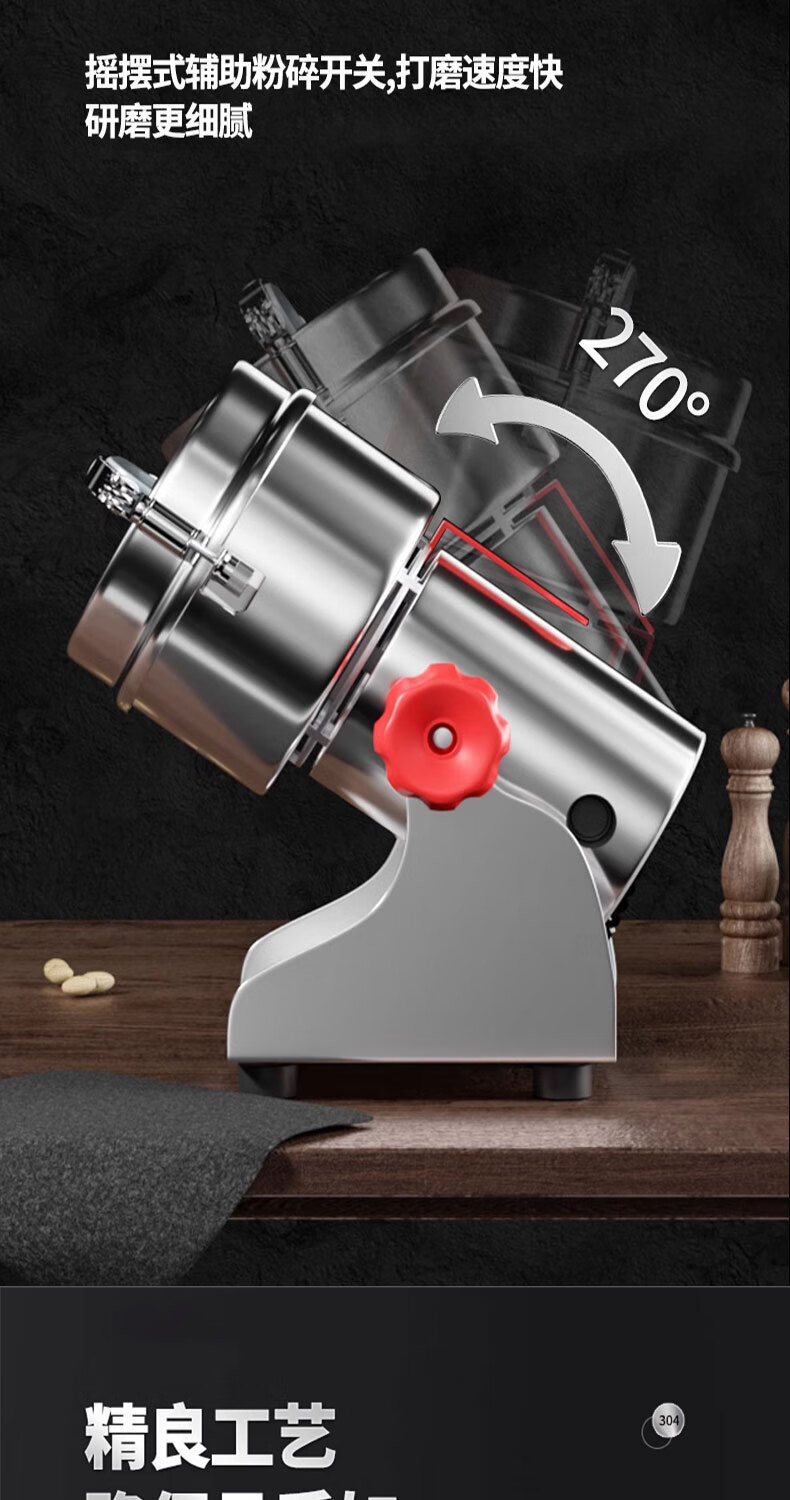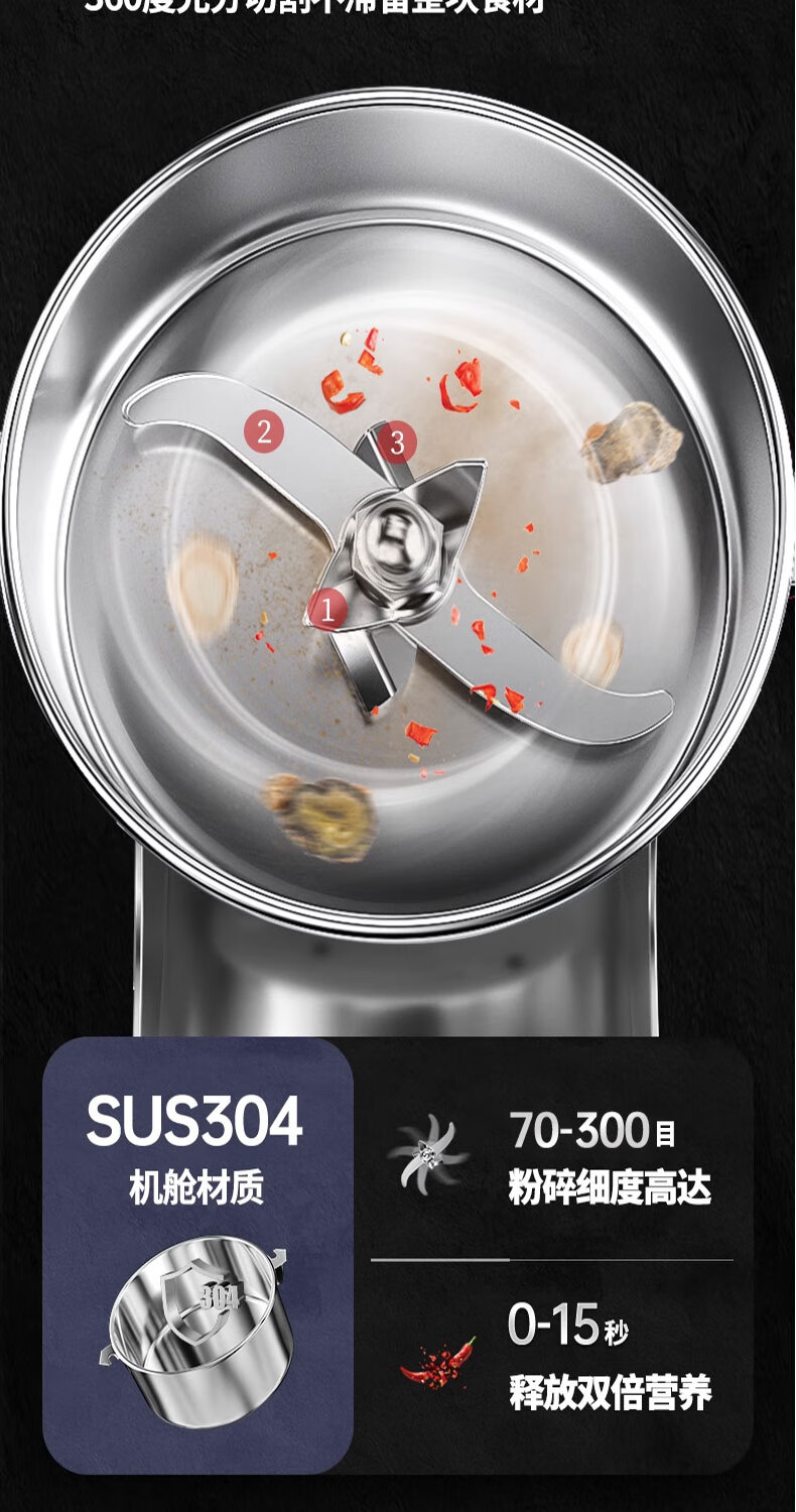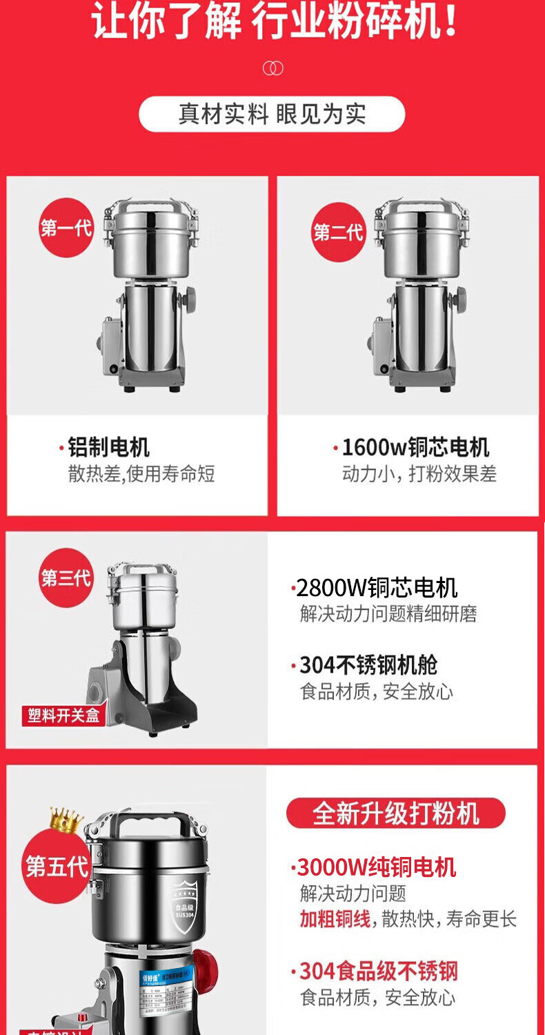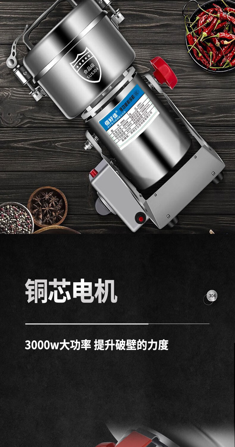 佰好佳研磨机商用中药材磨粉机三七超细打粉机多功能家用五谷杂粮粉碎机 摇摆1000A【10秒出粉】加粗铜线