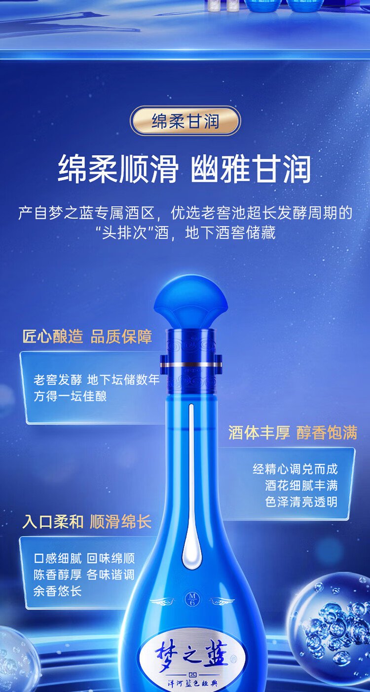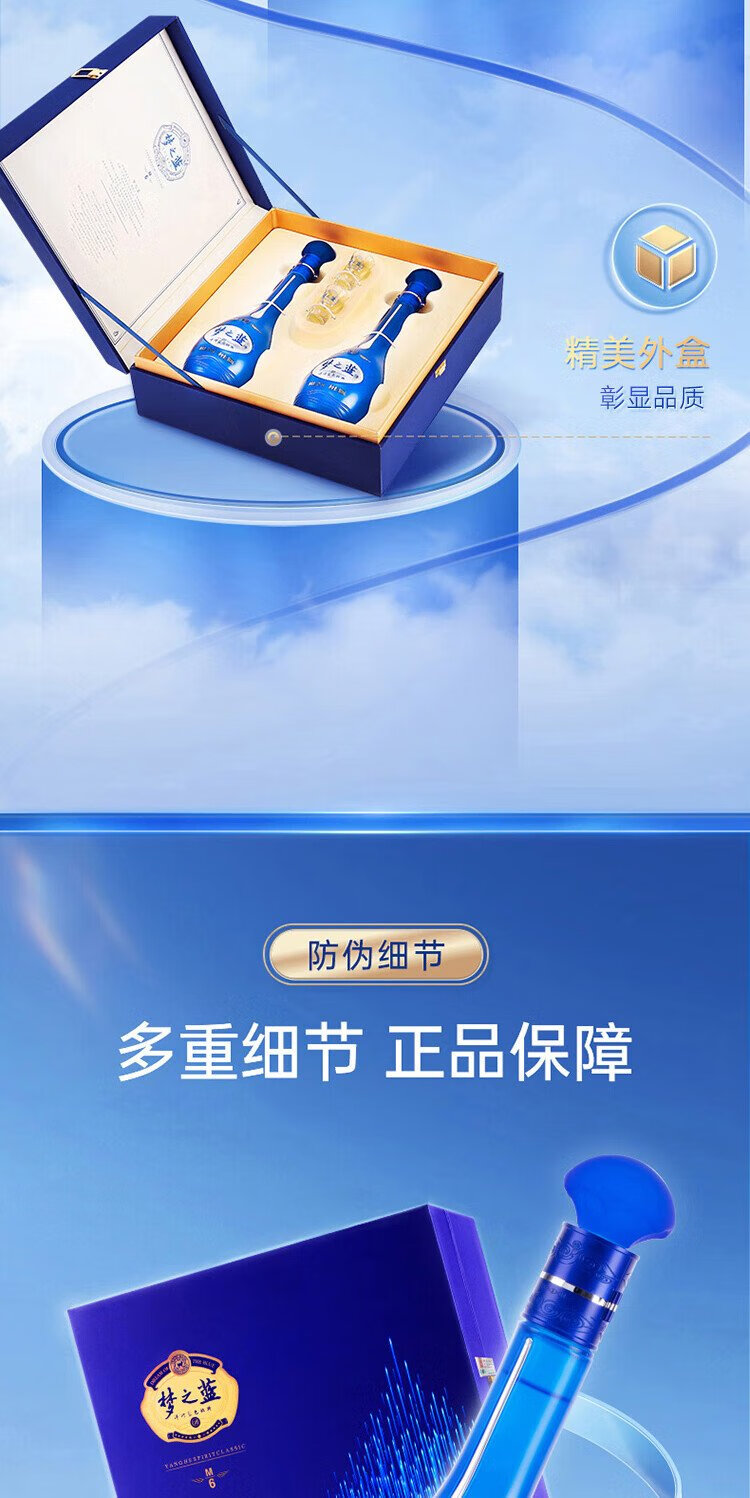 洋河 梦之蓝M6 52度500ml*2瓶 礼盒装 绵柔浓香型白酒