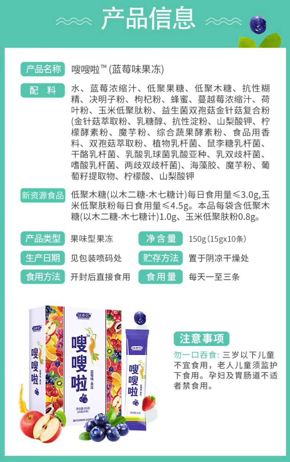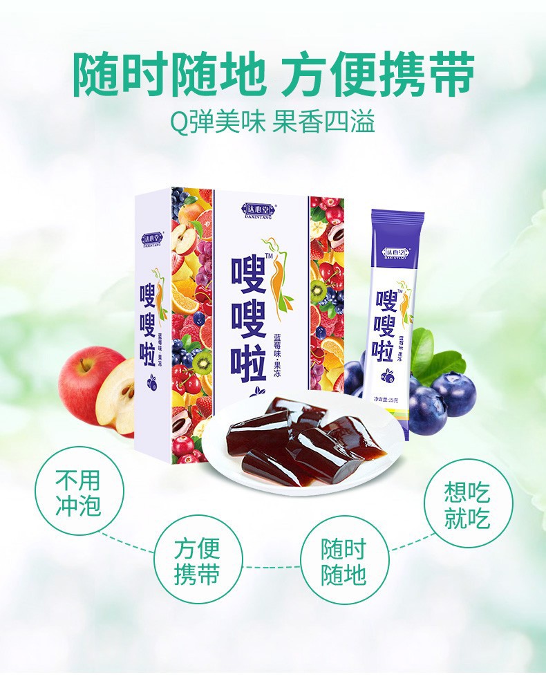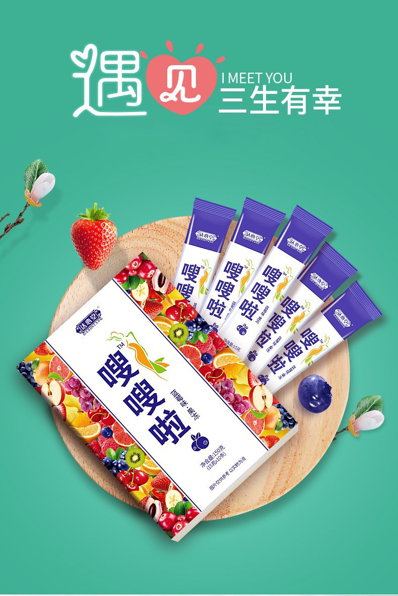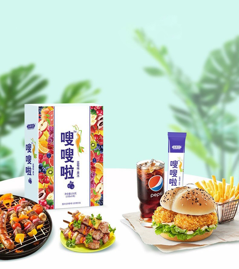 Da Xintang Sou Sou La Enzyme Jelly Probiótico Enzima de frutas y verduras en polvo Tiras de gelatina Reemplazo de comida Enzima de frutas al azar Productos de ciruela 150 g/caja Sou Sou La-Jalea de enzima con sabor a arándano