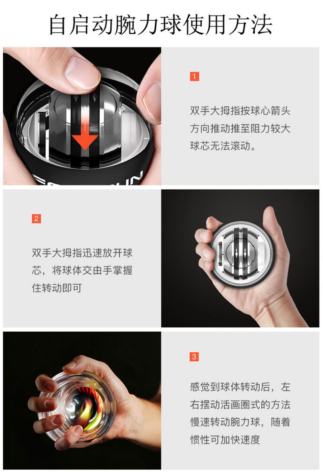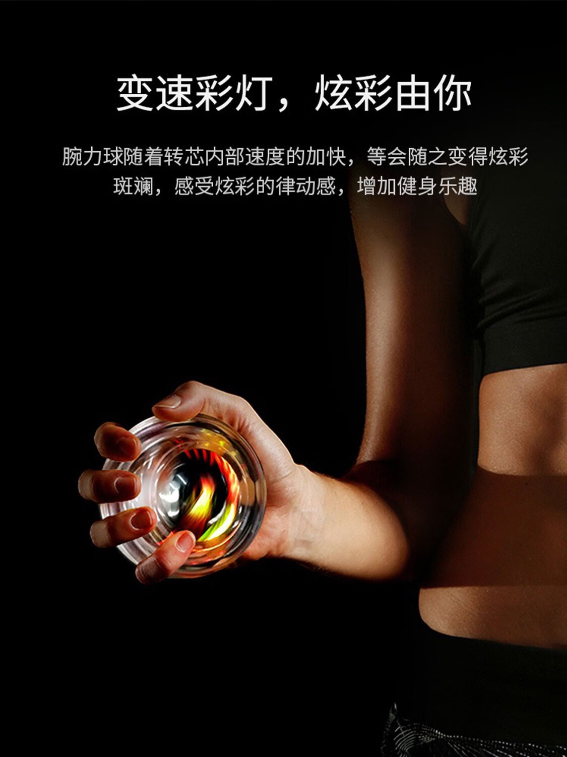 盖视 腕力球100公斤发光握力球自启动男女臂力器抖音减压超级陀螺球离心球握力器臂力球 活动款【自启动黑金刚】