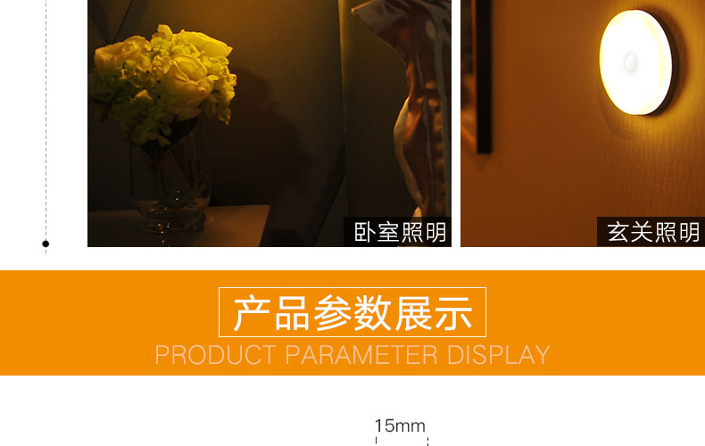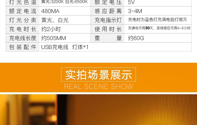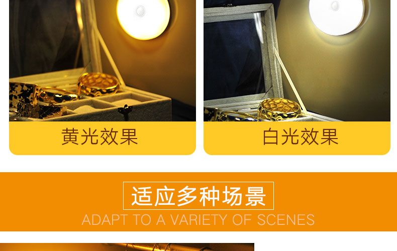 Nuofeng human body induction night light bathroom corridor corridor wall lamp rechargeable battery induction light cabinet led energy saving night light human body induction yellow light battery type
