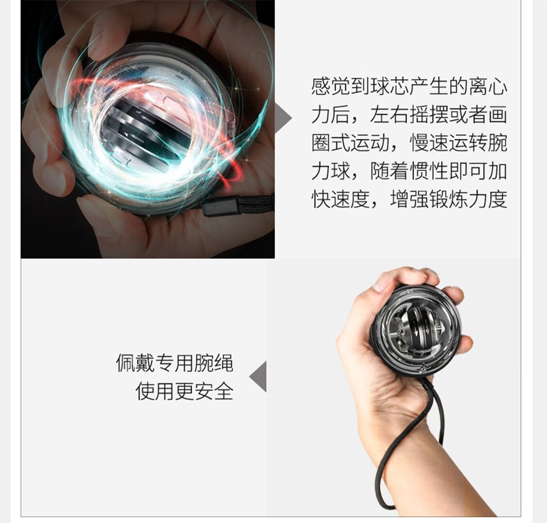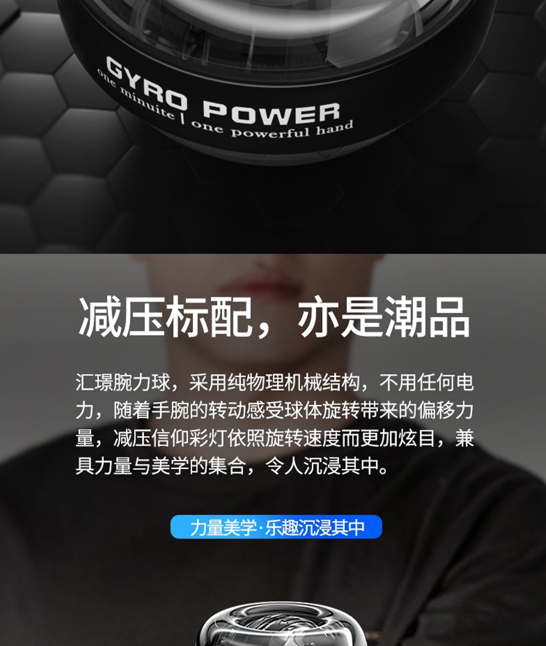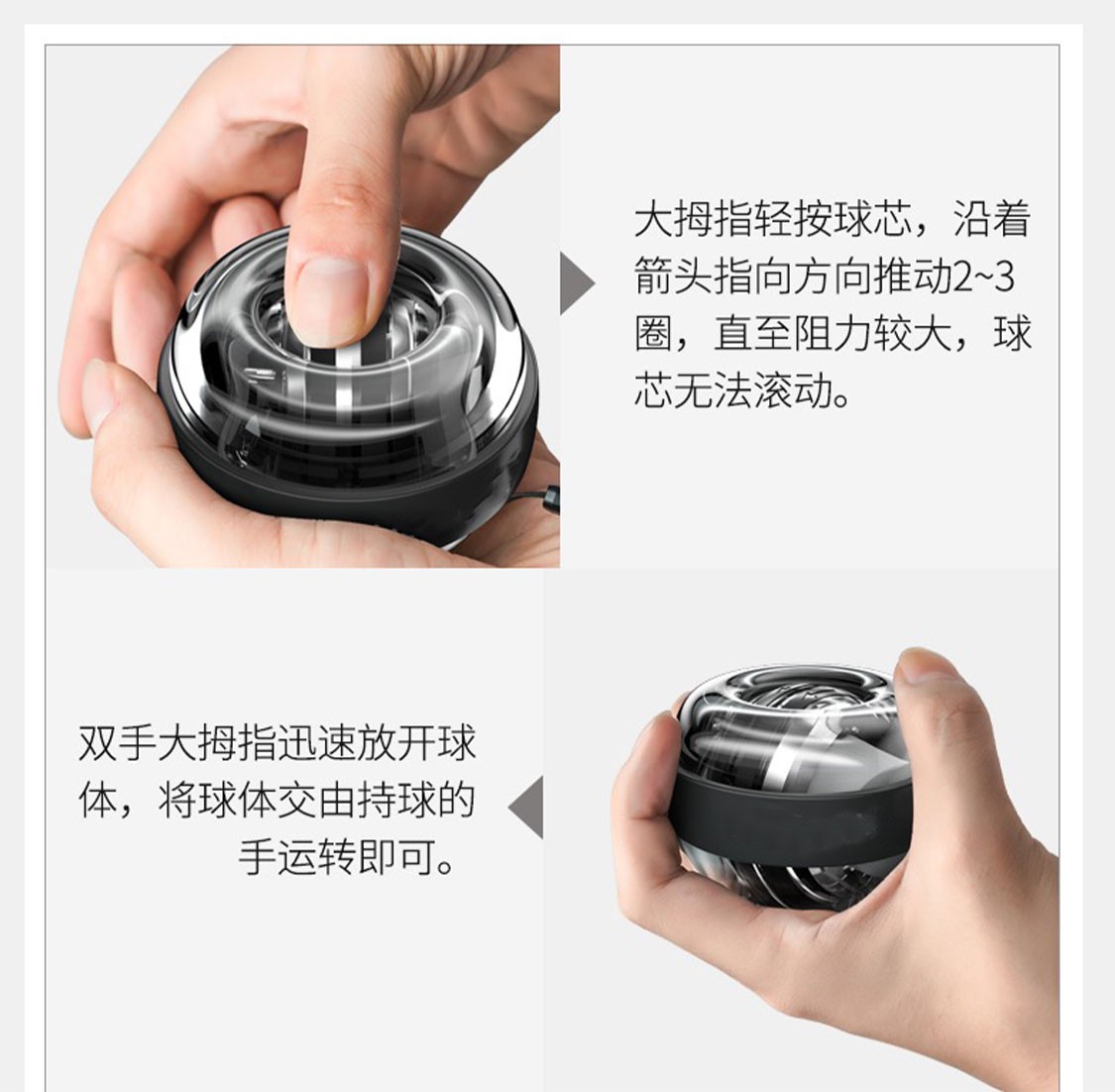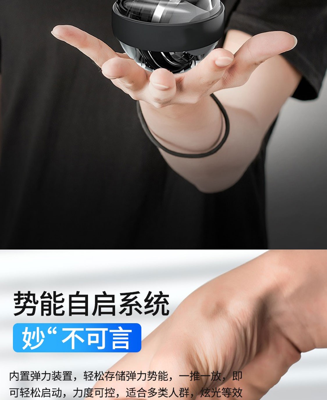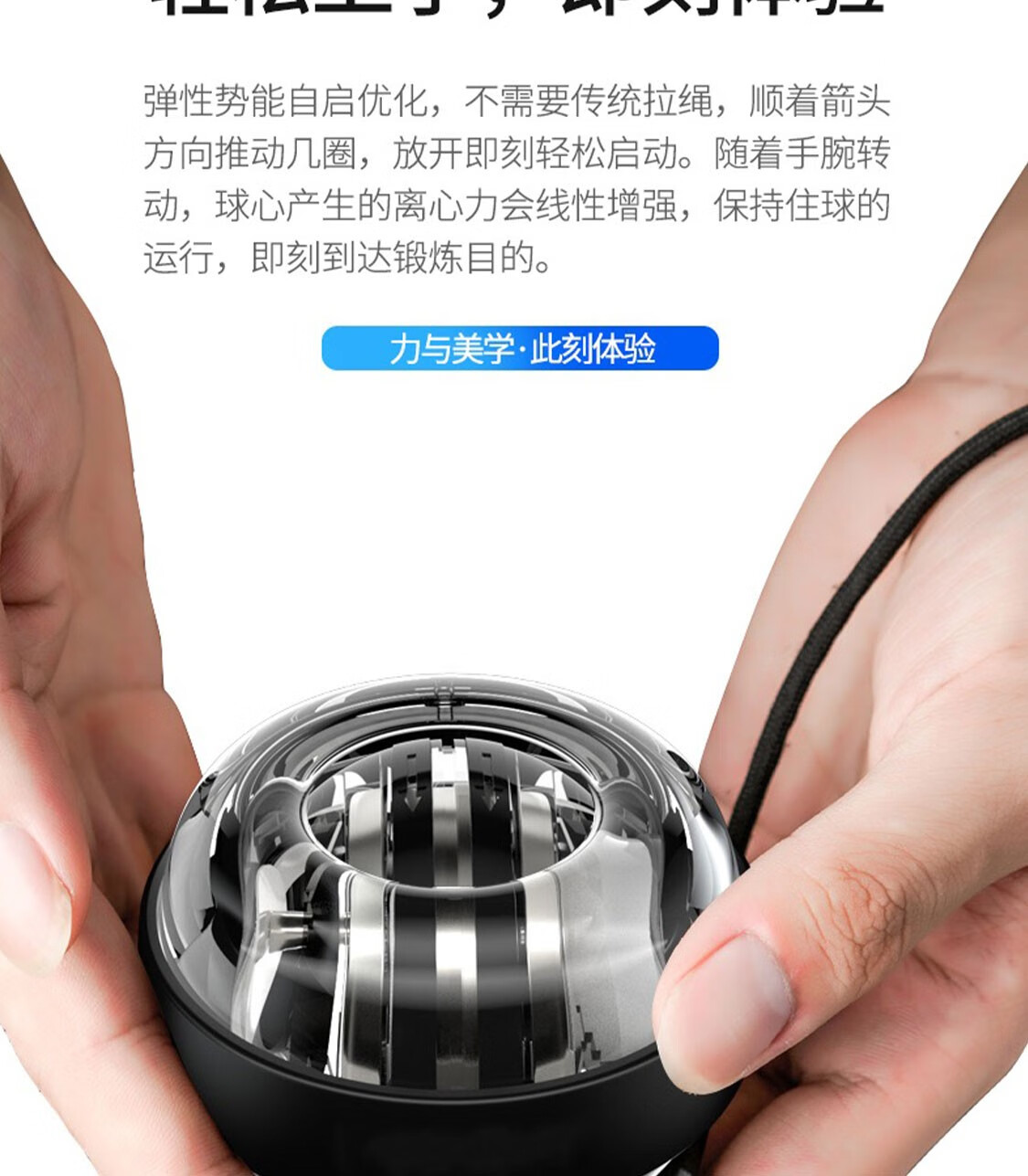 盖视 腕力球自启动100公斤男女超级陀螺减压手腕离心球手指新式握力器锻炼球臂力训练抖音同款  自启动金属款-彩灯(重力挑战)【送球包】