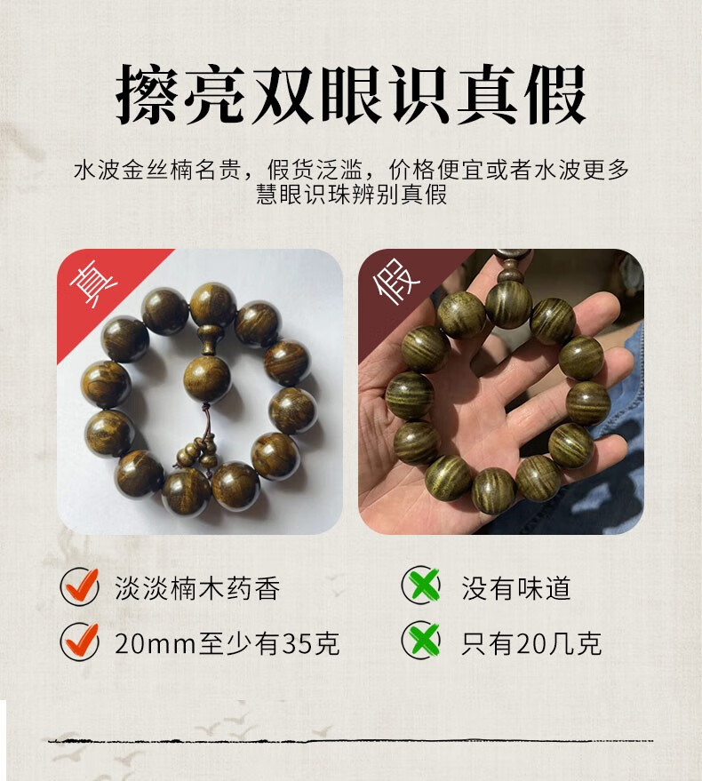 梵心阁四川阴沉木金丝楠8mm手串佛珠沉香级水波乌木108本命臻品送 8mm108颗