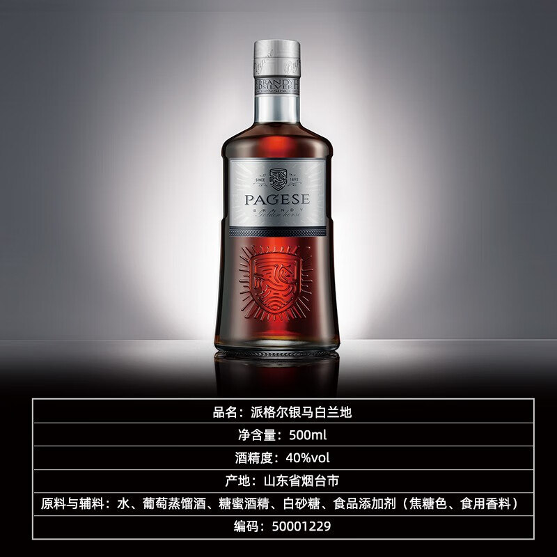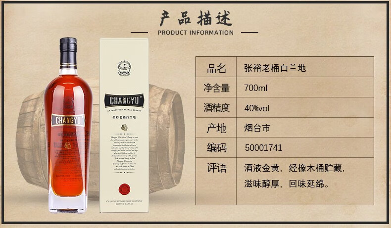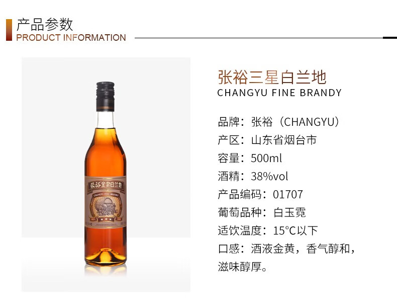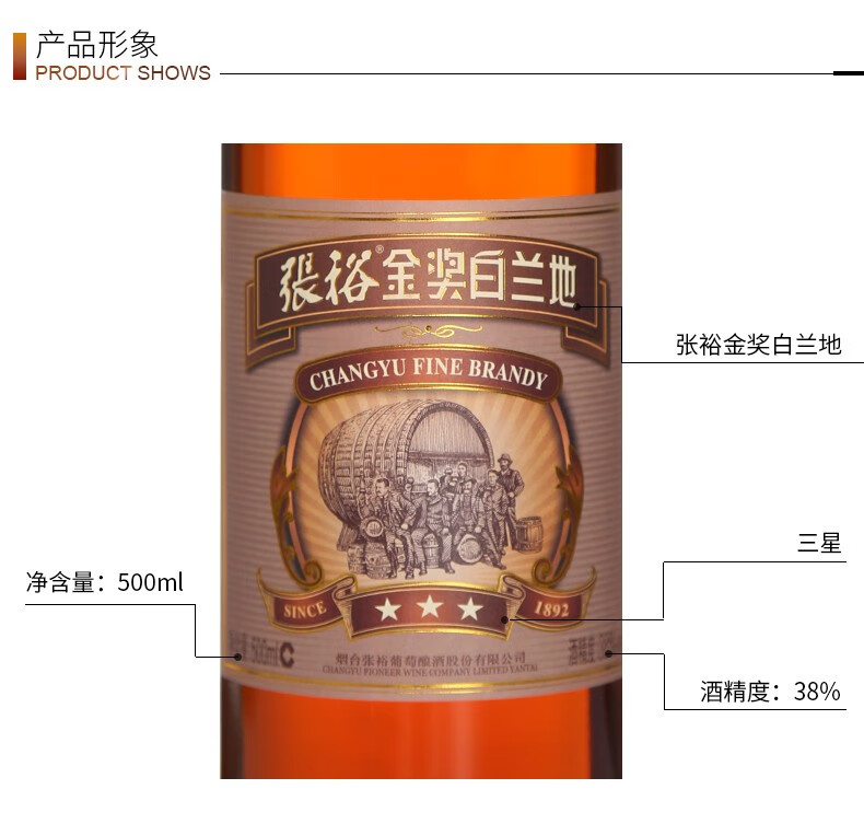 张裕白兰地珍藏五星老桶派格尔金奖白兰地四支套装洋酒 送礼 500mL 4瓶