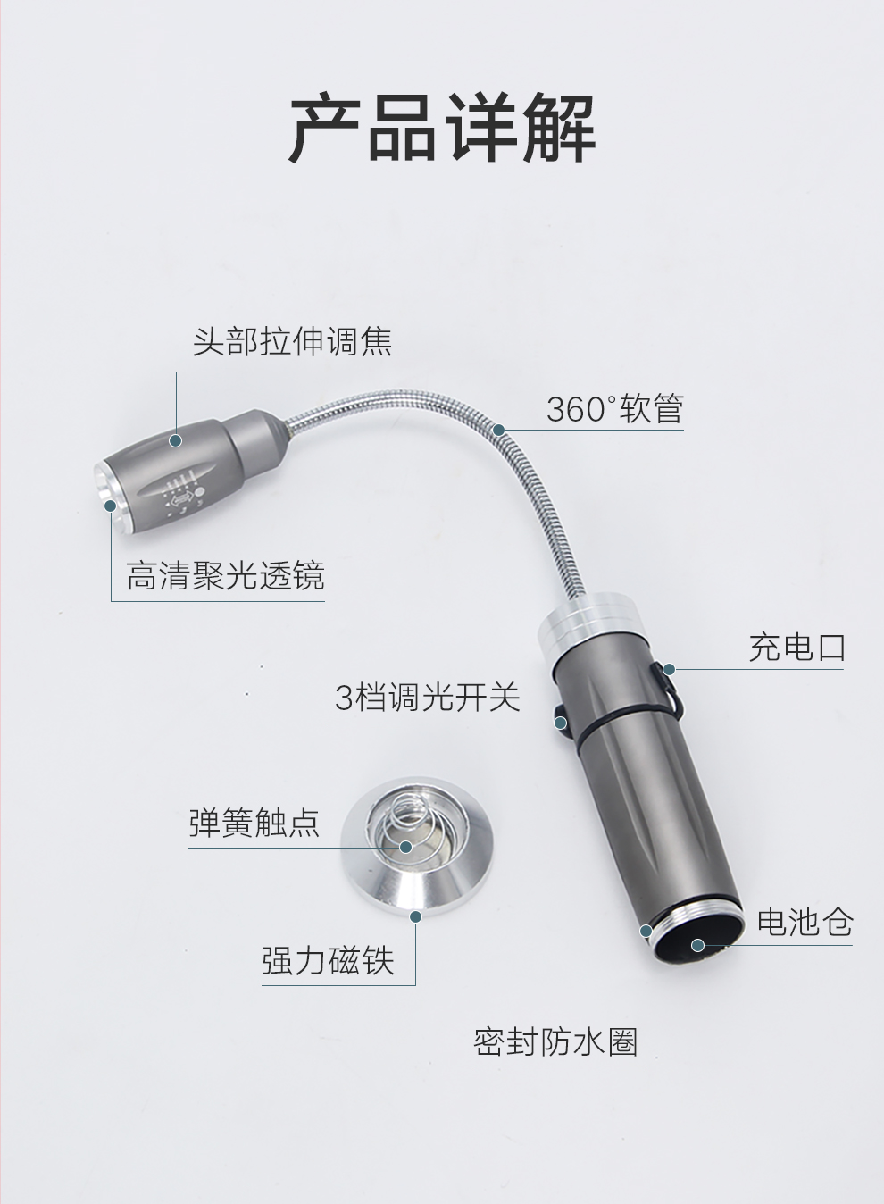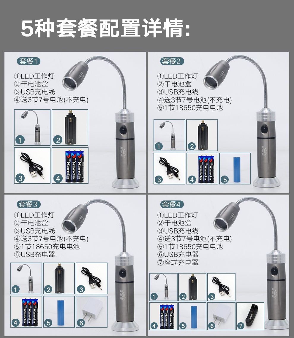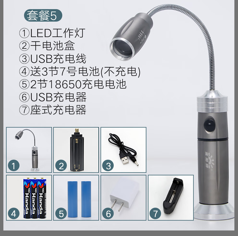 LED充电灯磁吸灯吸铁座无线灯机床灯工厂工业临时检修户外读书灯充电照明灯工作台灯JYY-YD 【黑色灯】套餐二