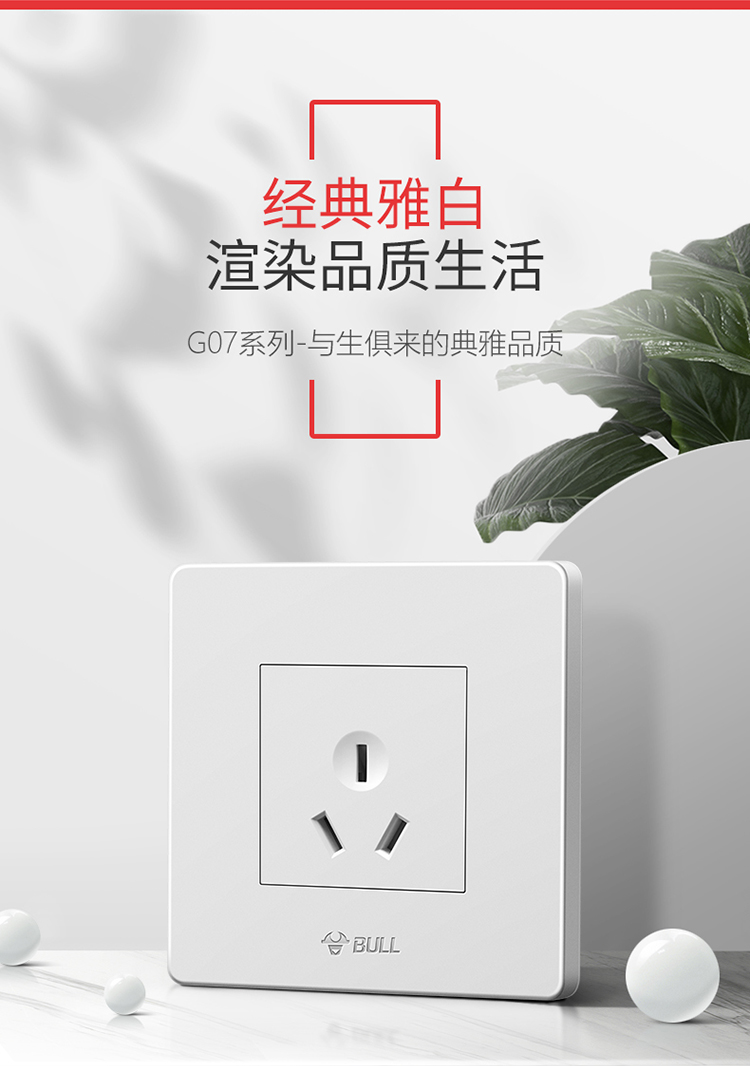 公牛空调插座16a电热水器专用三孔面板家用开关大功率墙壁g07暗装白源 G07白三孔16A