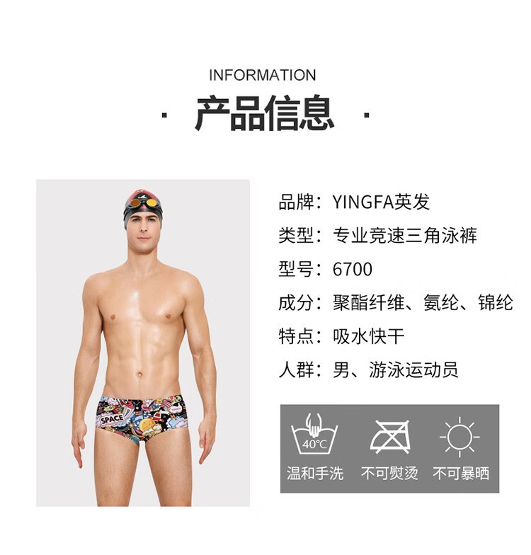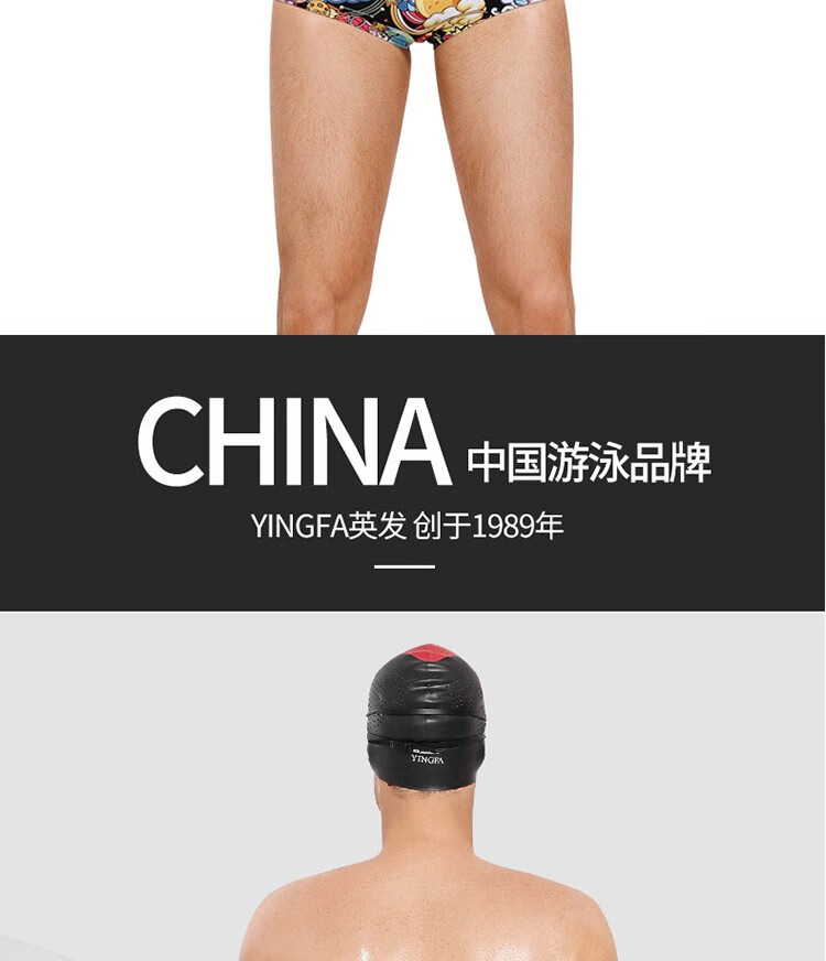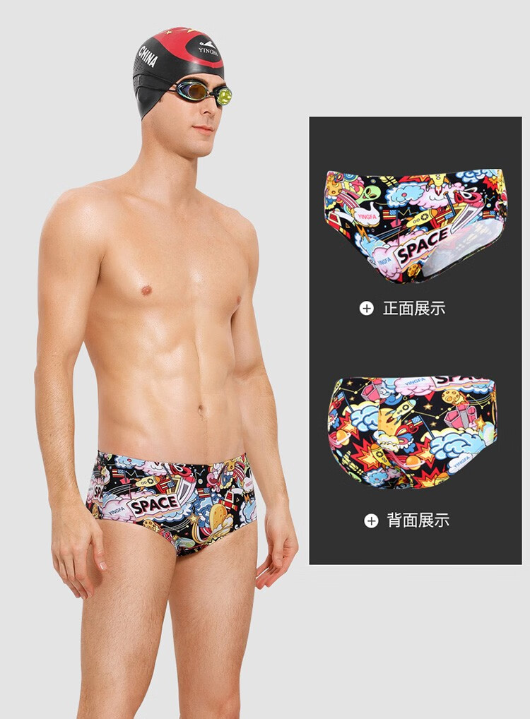 英发游泳衣男士成人三角游泳裤大童泳裤学生学游泳比赛竞赛专业 印花游泳裤 花色 L