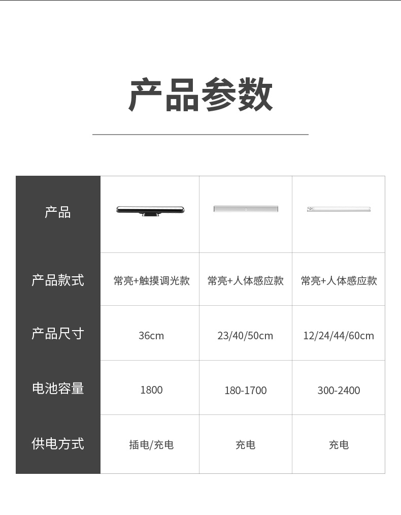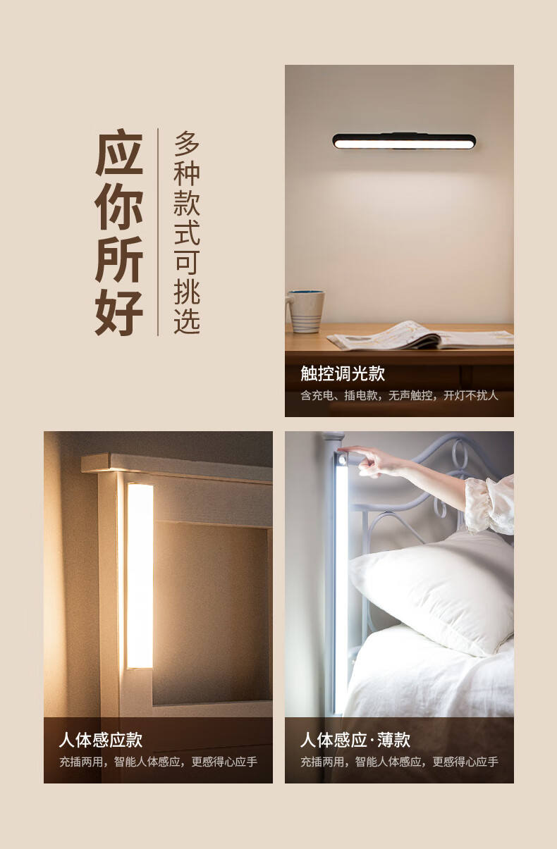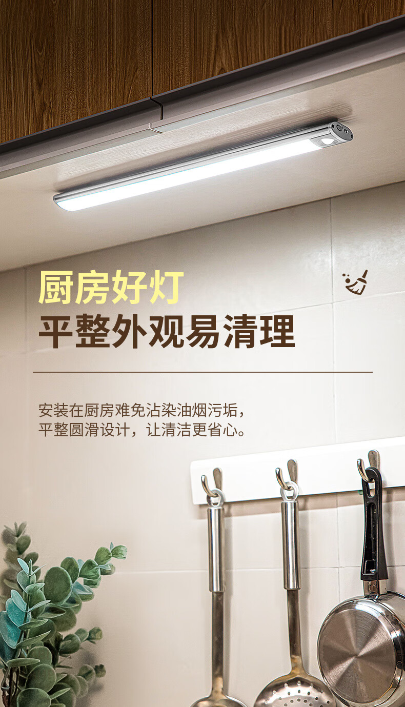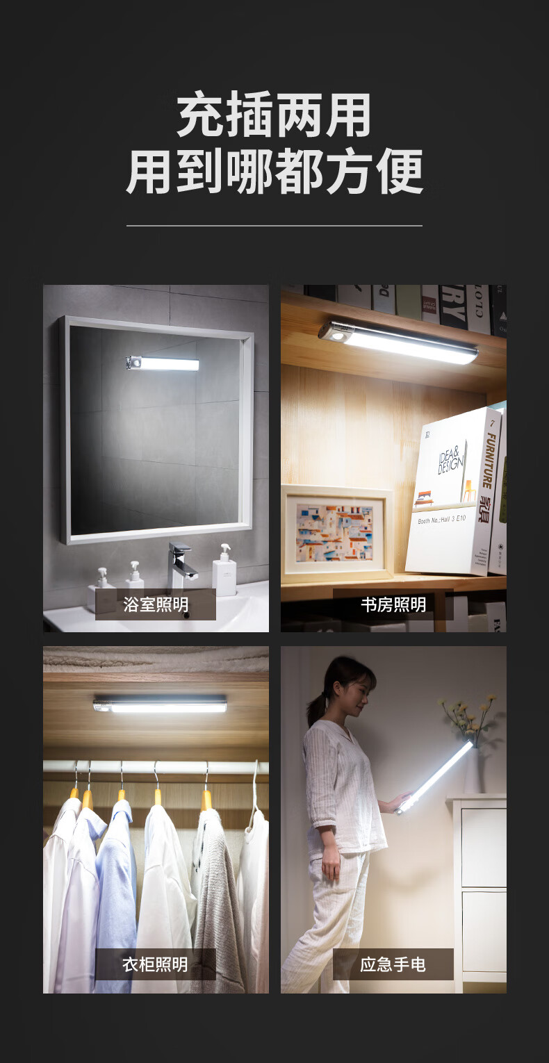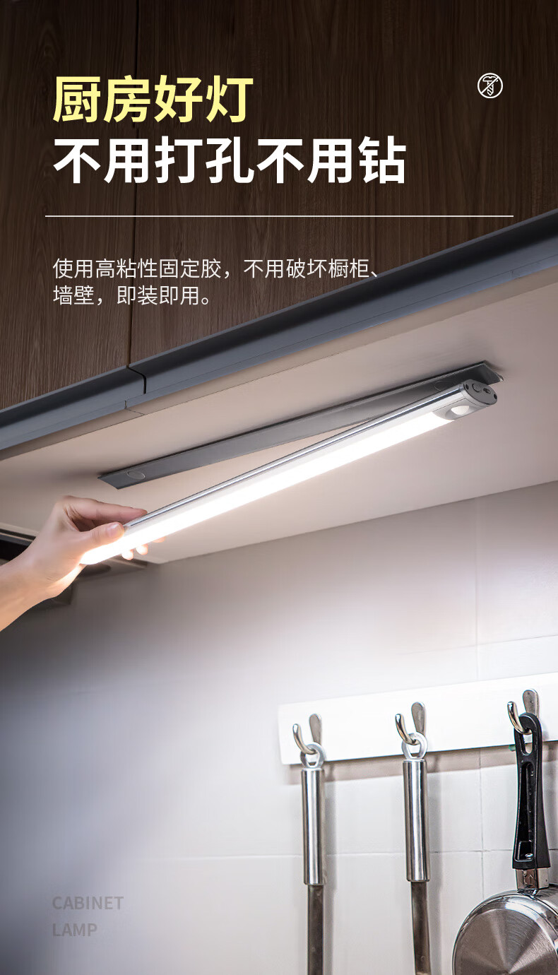 大九卫 台灯充电免打孔镜前灯LED灯条无线自粘手扫感应橱柜灯长条灯带免布线 32cm充电遥控款【常亮+遥控无极调光+磁吸】