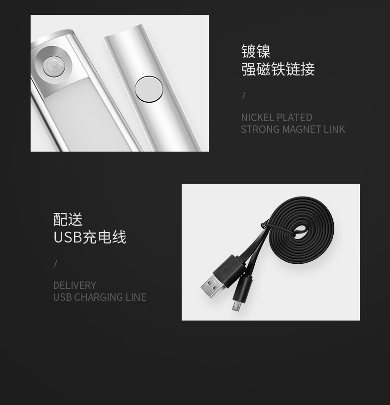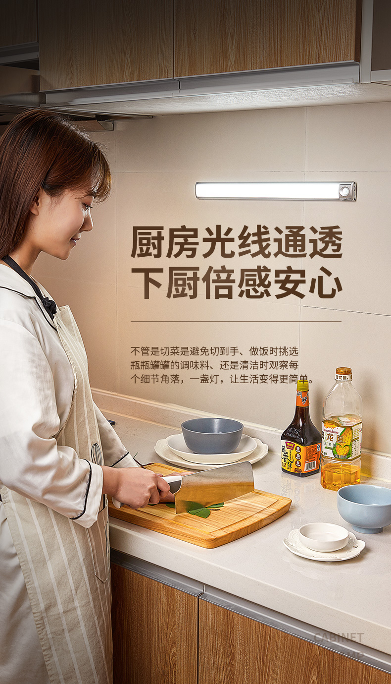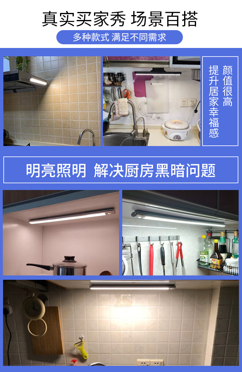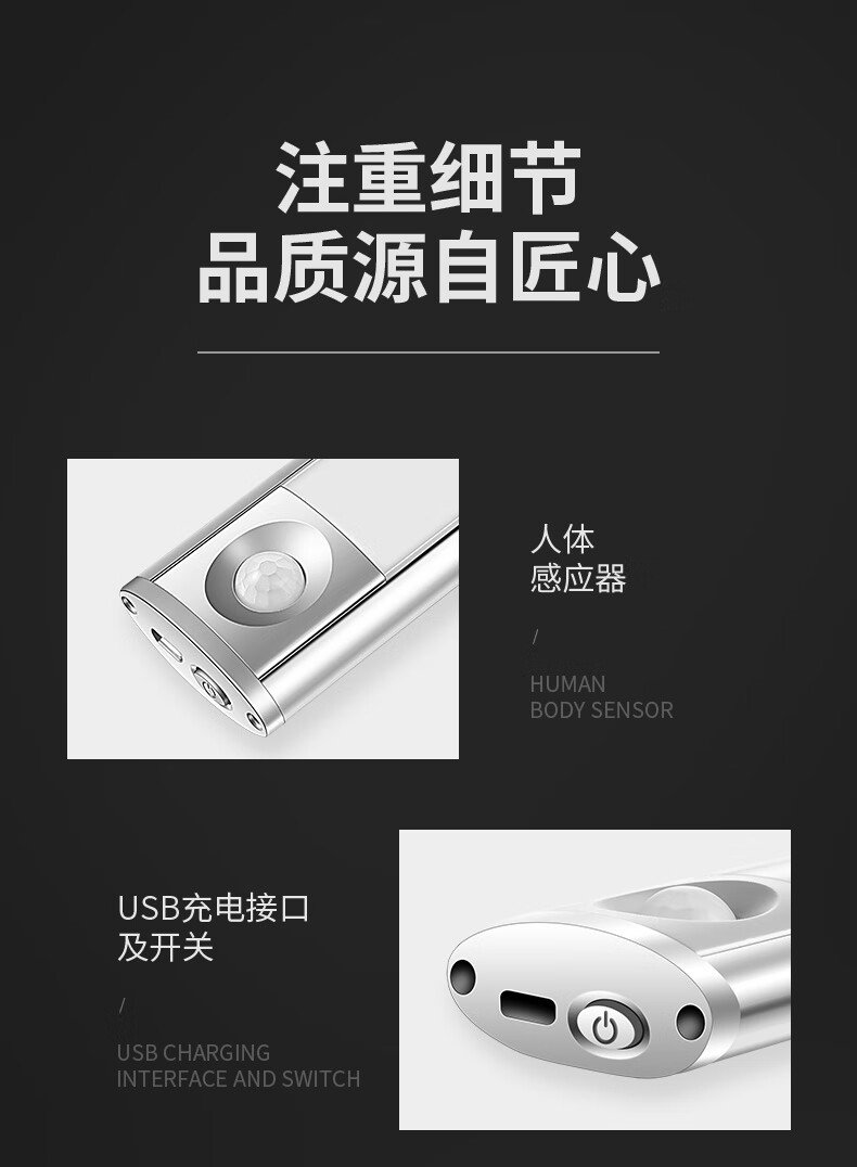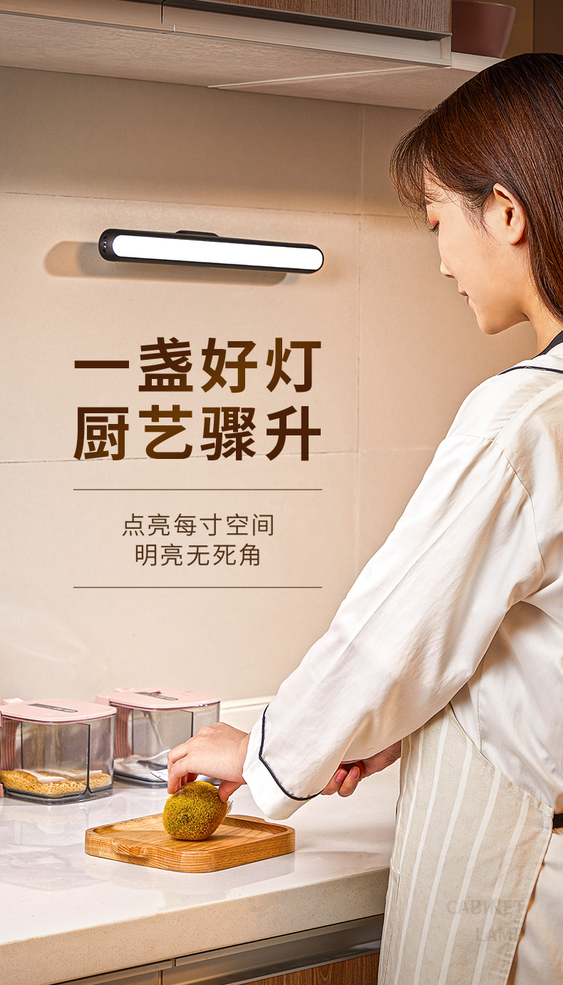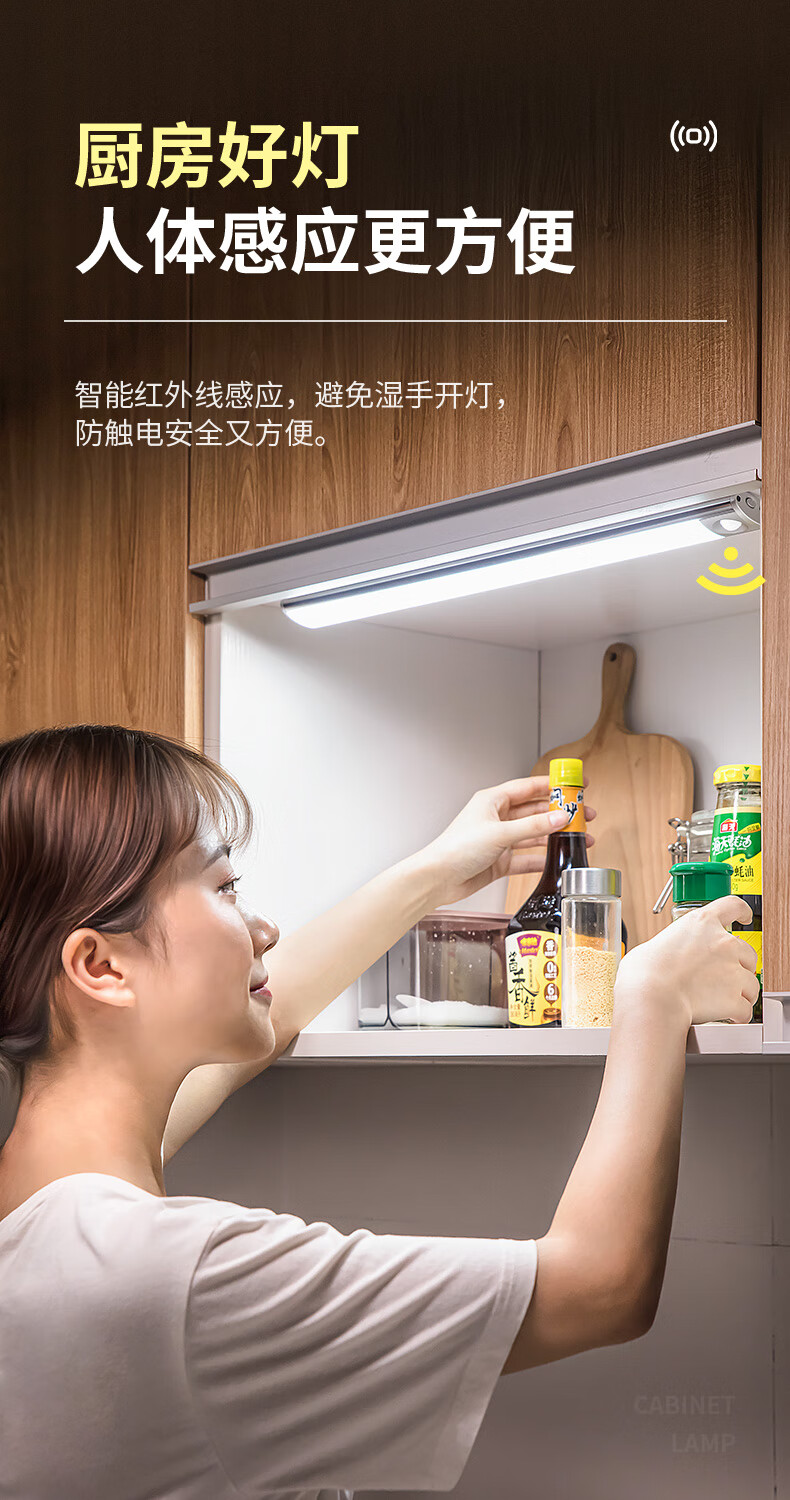 大九卫 台灯充电免打孔镜前灯LED灯条无线自粘手扫感应橱柜灯长条灯带免布线 32cm充电遥控款【常亮+遥控无极调光+磁吸】