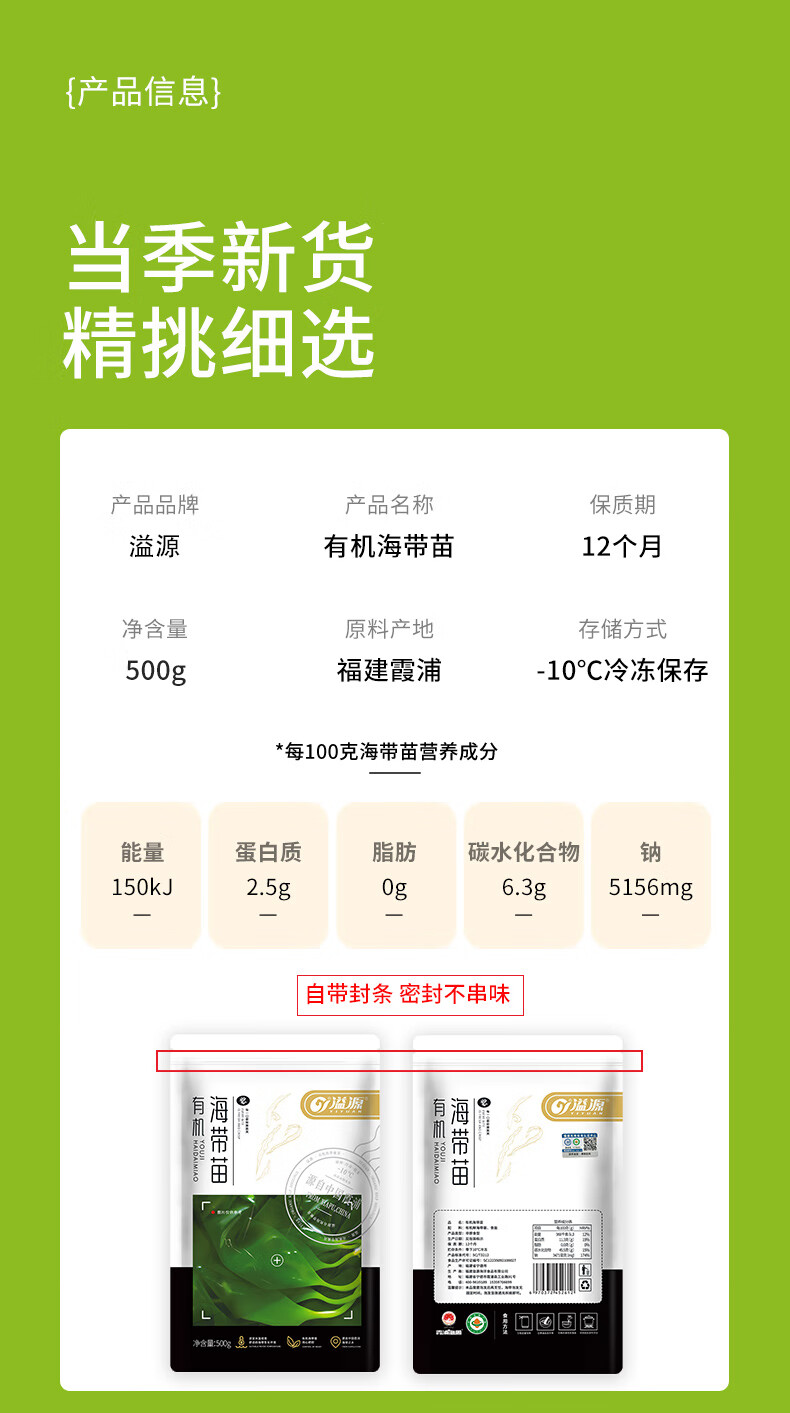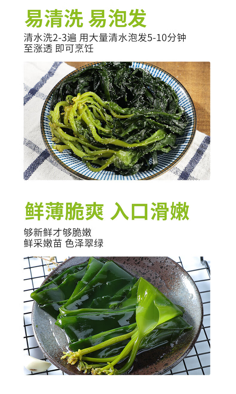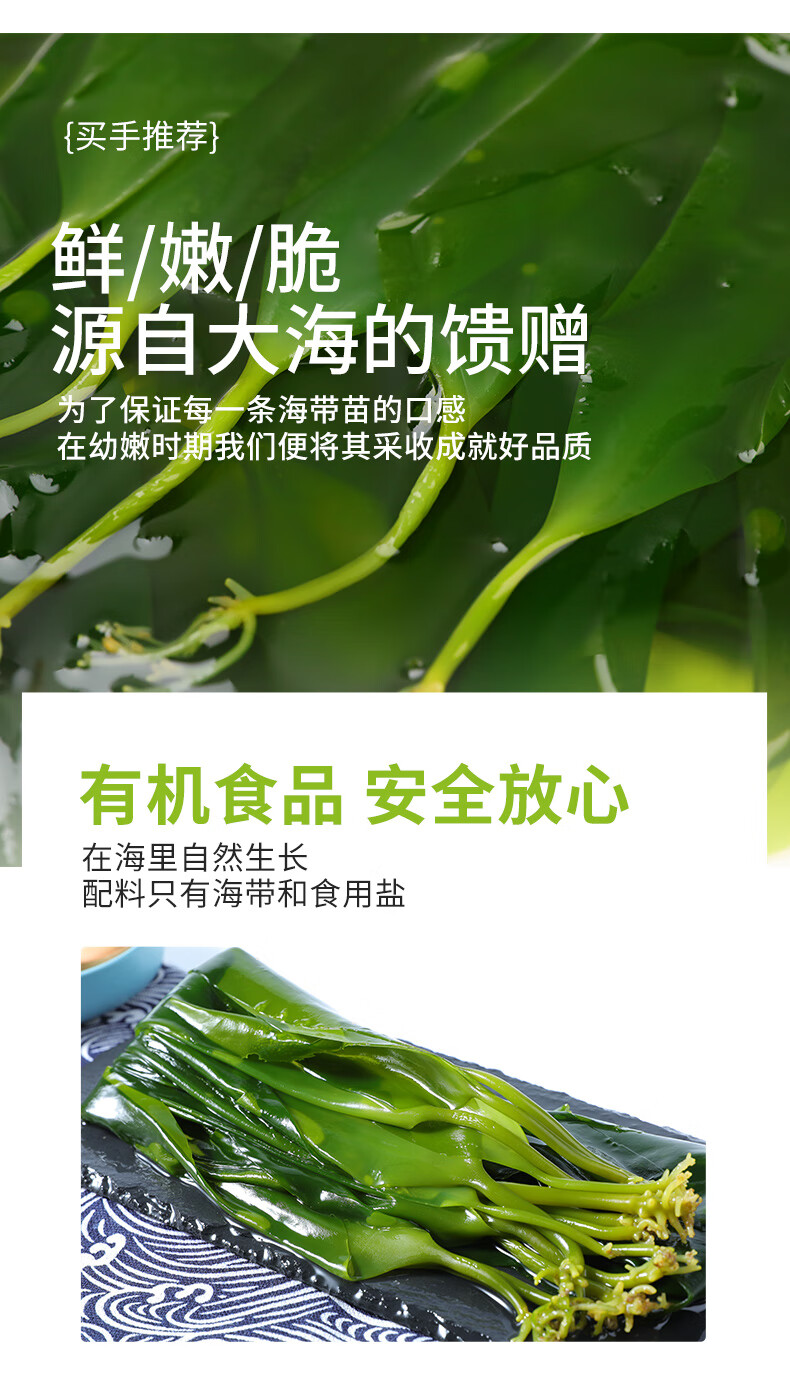 溢源【源头直发】有机盐渍海带苗海带嫩芽500g凉拌凉菜煲汤火锅食材 500g有机盐渍海带大苗
