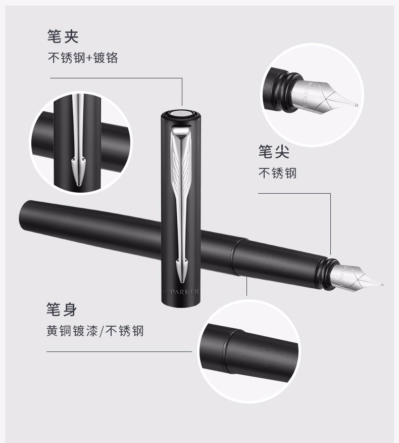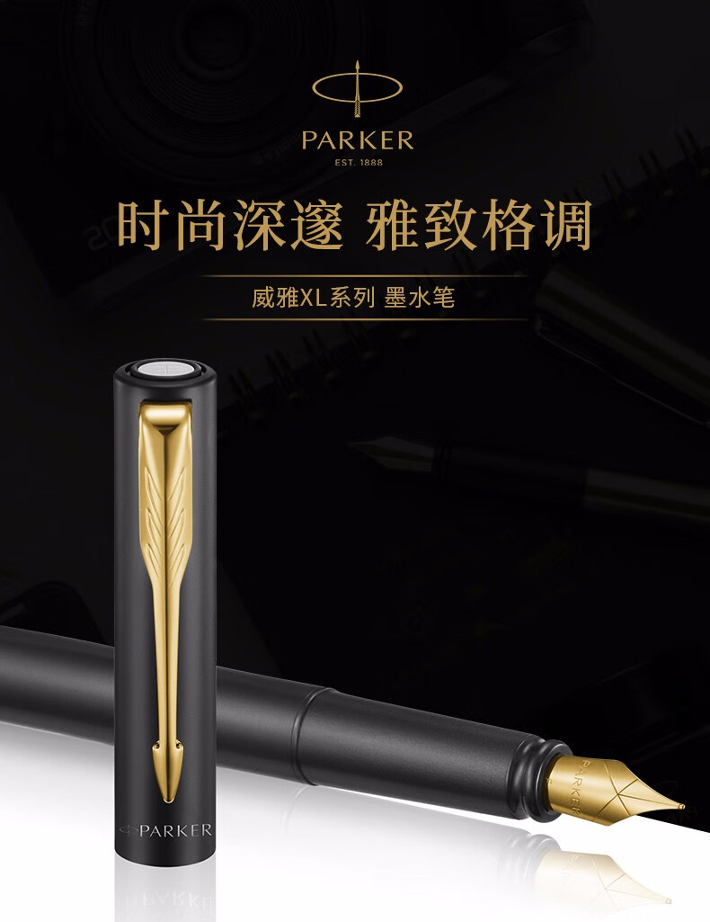 派克(PARKER)生日礼物钢笔墨水笔高端商务送礼定制刻字节日毕业礼物成人礼练字笔纪念品奖品文具金属笔热门商品 威雅XL燧石黑白夹墨水笔