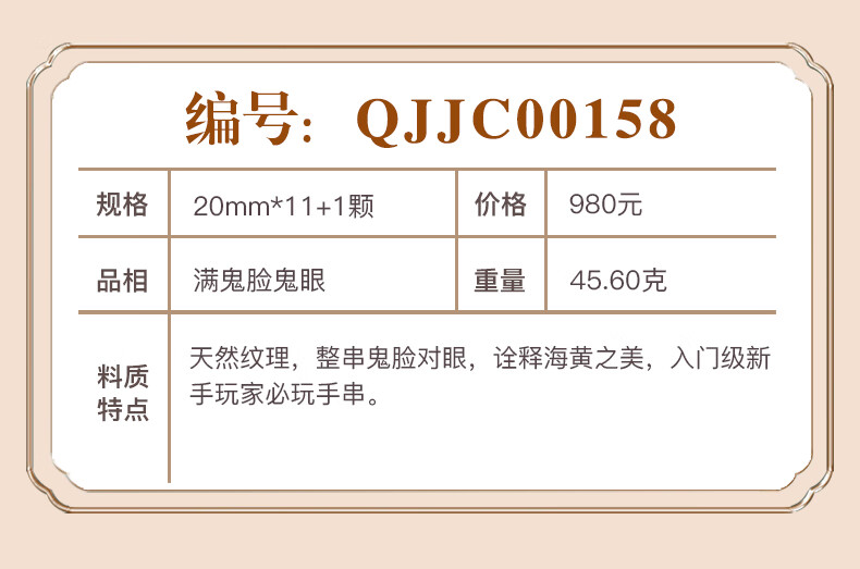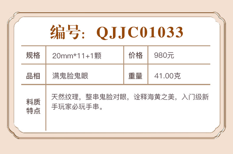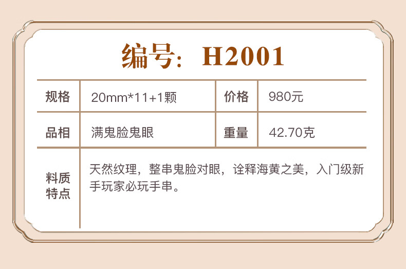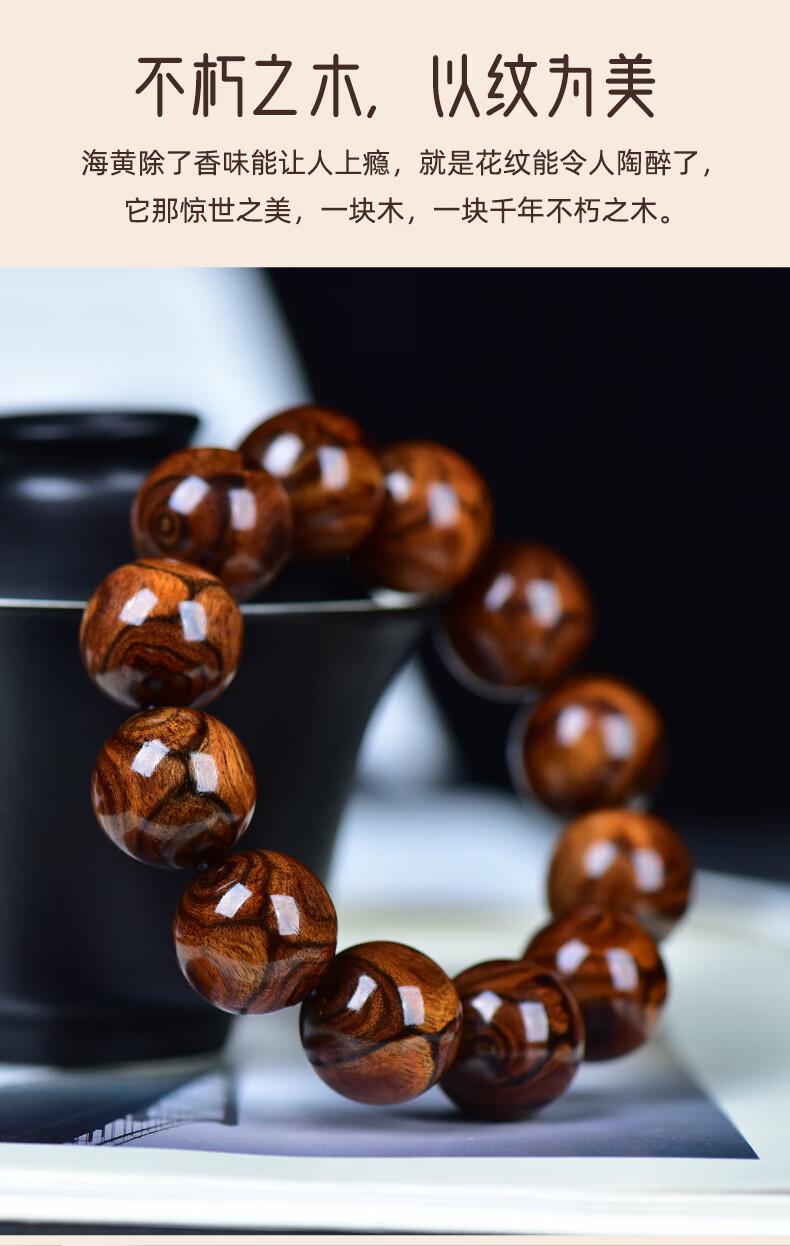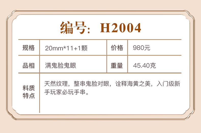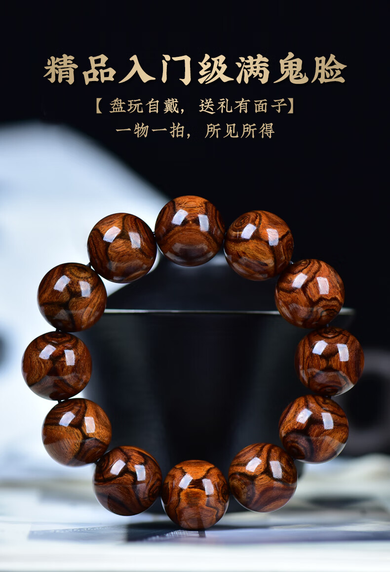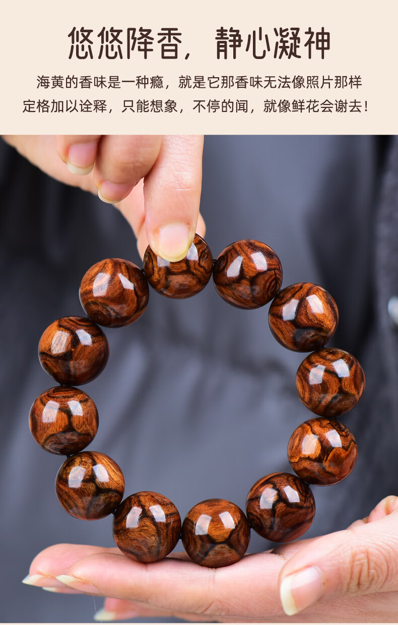 檀尊精品入门级海黄满鬼脸20mm海南黄花梨手串老料佛珠转运珠手链孤品 【不是真海黄,赔10万】
