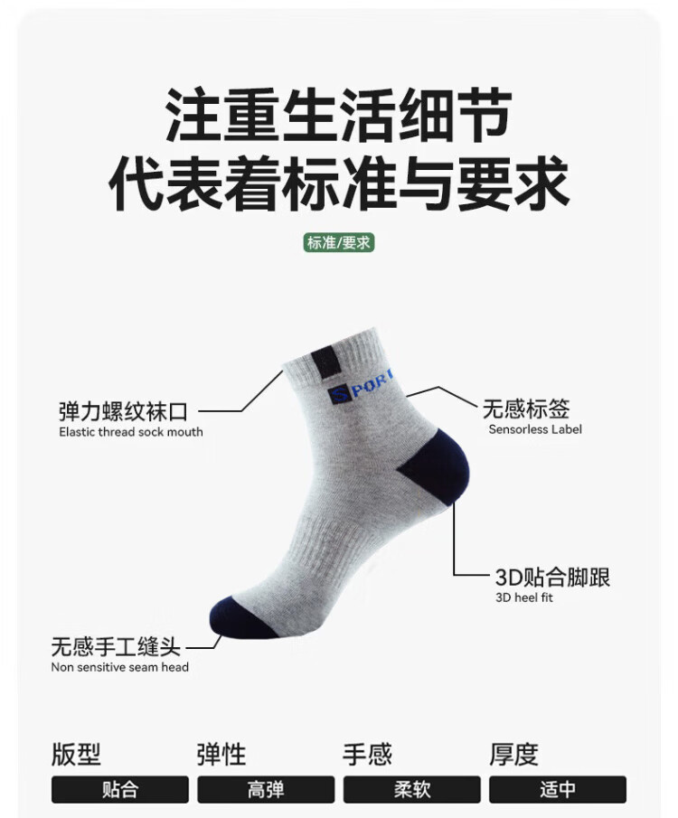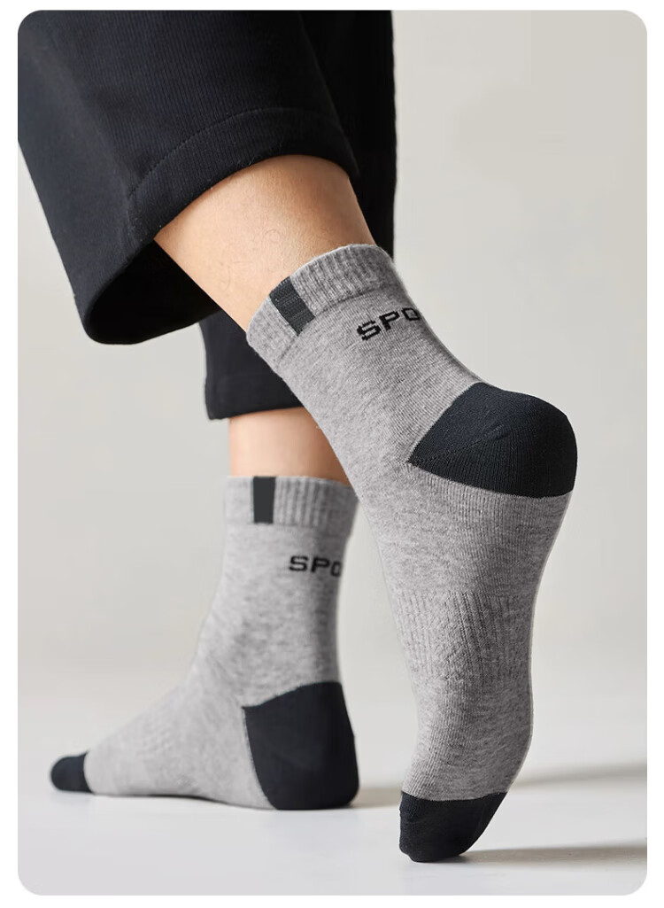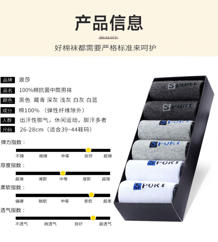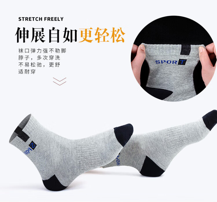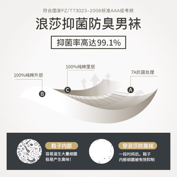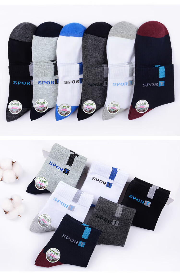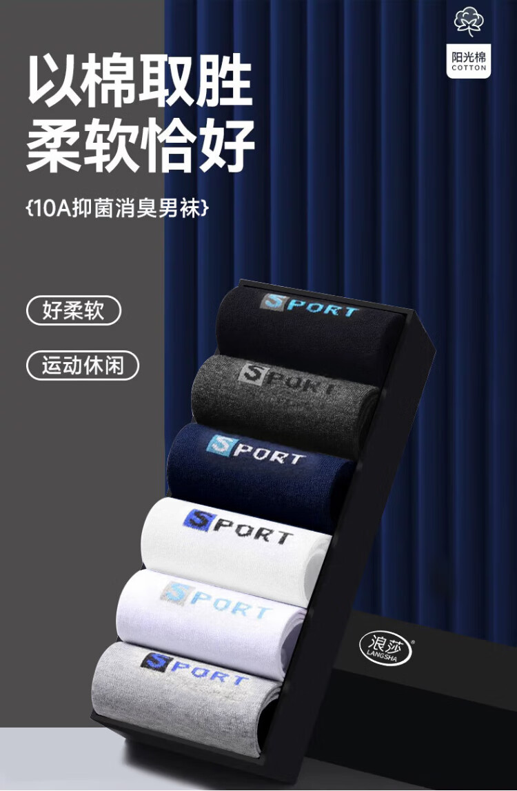 浪莎袜子男秋冬纯棉抑菌防臭运动袜男士袜子全棉吸汗舒适中筒男袜6双