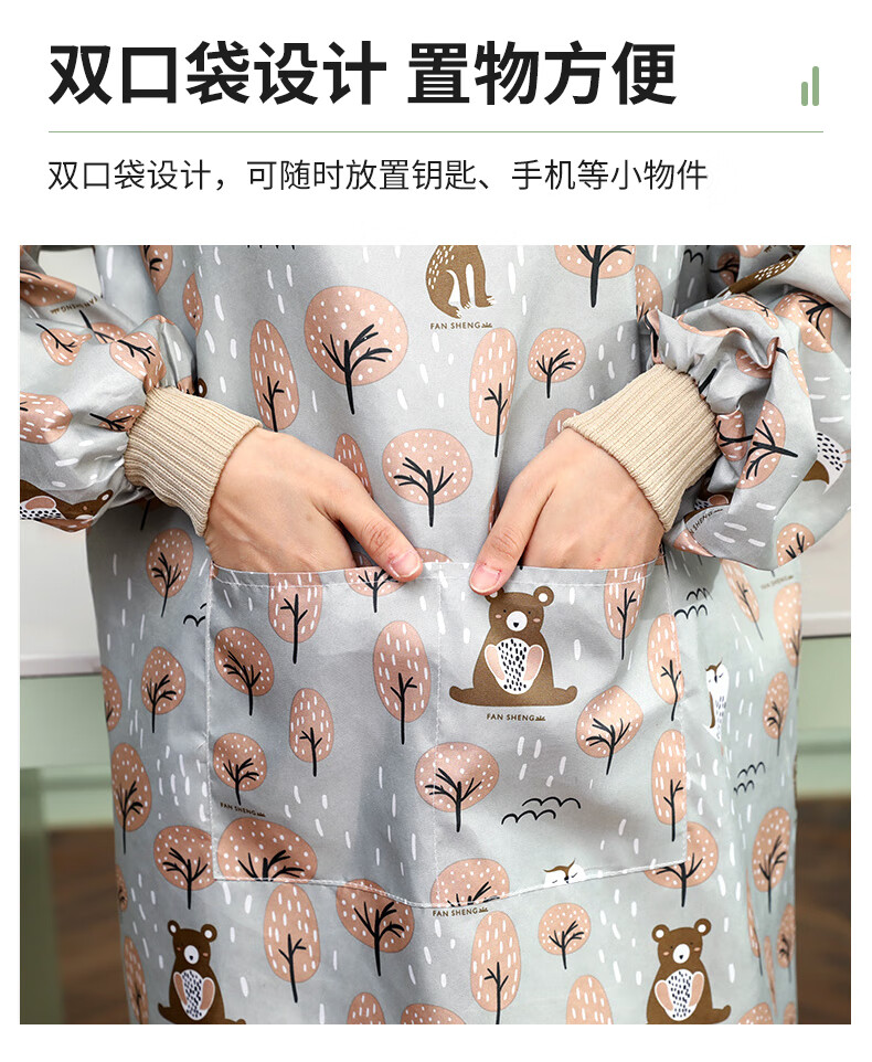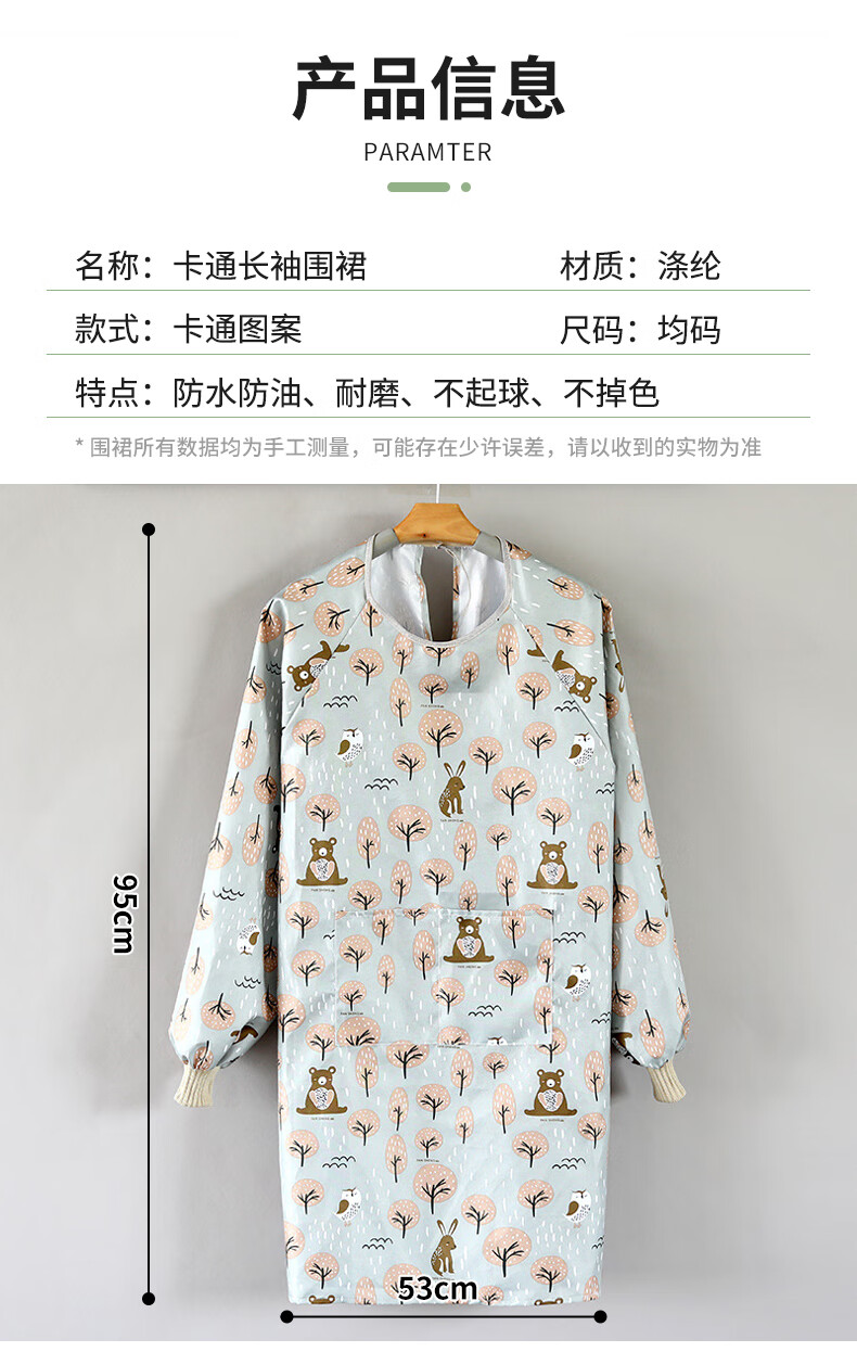 京惠思创 韩版时尚围裙【防污 防油 长袖】卡通图案厨房围裙女家用长袖