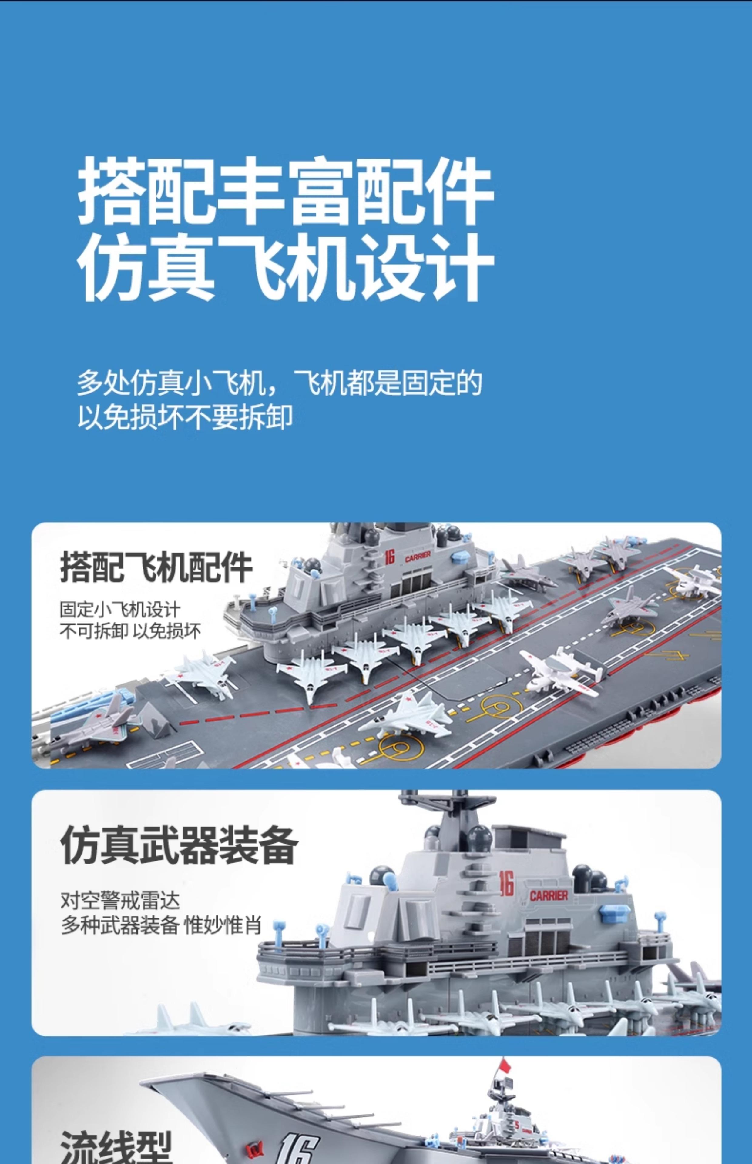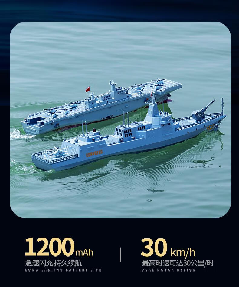ZKHE2025大马力水上电动遥控船玩具航空母舰军舰模型可下水潜水艇 福建号航空母舰双电机输出 2组充电电池+遥控电池+充电线