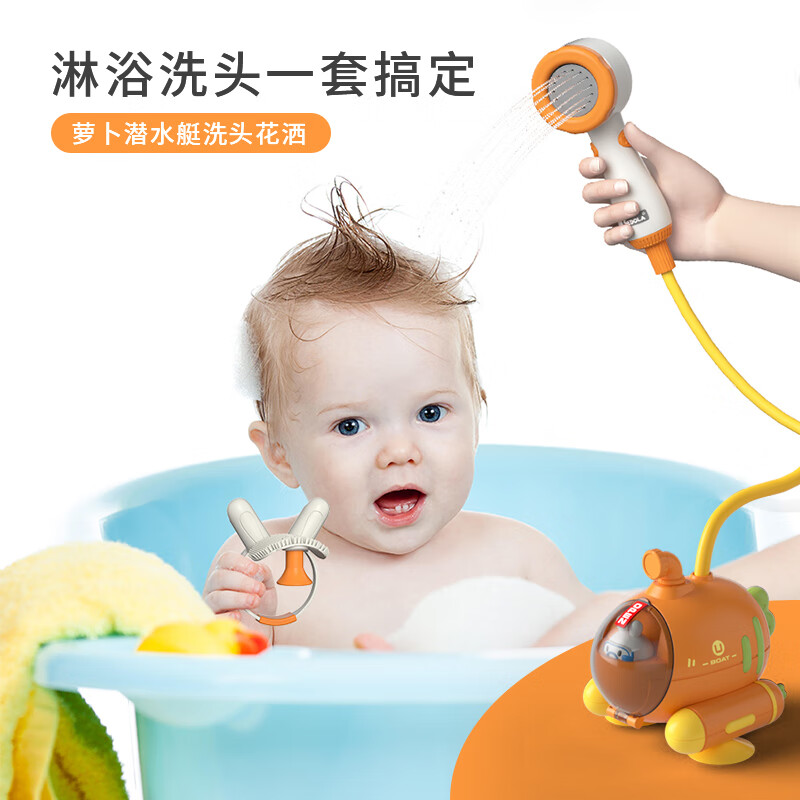 班帝儿童玩具宝宝洗澡玩具儿童电动萝卜潜水艇花洒男女孩 充电款潜水艇花洒+3转转乐