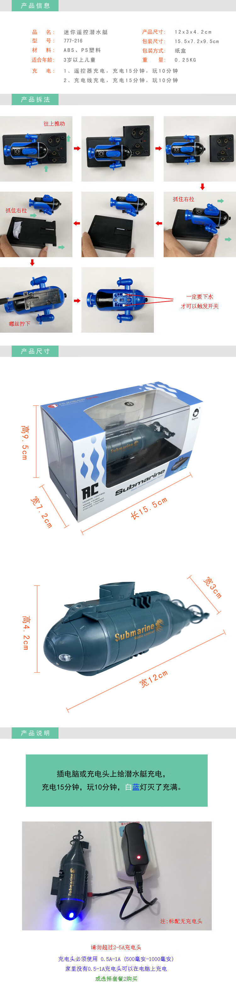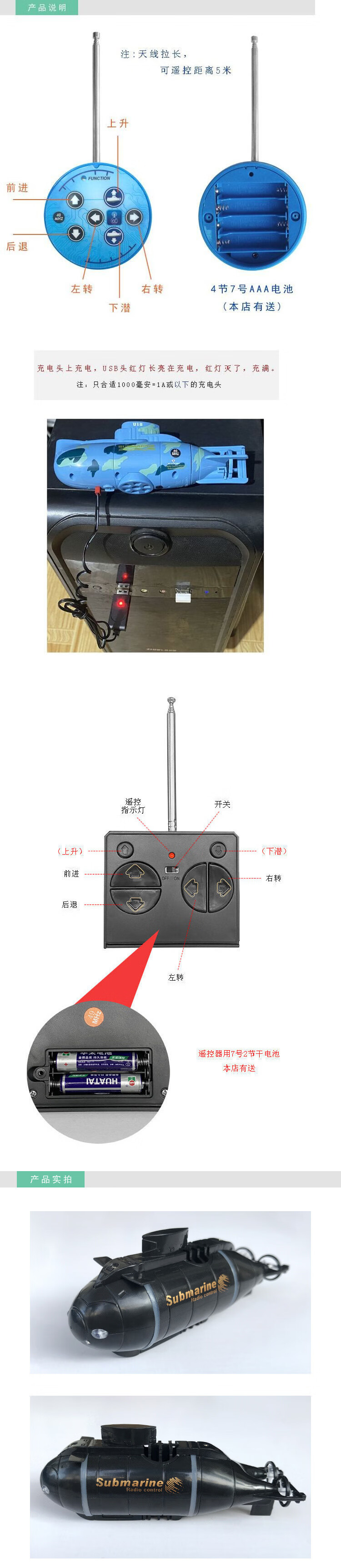 Le bateau télécommandé peut être lancé dans l'eau avec caméra télécommande sous-marin mini simulation étanche sans fil modèle de sous-marin hors-bord Fujian ship-2.4G batterie de télécommande sans charge standard + outils