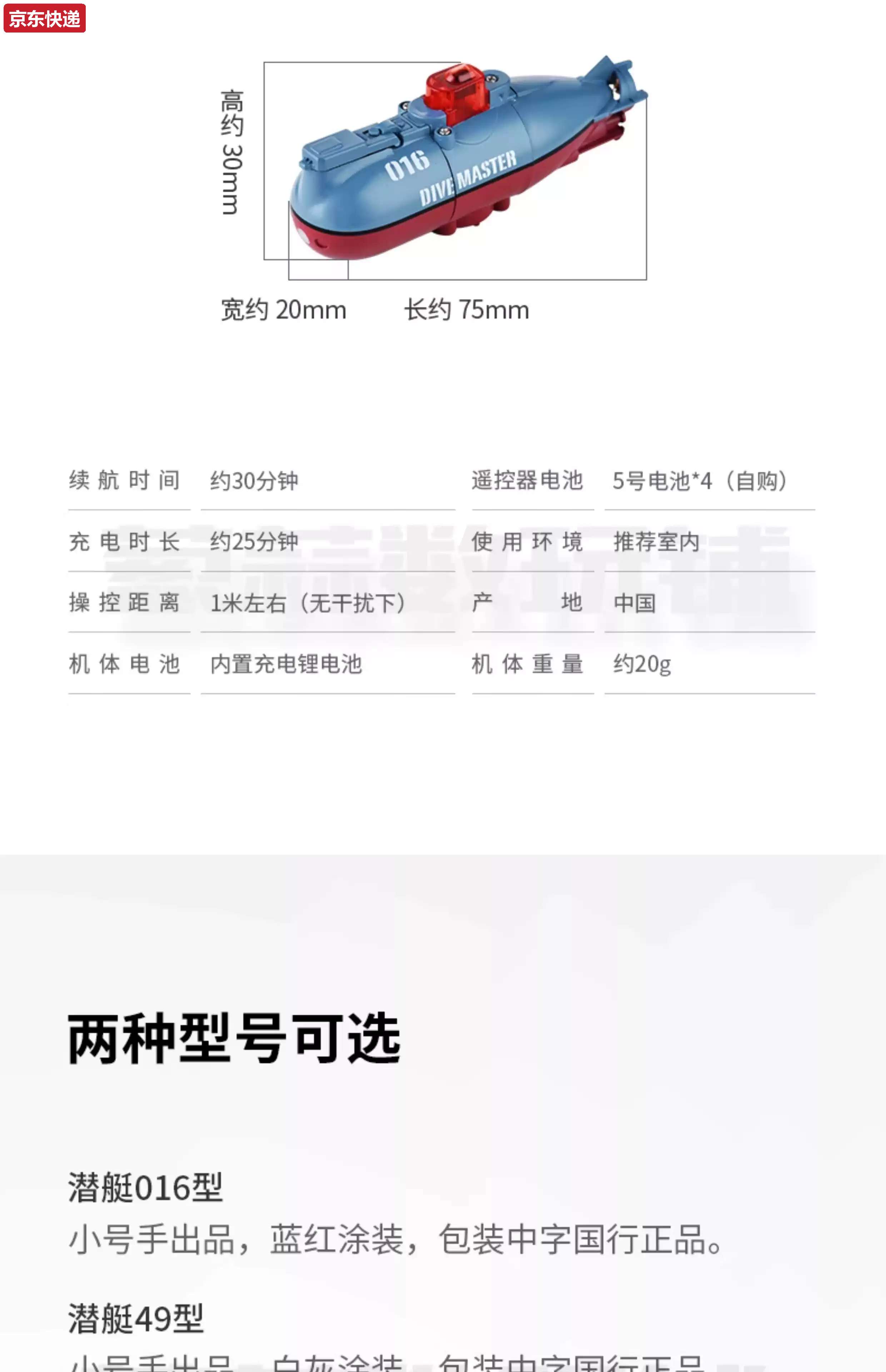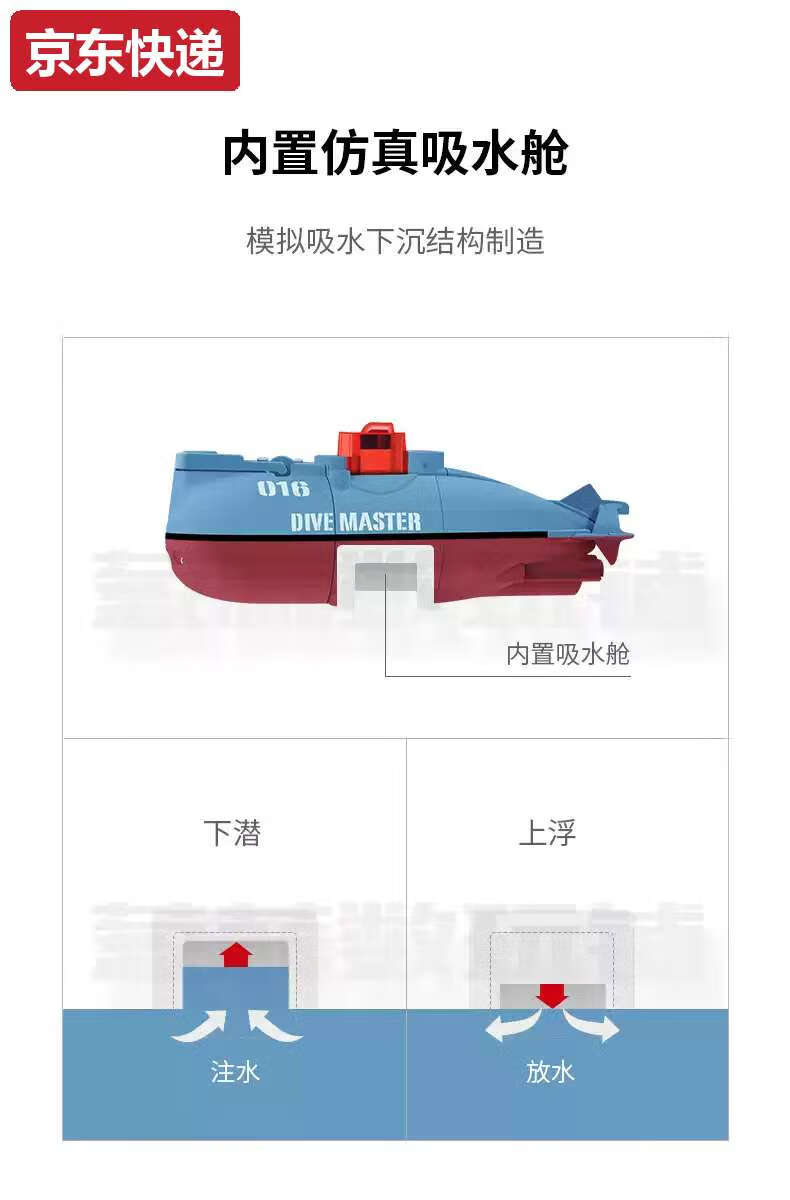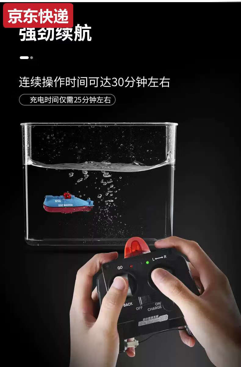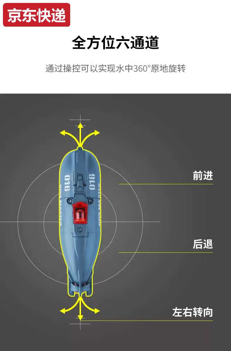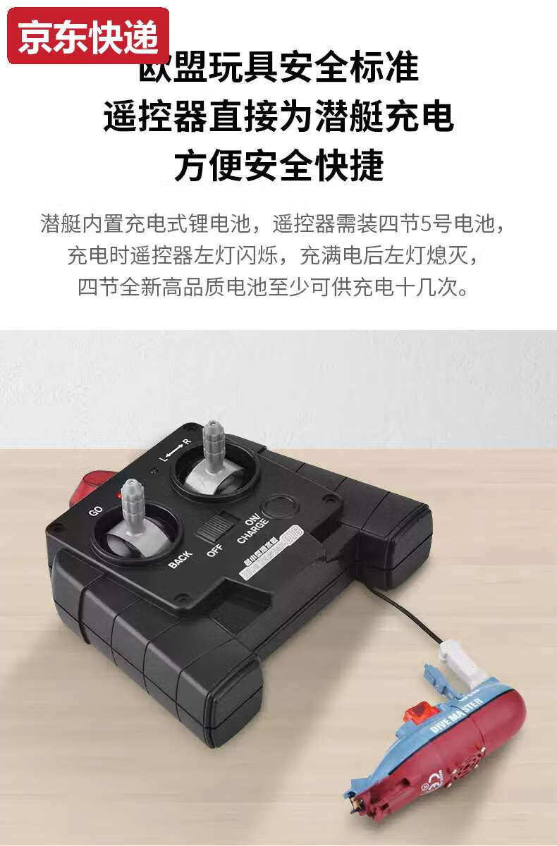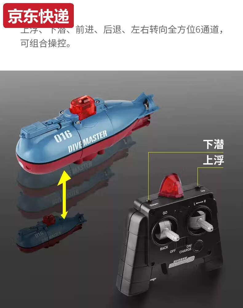 蓝彩和世界超小型遥控潜水艇016潜艇电动迷你充电玩具船日本鱼缸景模型 LSRC蓝色全长约15cm