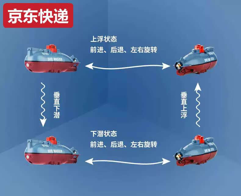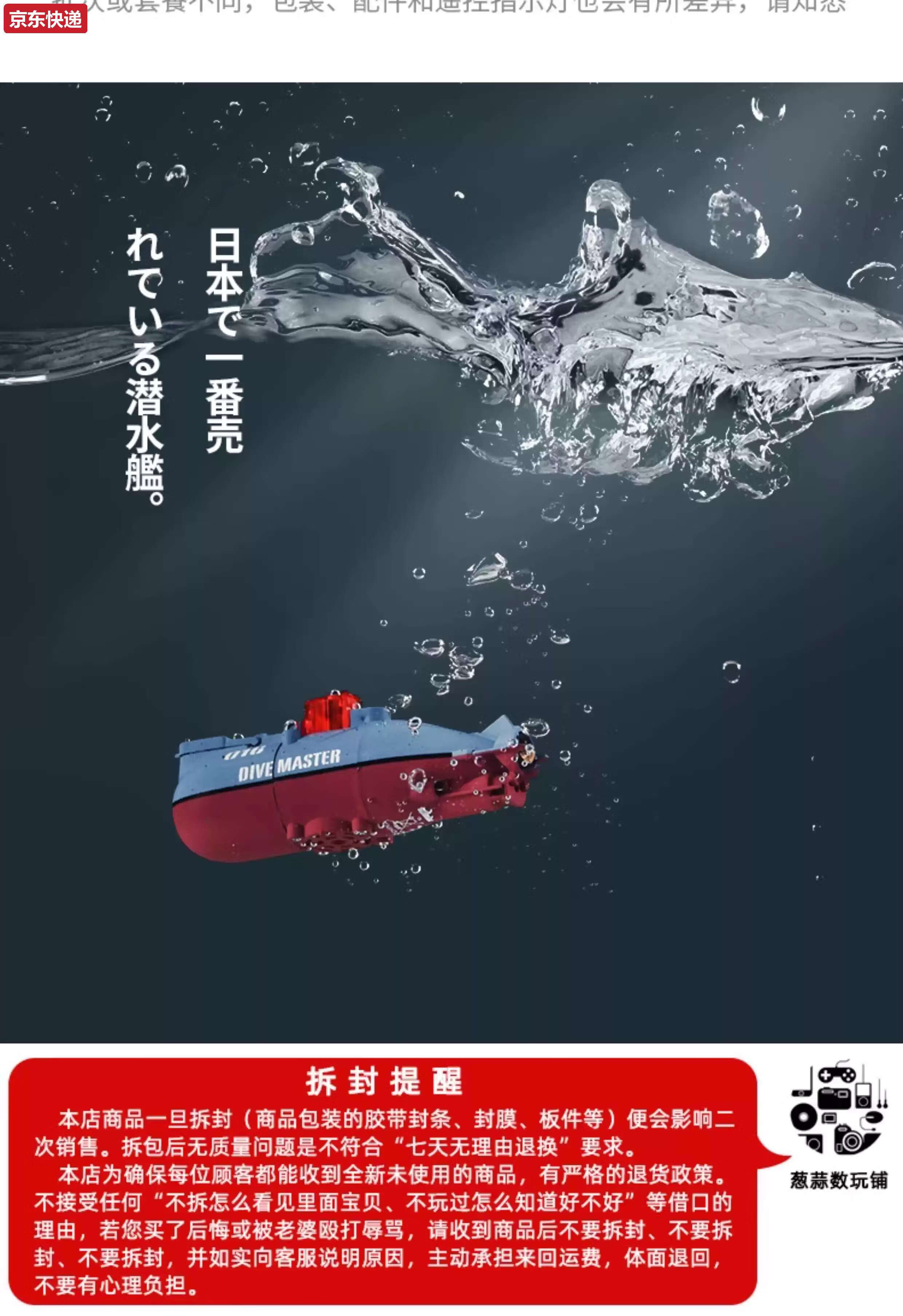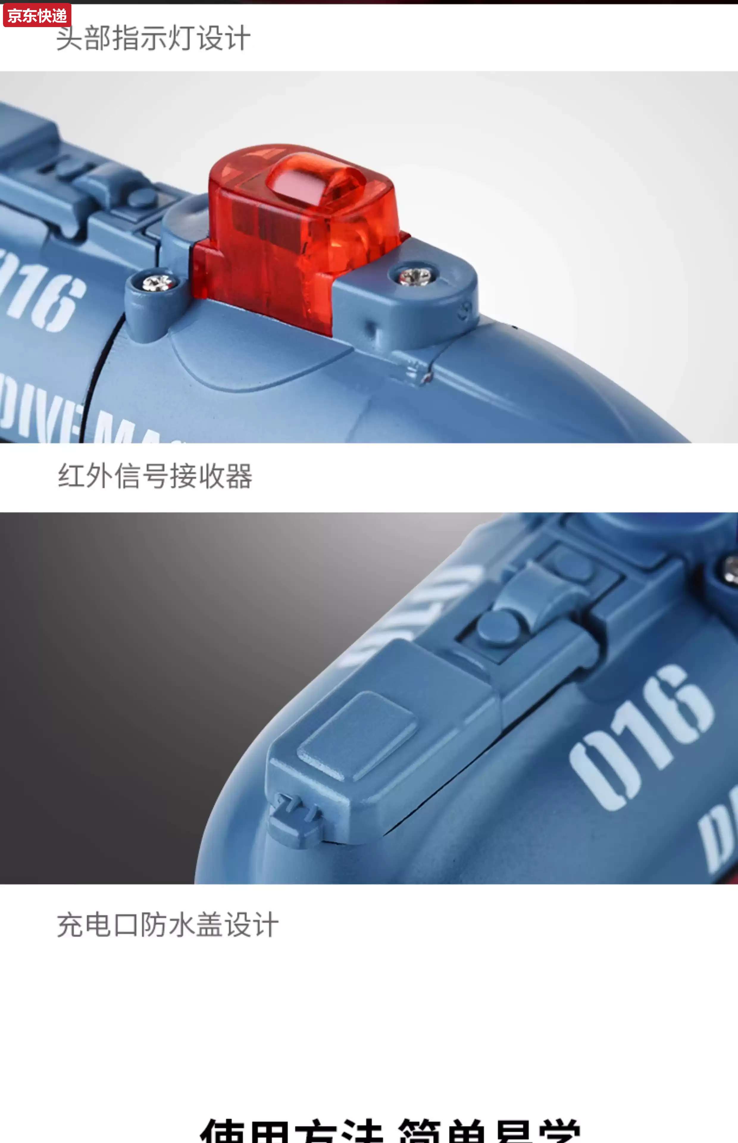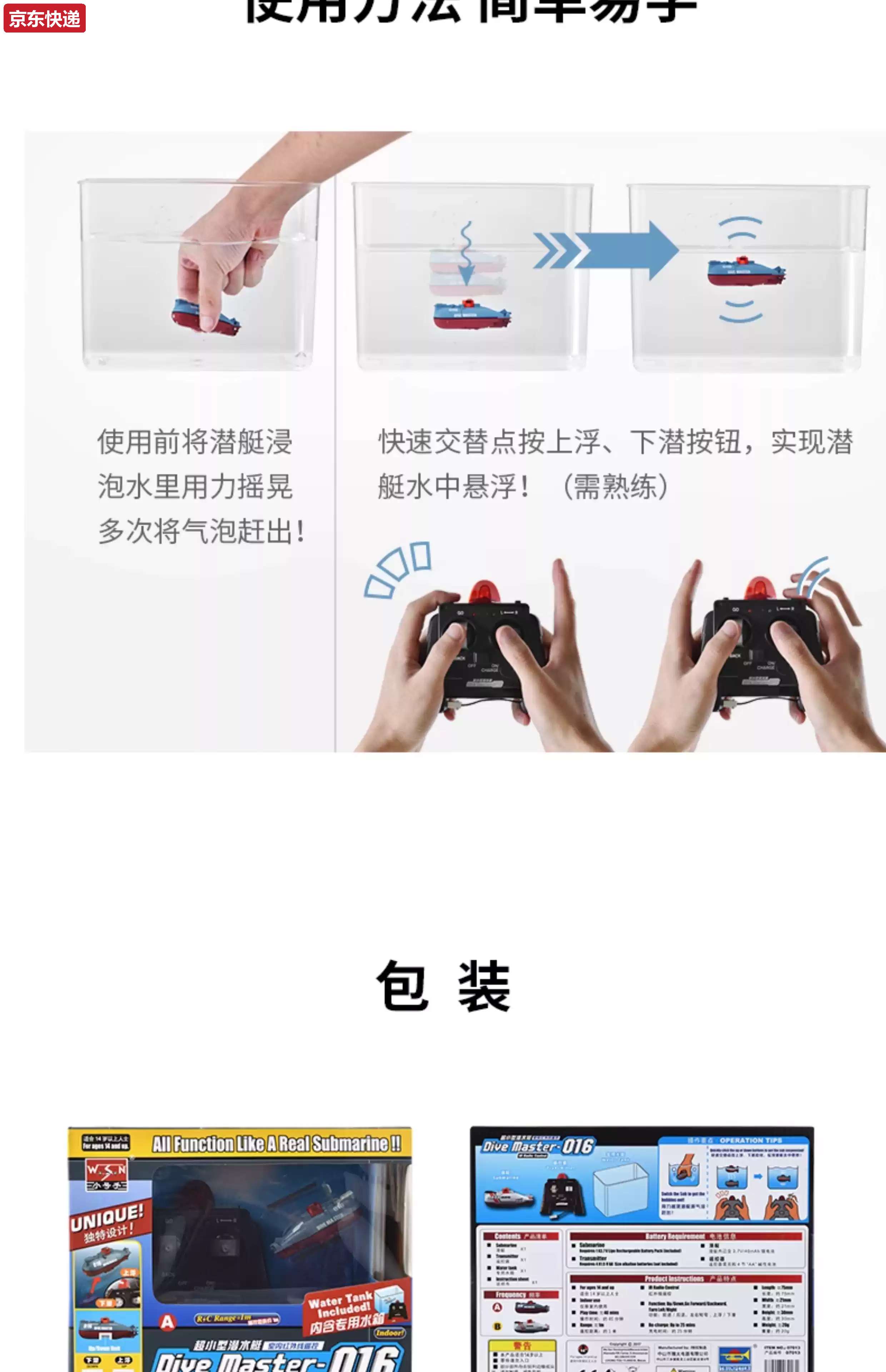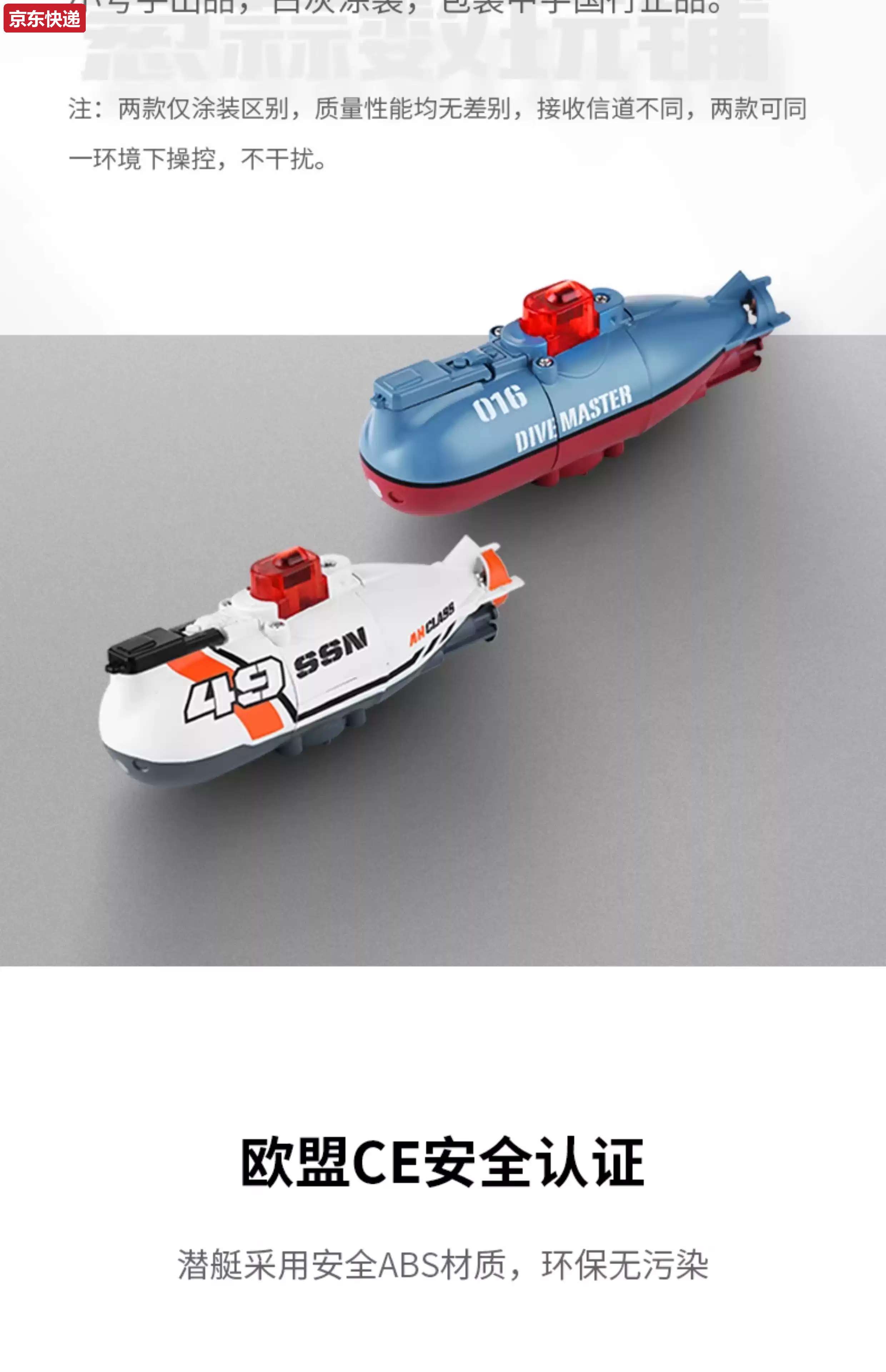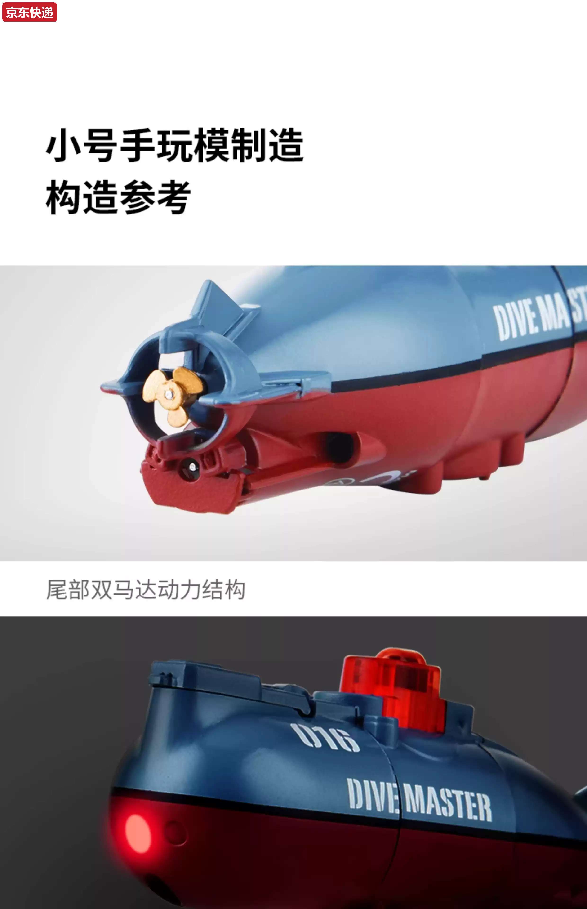 蓝彩和世界超小型遥控潜水艇016潜艇电动迷你充电玩具船日本鱼缸景模型 LSRC蓝色全长约15cm