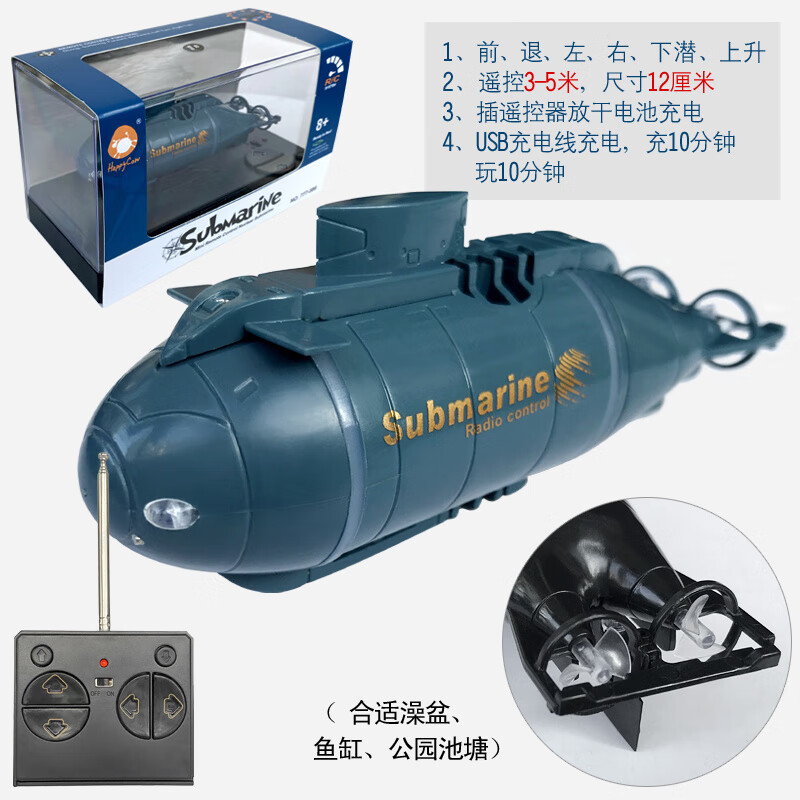 Ferngesteuertes Mini-U-Boot, U-Boot-Schiff, Kriegsschiff-Modell, Aquarium, tauchfähig, unter Wasser, elektrisches Kinder-Wasserspielzeug, blaues U-Boot, 49 MHz, Ladekopf + Aufladen, kabellos, Fernbedienungsbatterie + Werkzeuge