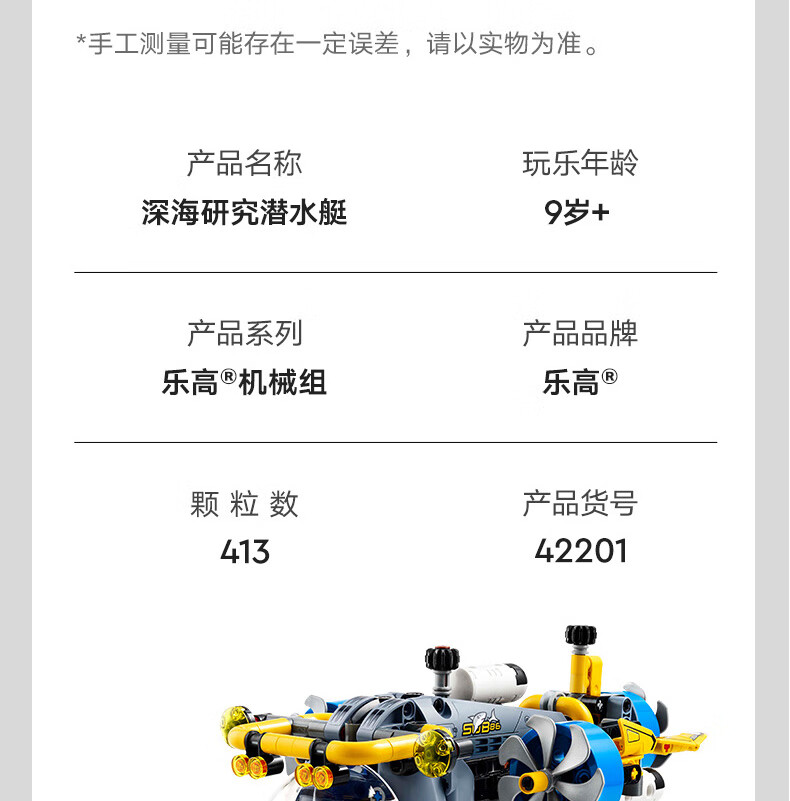 乐高(LEGO)机械科技42201深海研究潜水艇男孩积木玩具儿童益智拼装礼物 42201深海研究潜水艇