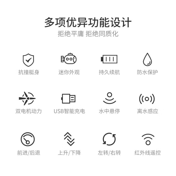 无线迷你遥控潜水艇儿童遥控小型核潜艇玩具电动迷你充电玩具船鱼 白色潜艇【续航30分钟】遥控器也防水 三年保修【赠送电池+螺丝刀】