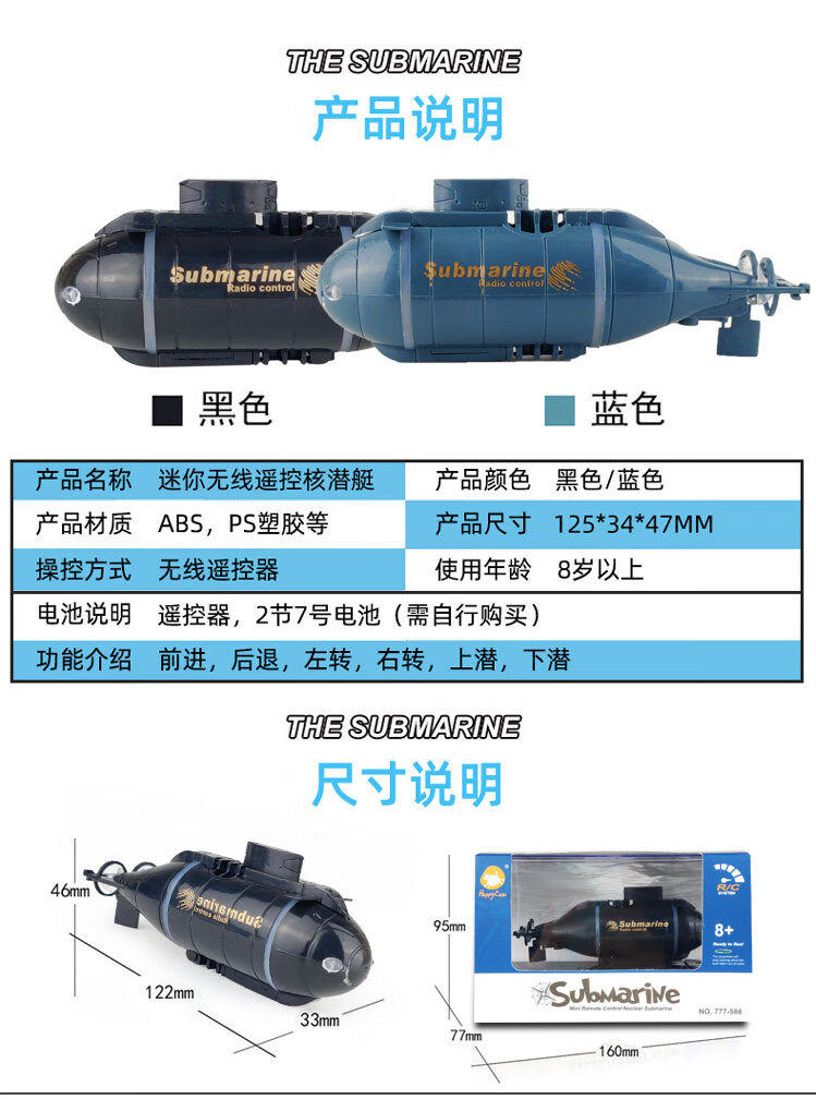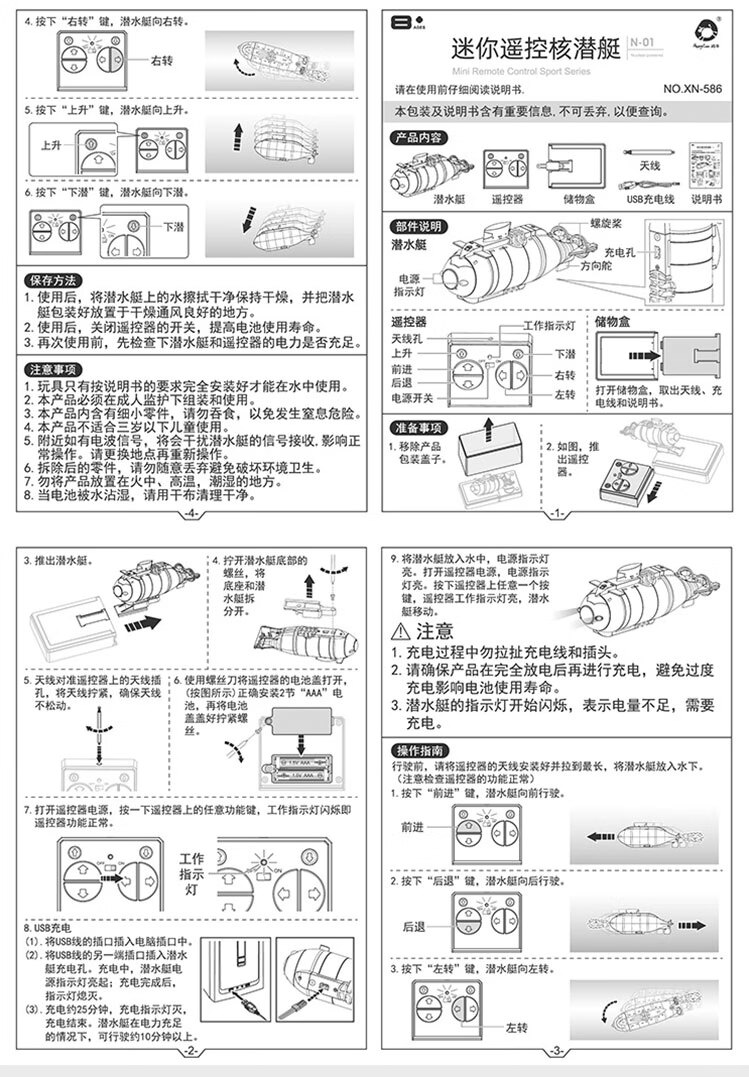Children's toy remote control mini submarine nuclear submarine rechargeable model boat fish tank water tank yacht simulation speed boat black_six-channel rechargeable version_2 No. 7 remote control batteries rechargeable version + remote control battery + screwdriver