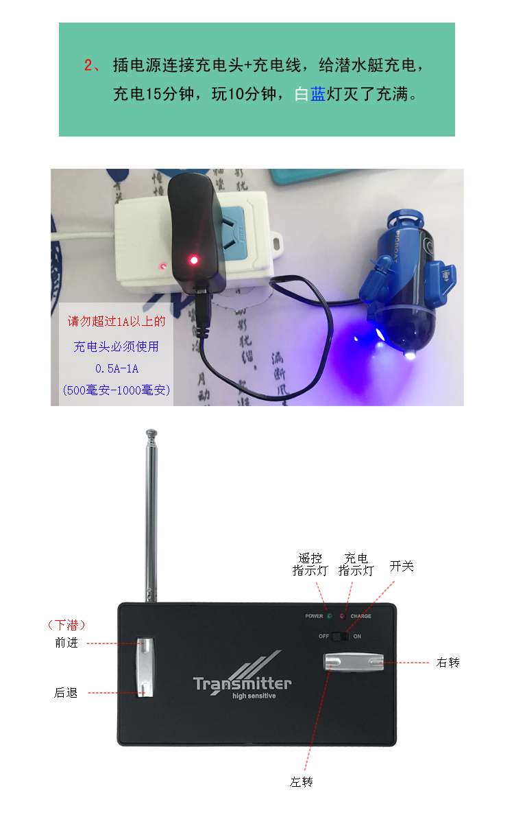 鱼缸迷你型充电遥控儿童摇控五一节日礼物 潜水艇-黄色-40mhz 充电线-含干电池+工具