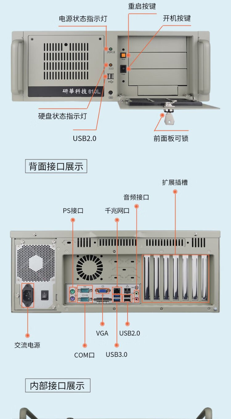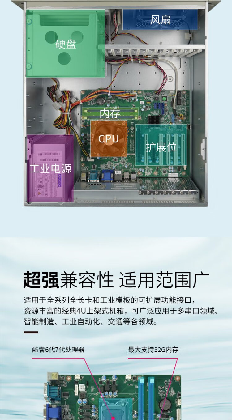 zhongyan 研华工控机 IPC-610L原装 机器视觉 工业控制 【酷睿6代】i7-6700/16G内存/1T硬盘