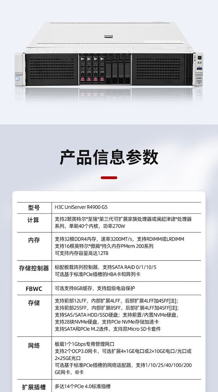 H3C R4900 G5 Dual-Socket 2U Rack Server Domestic DeepSeek Deployment Host AI Inference 1*4310丨16G丨1*480G SATA丨Single Power