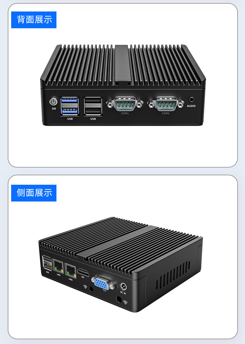 倍控赛扬j1900嵌入式台式迷你主机微型电脑双千兆工控小主机232HTPC 工业工控机主机 G30-27双网-3215U 4G内存 64G硬盘